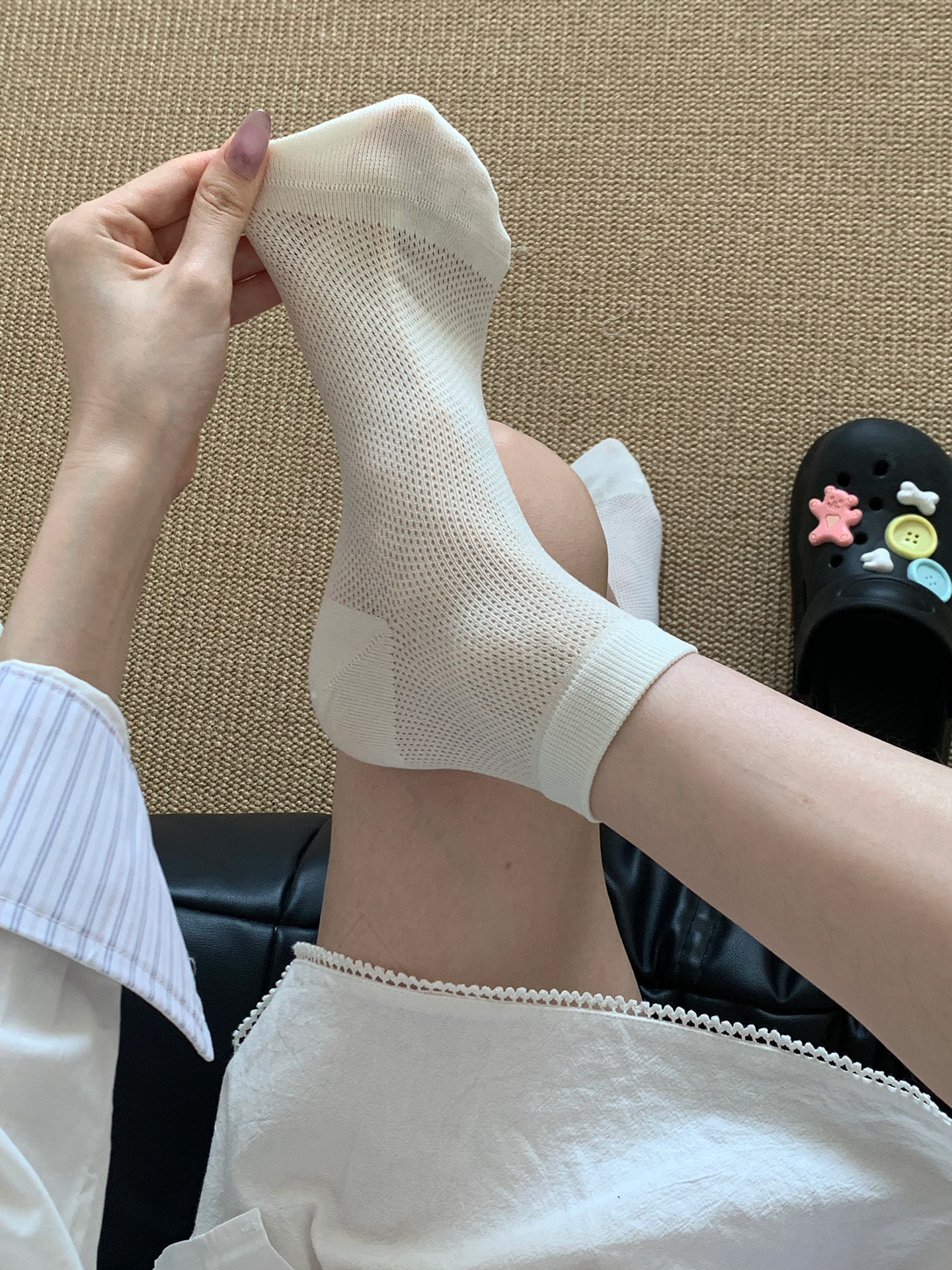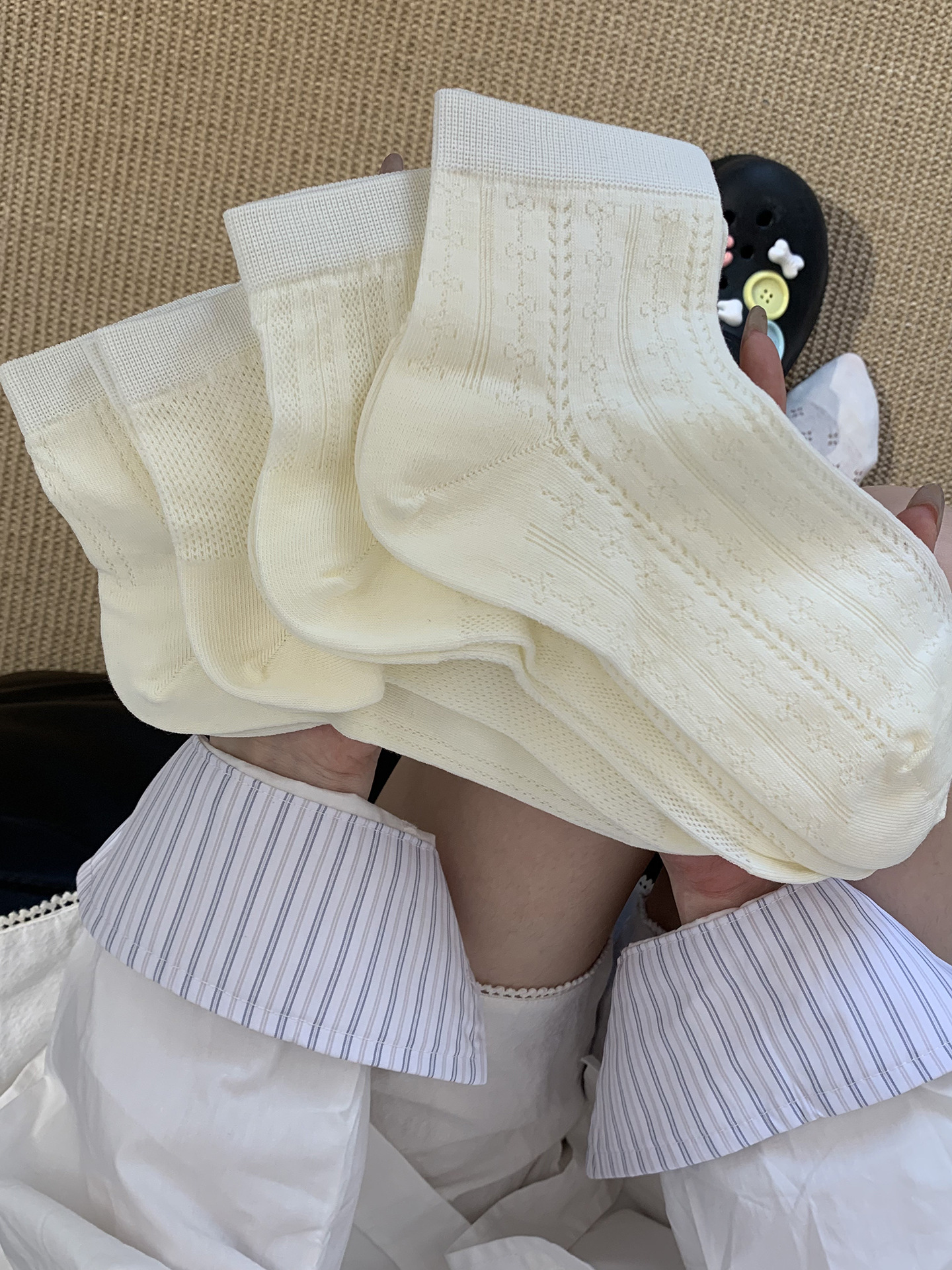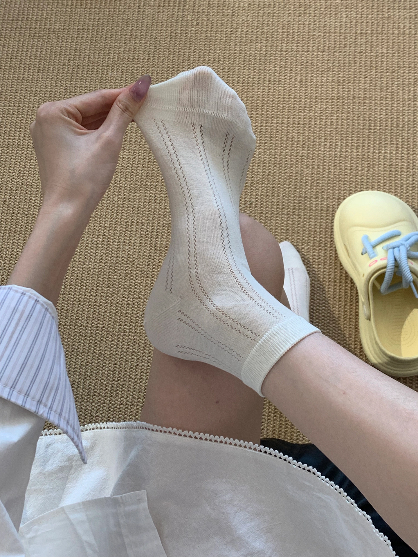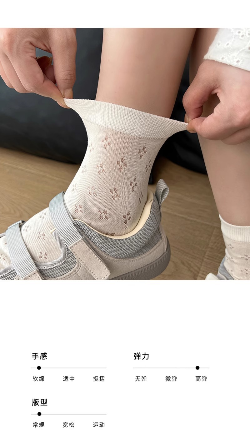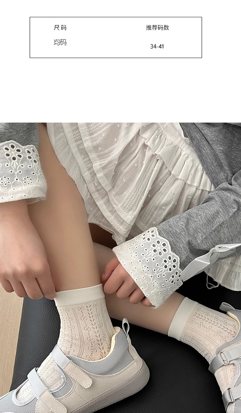 Miu 여름 양말 여성 양말 얇은 순수 코튼 중공 통기성 여성 다목적 중간 짧은 양말 jk 뼈없는 양말스토어 가기