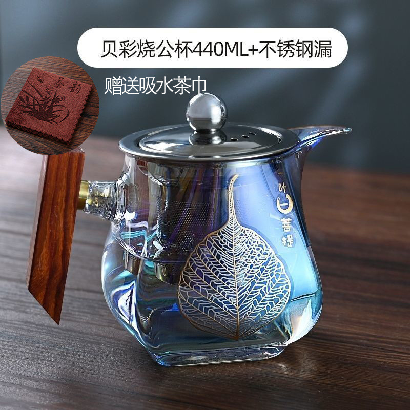 공정 컵, 베이 컬러 번트 유리 차 분배기, 단단한 나무 손잡이, 환상적인 컬러 공 컵, 대용량, 창의적인 차 바다 제조업체