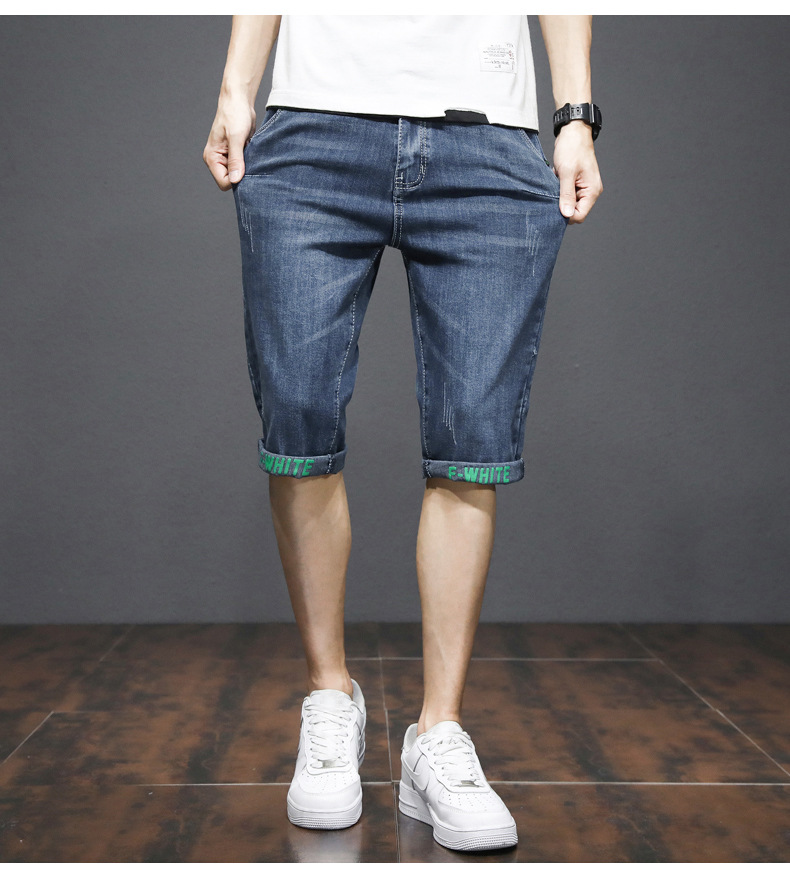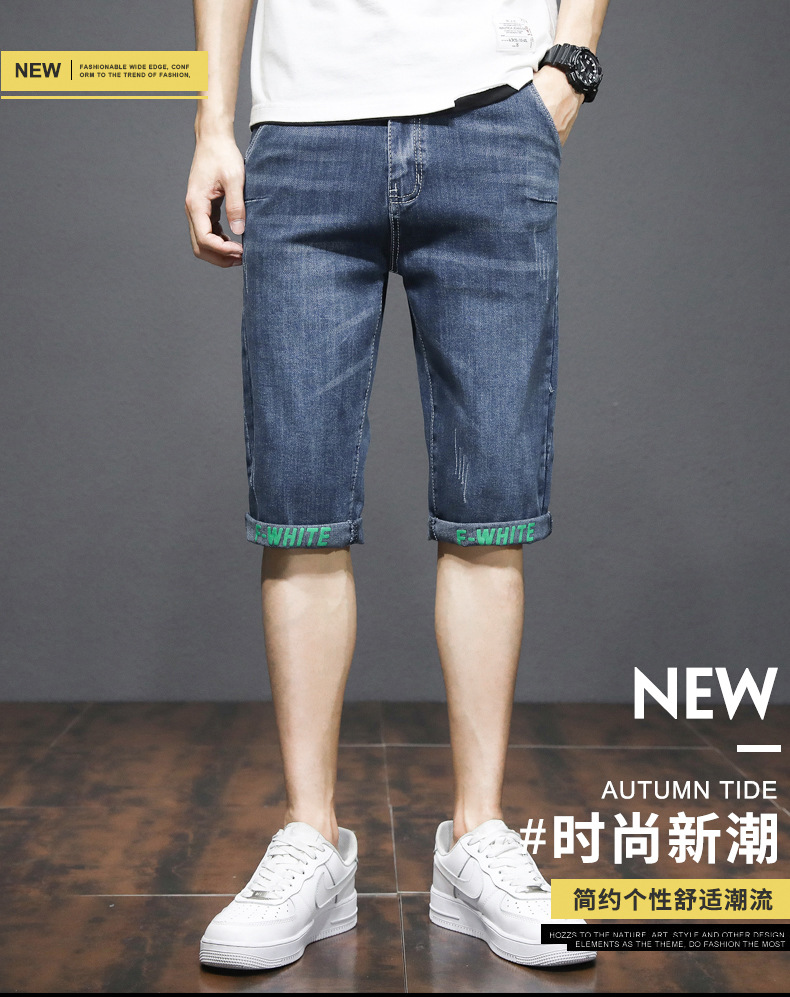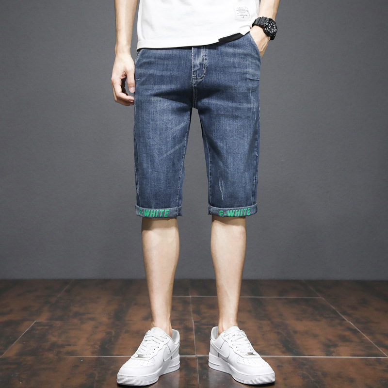 블루 청바지 남성 2024 새로운 패션 7 포인트 바지 여름 얇은 캐주얼 반바지 남성 패션 트렌디스토어 가기