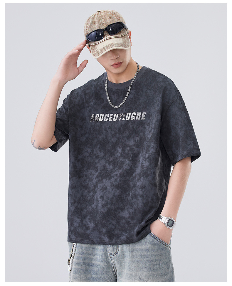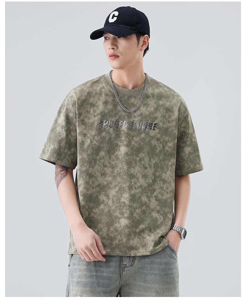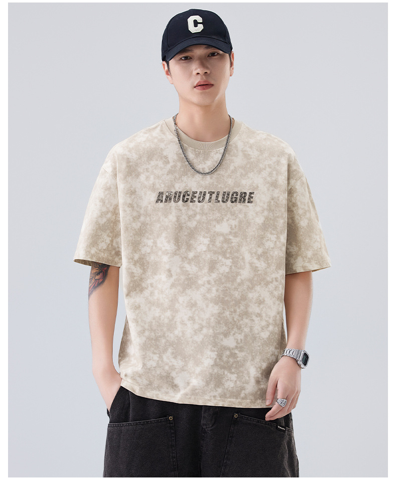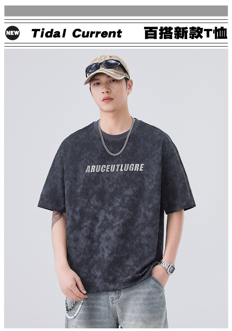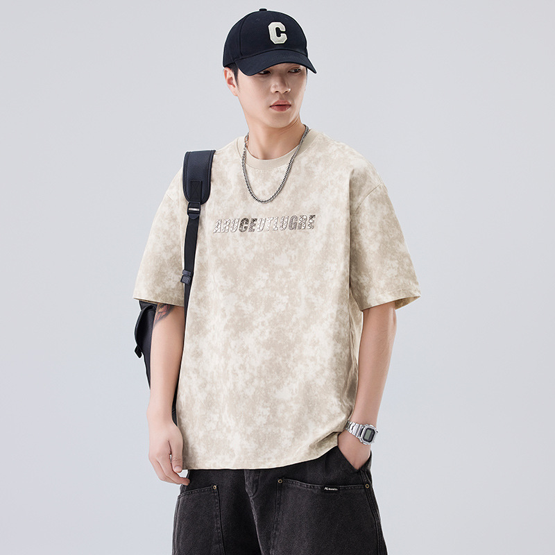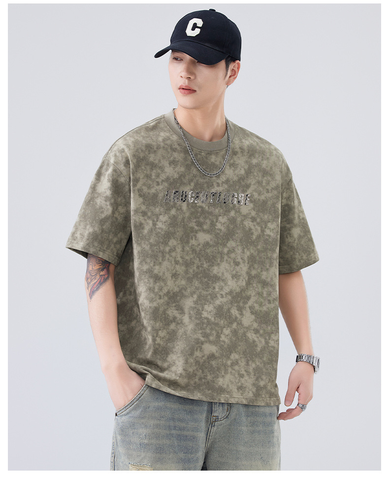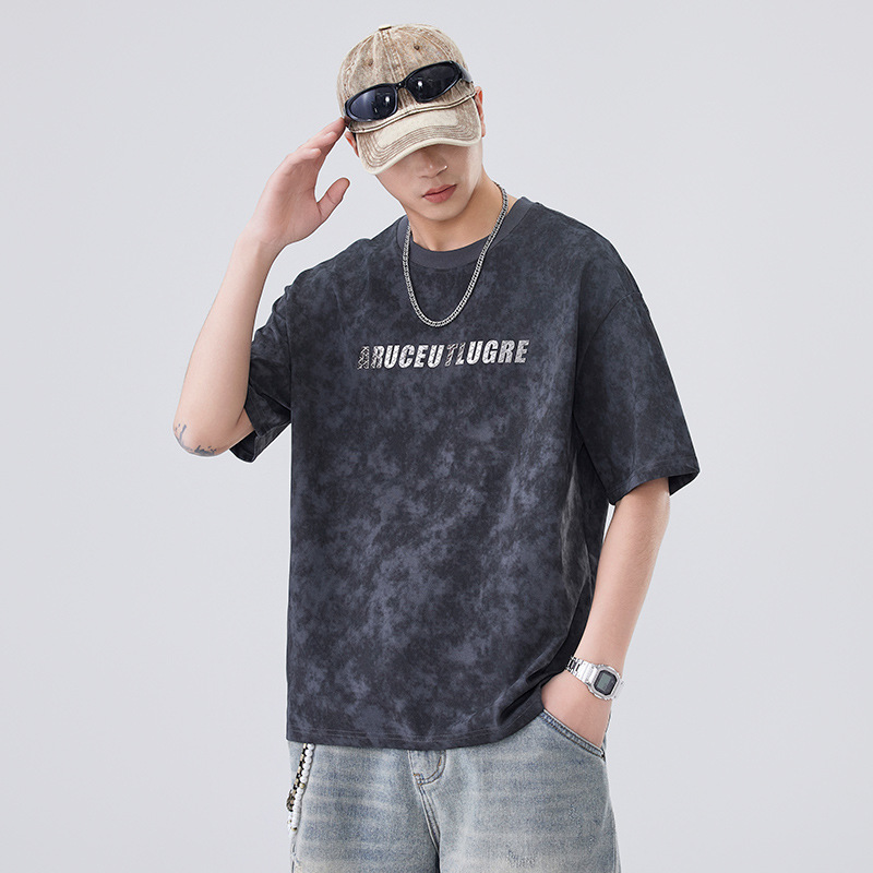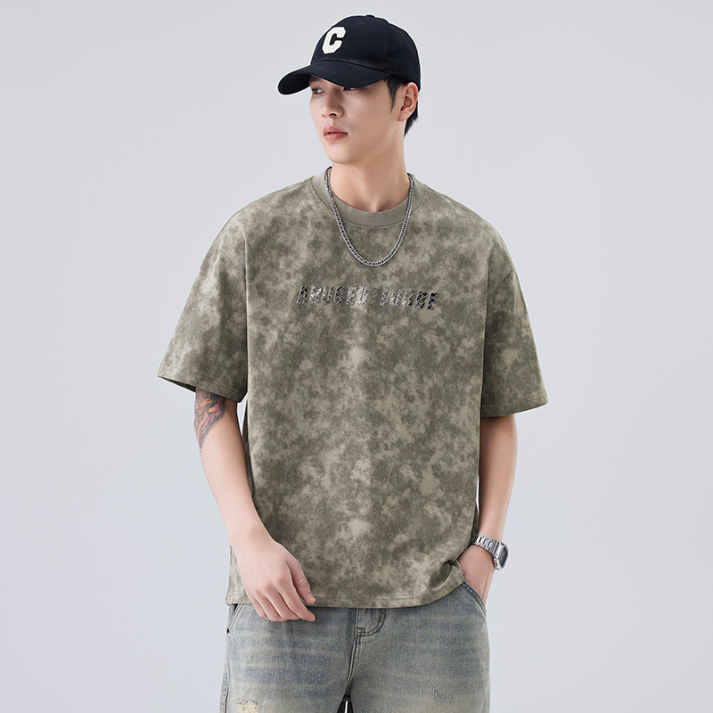 소년용 라운드 넥 티셔츠 2025 여름 신작 타이 염색 5부 소매 탑 위장 무거운 얇은 다용도 반팔스토어 가기