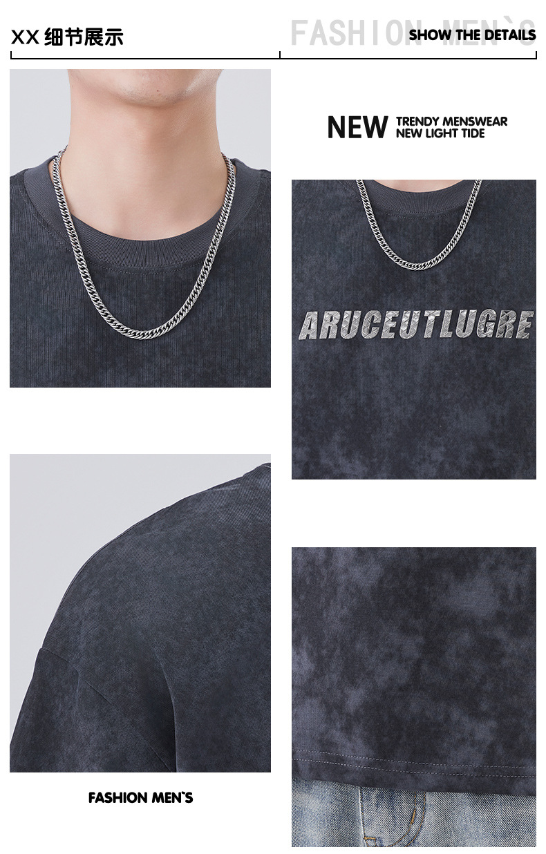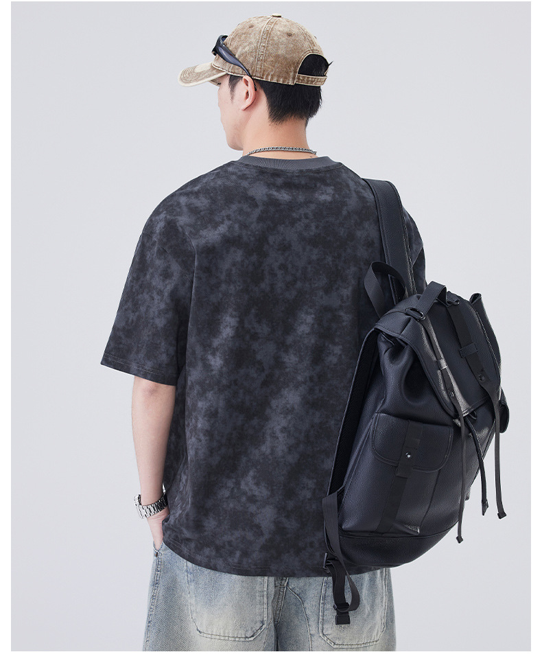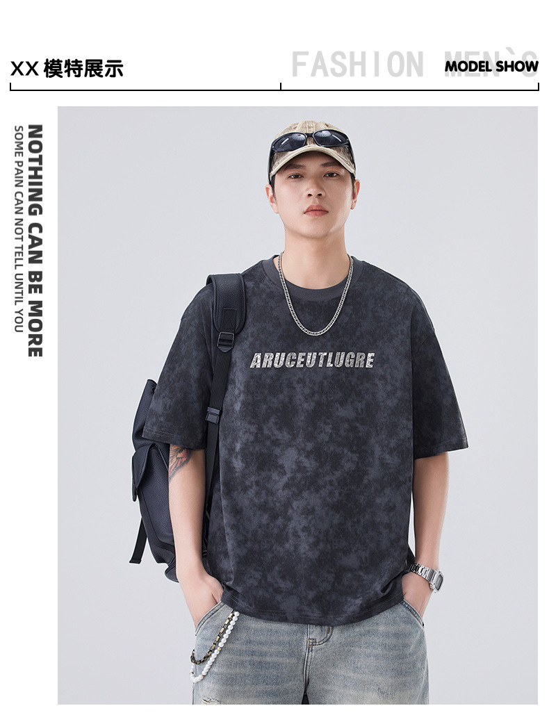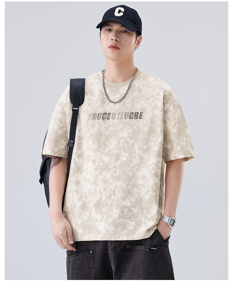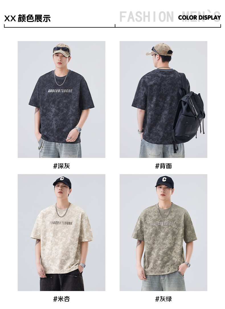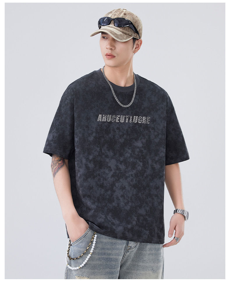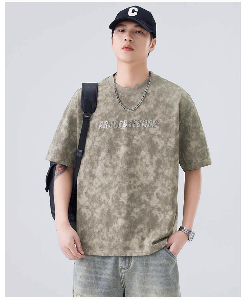 소년용 라운드 넥 티셔츠 2025 여름 신작 타이 염색 5부 소매 탑 위장 무거운 얇은 다용도 반팔스토어 가기