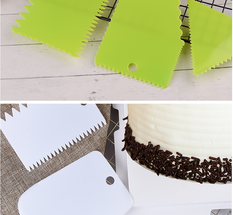 공장 도매 구멍이 있는 톱니형 베이킹 스크레이퍼 세트 케이크 크림 모양 스크레이퍼 식품 등급 3종 세트 스크레이퍼스토어 가기