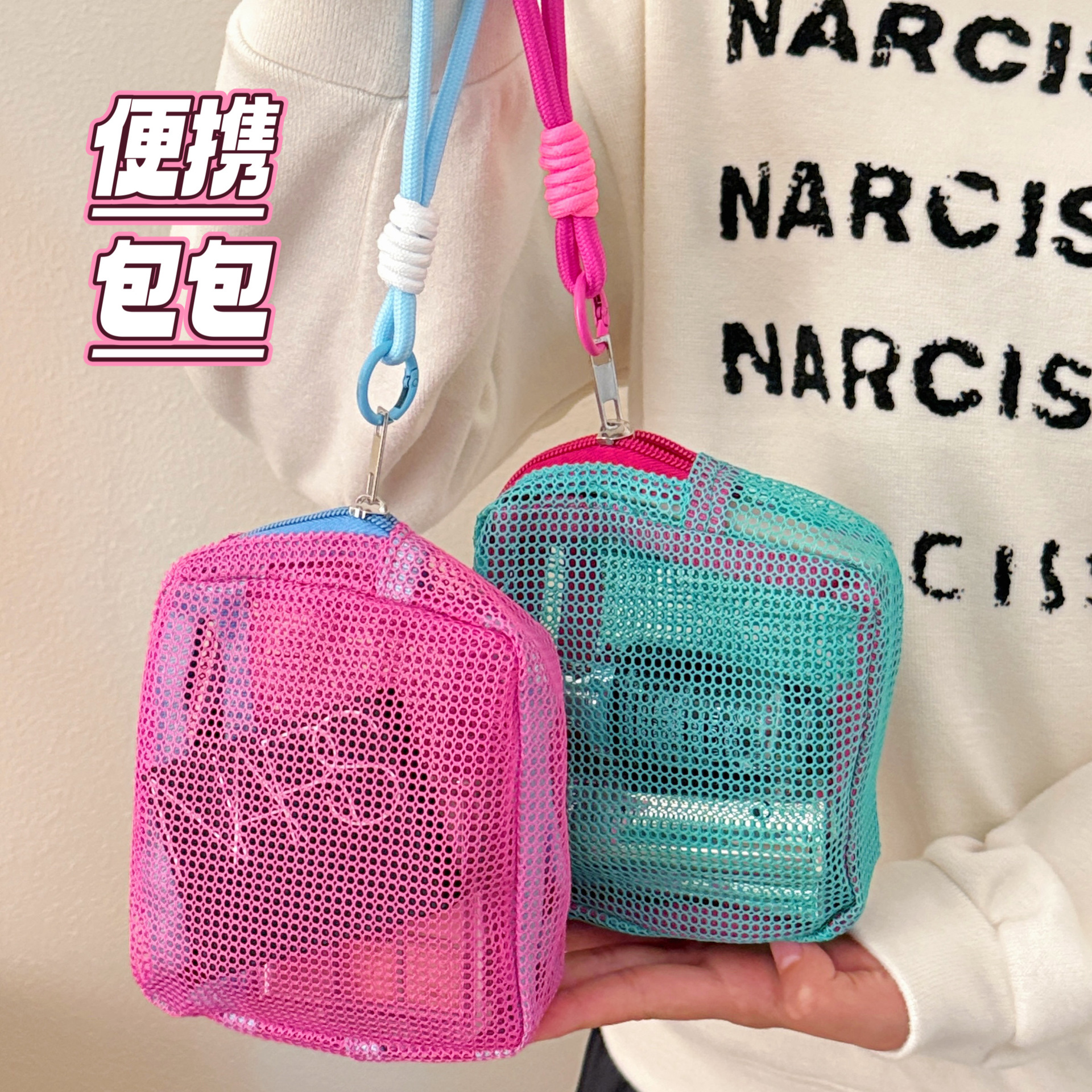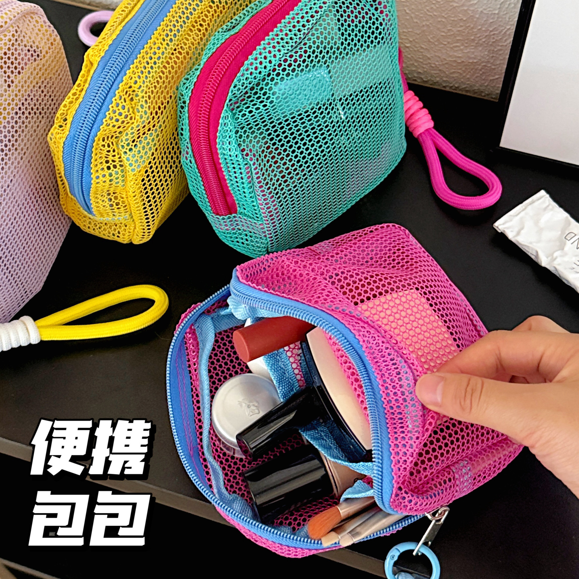 도파민 그리드 두부 가방 여자 심장 휴대용 저장 가방 메쉬 작은 화장품 가방 립스틱 휴대용 작은 사각형 가방