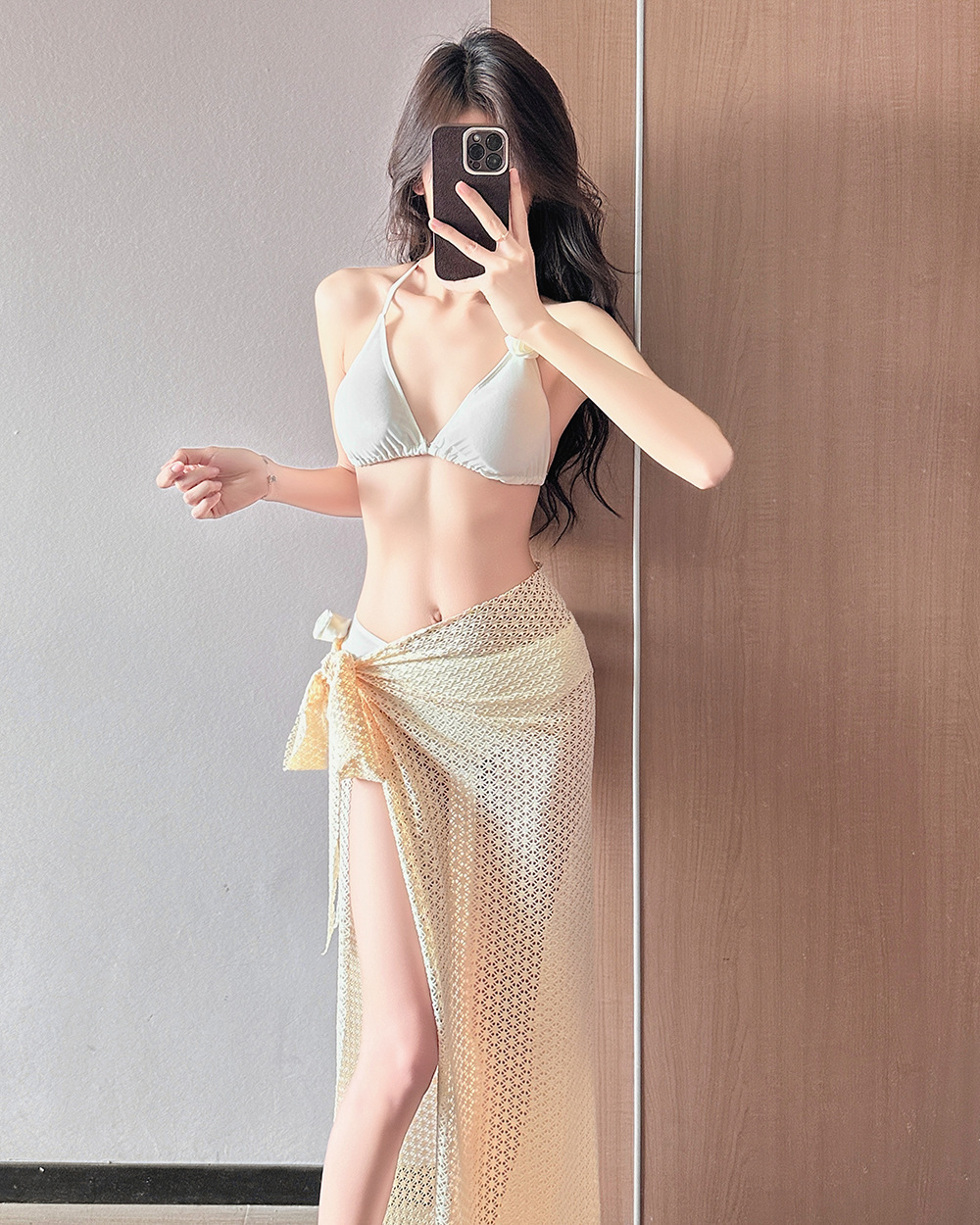비키니 3피스 섹시 퓨어 러스틱 백리스 해변 휴가 여성용 아름다운 스플릿 발리 휴가 온천 수영복