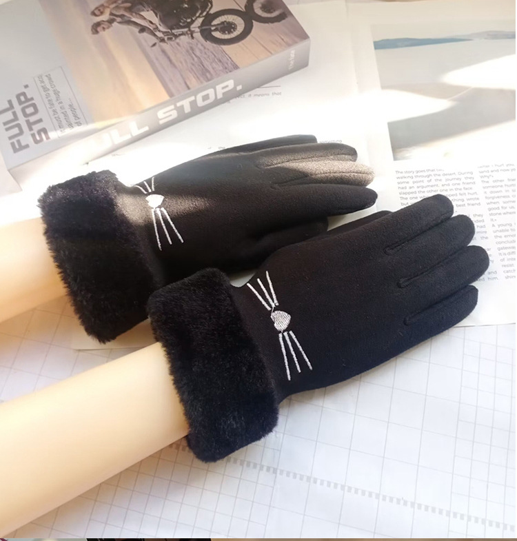 겨울 여성용 벨벳 운전 따뜻한 장갑, 야외 사이클링 장갑, 여성용 금속 라벨 모피 입 터치 스크린 장갑