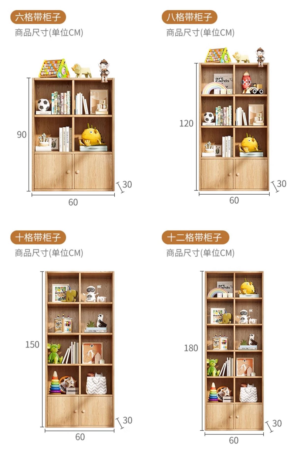 단단한 나무 책장 보관함 바닥에서 천장까지 벽 조합 격자 캐비닛 거실 유치원 보관함 낮은 가정용 책장스토어 가기