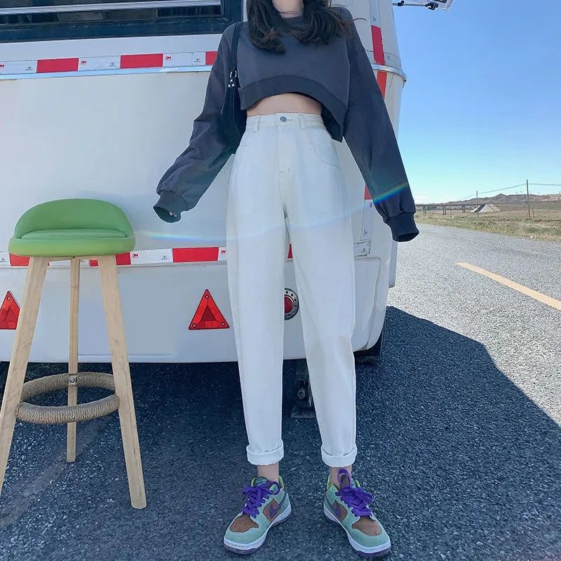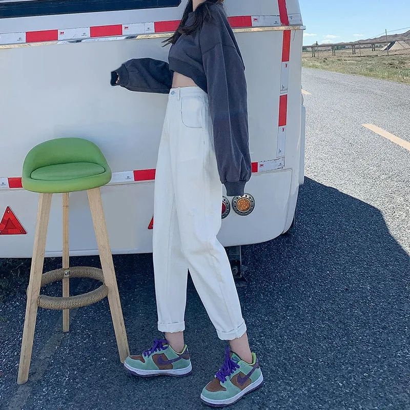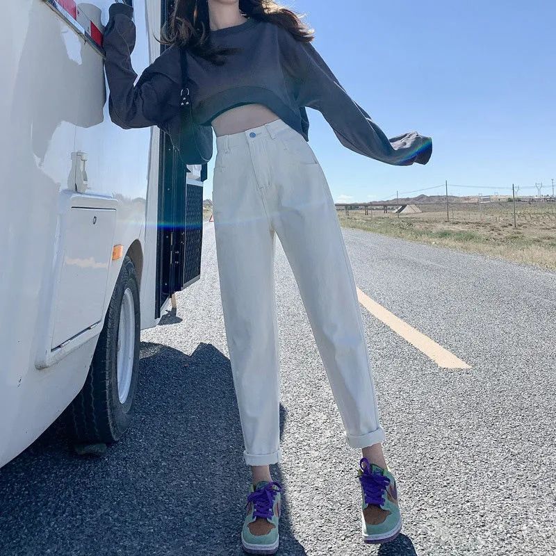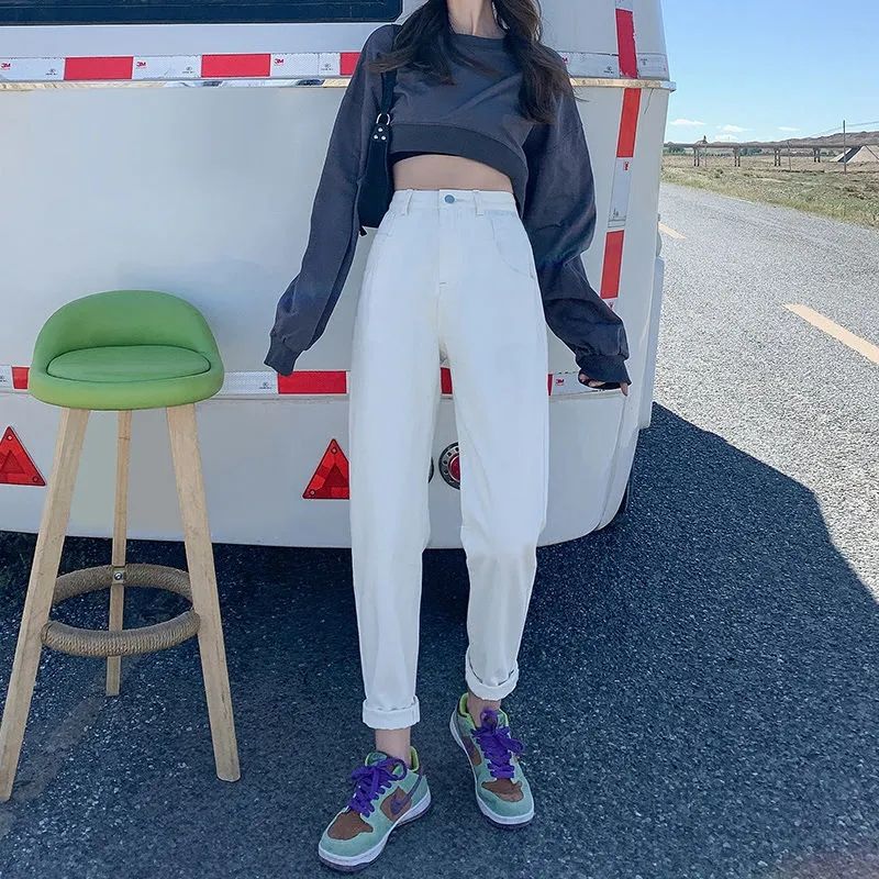 화이트 할란 청바지 여성 봄과 여름 2025 새로운 높은 허리 느슨한 슬리밍 라이스 화이트 토레 바지스토어 가기