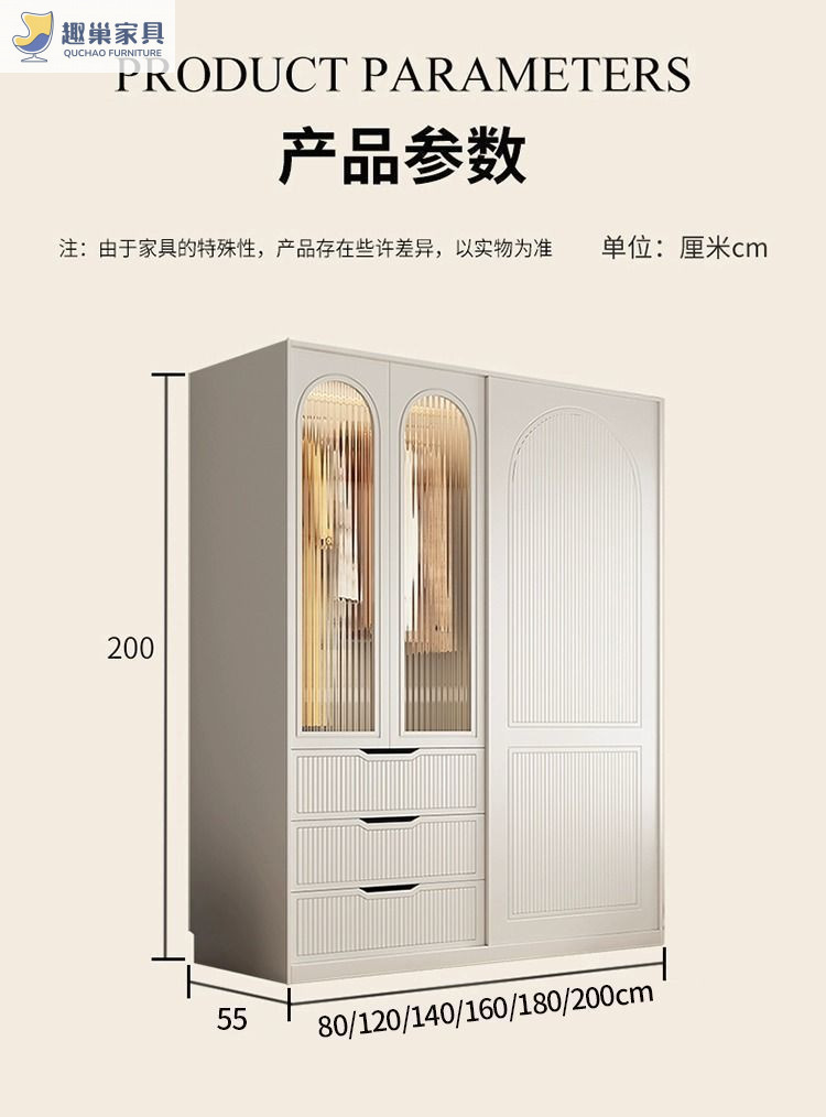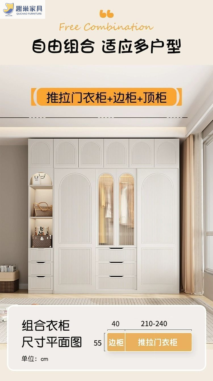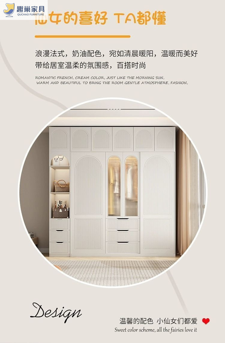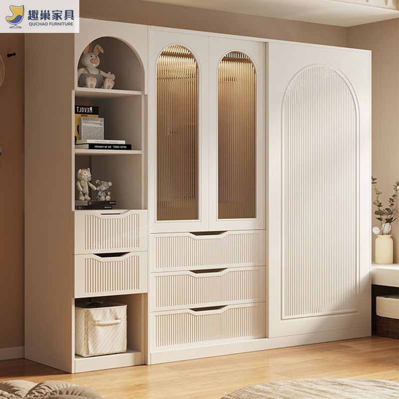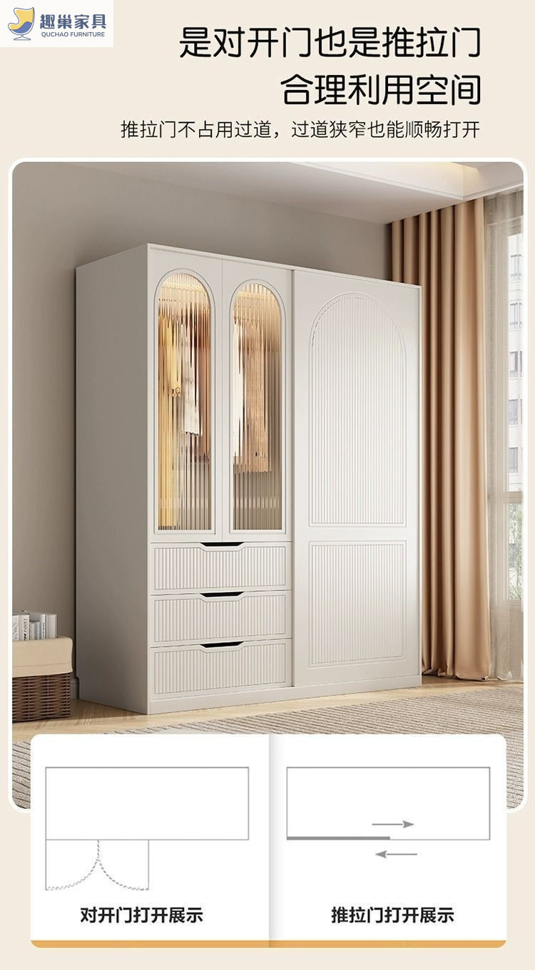 크림색 옷장 수납장 어린이 옷장 가정용 침실 소형 고급스러운 심플 슬라이딩 도어 옷장