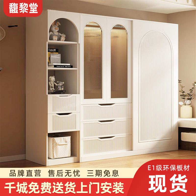 크림색 옷장 수납장 어린이 옷장 가정용 침실 소형 고급스러운 심플 슬라이딩 도어 옷장스토어 가기