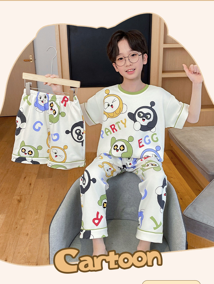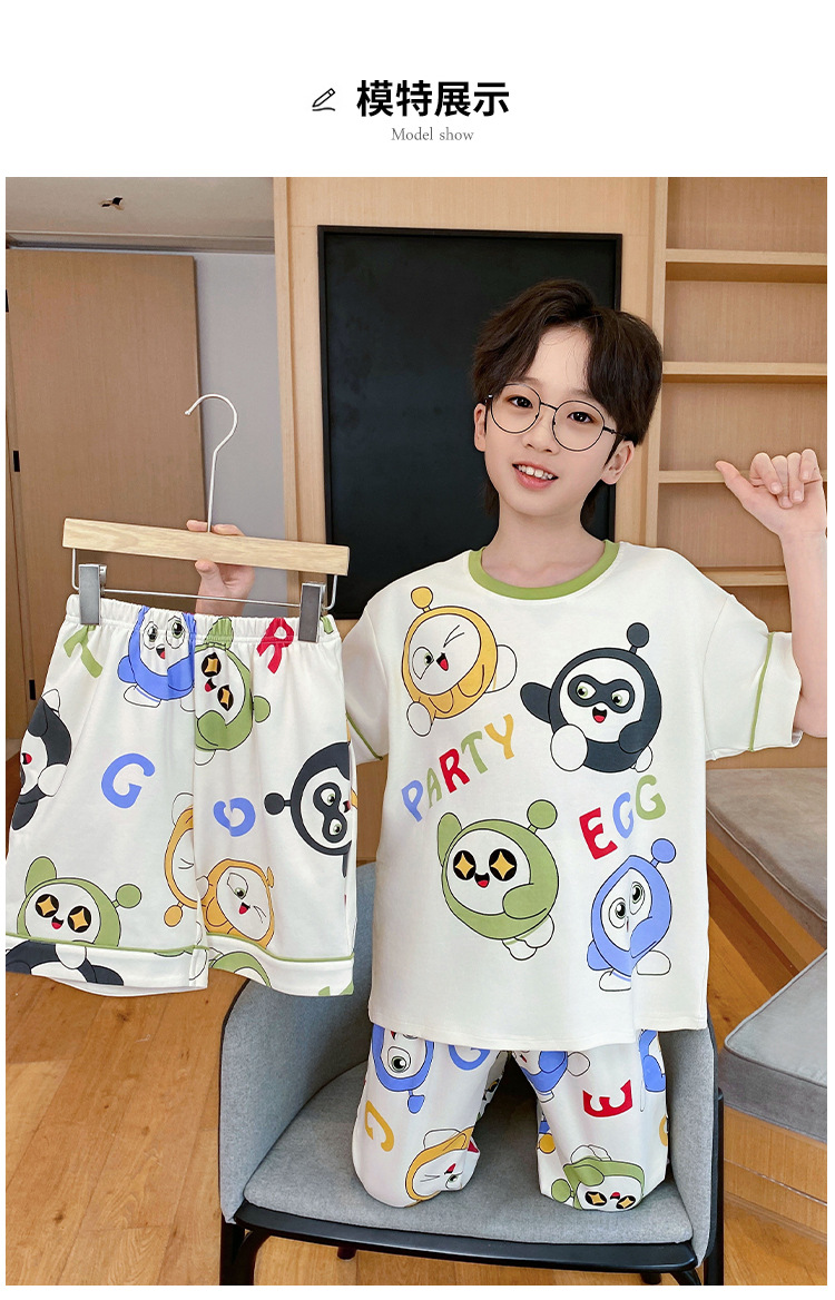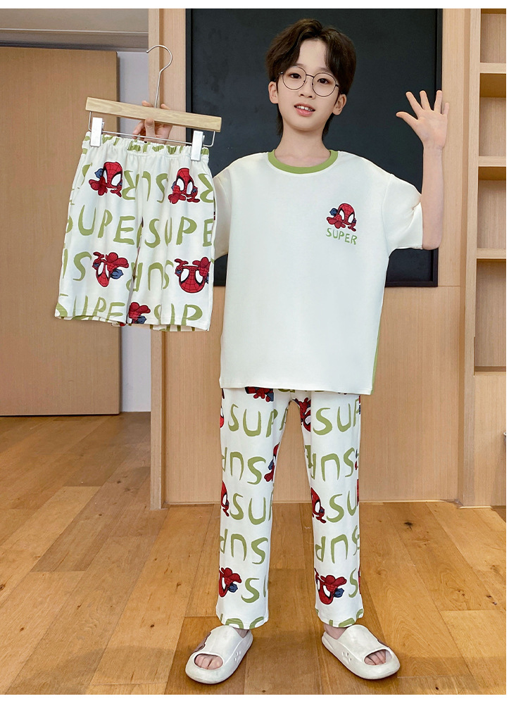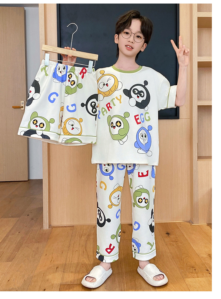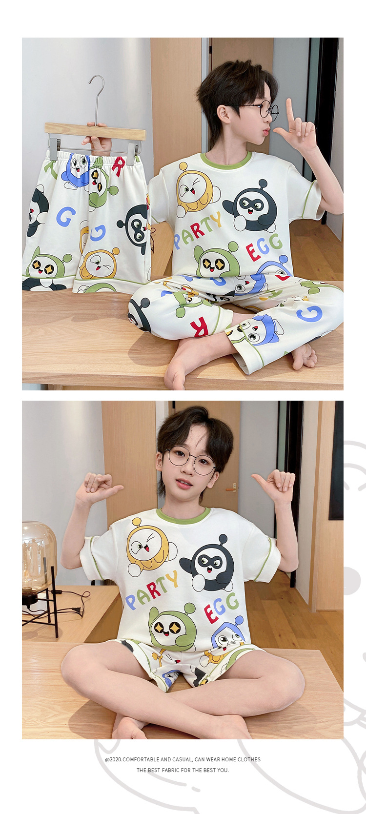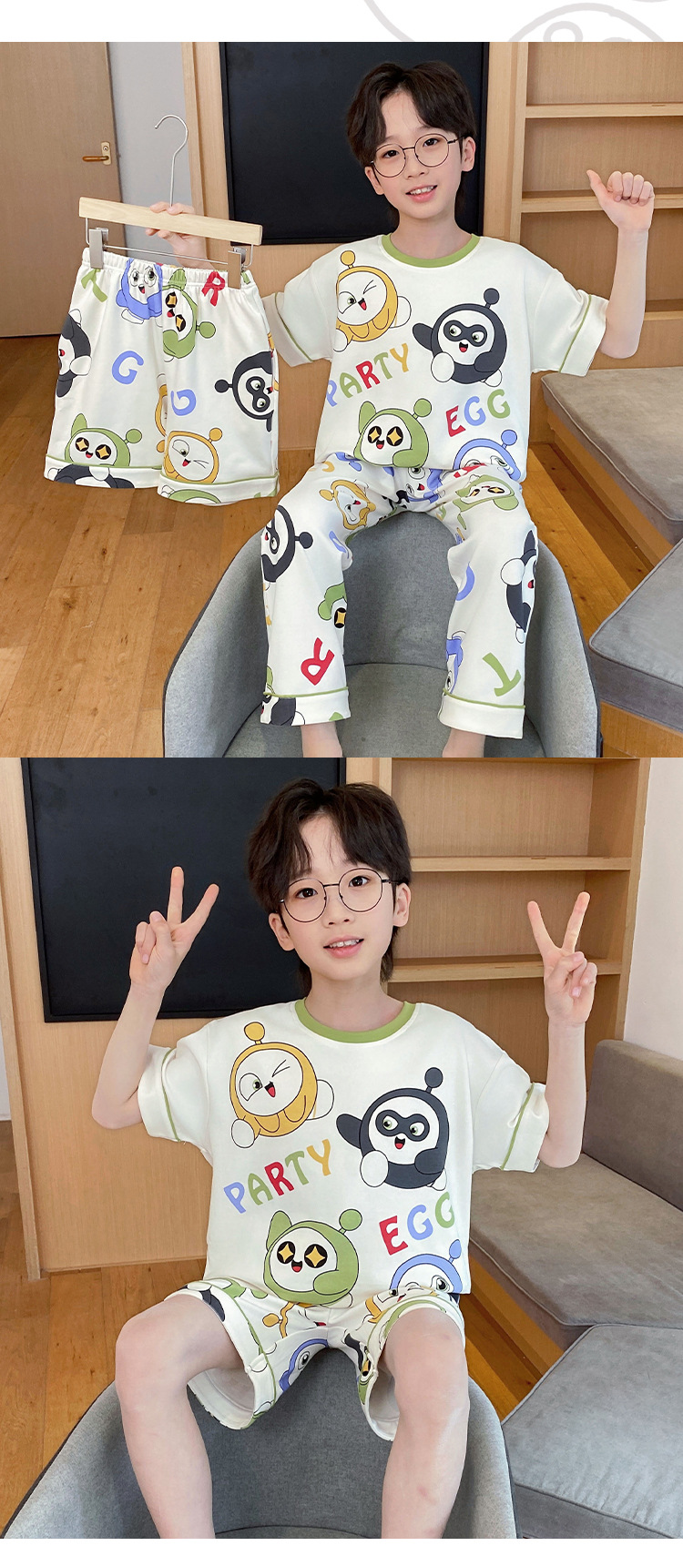 어린이 잠옷 3 피스 세트 2025 새로운 여름 얇은 반팔 소년 중대형 어린이 및 청소년 만화 가정복스토어 가기