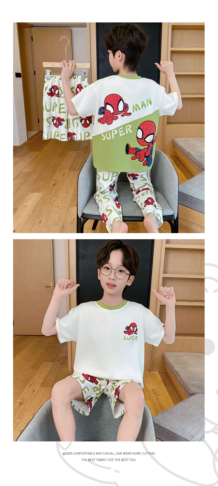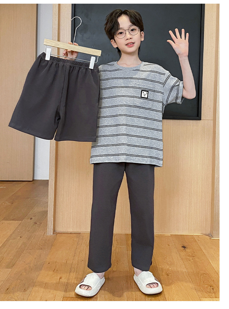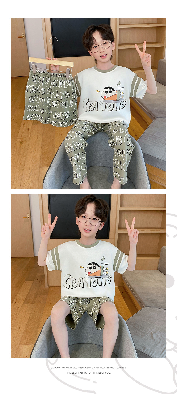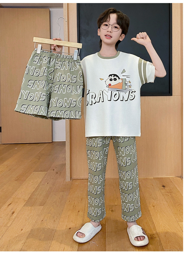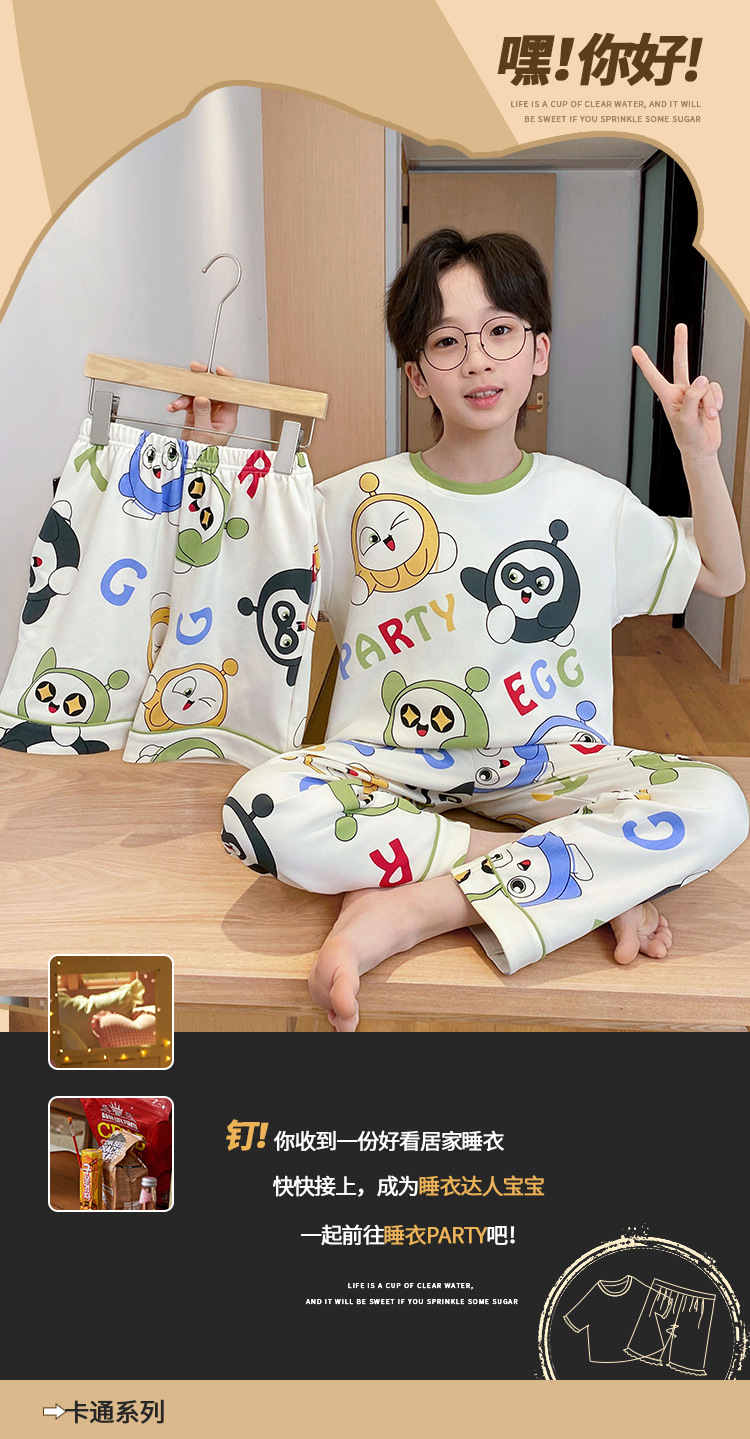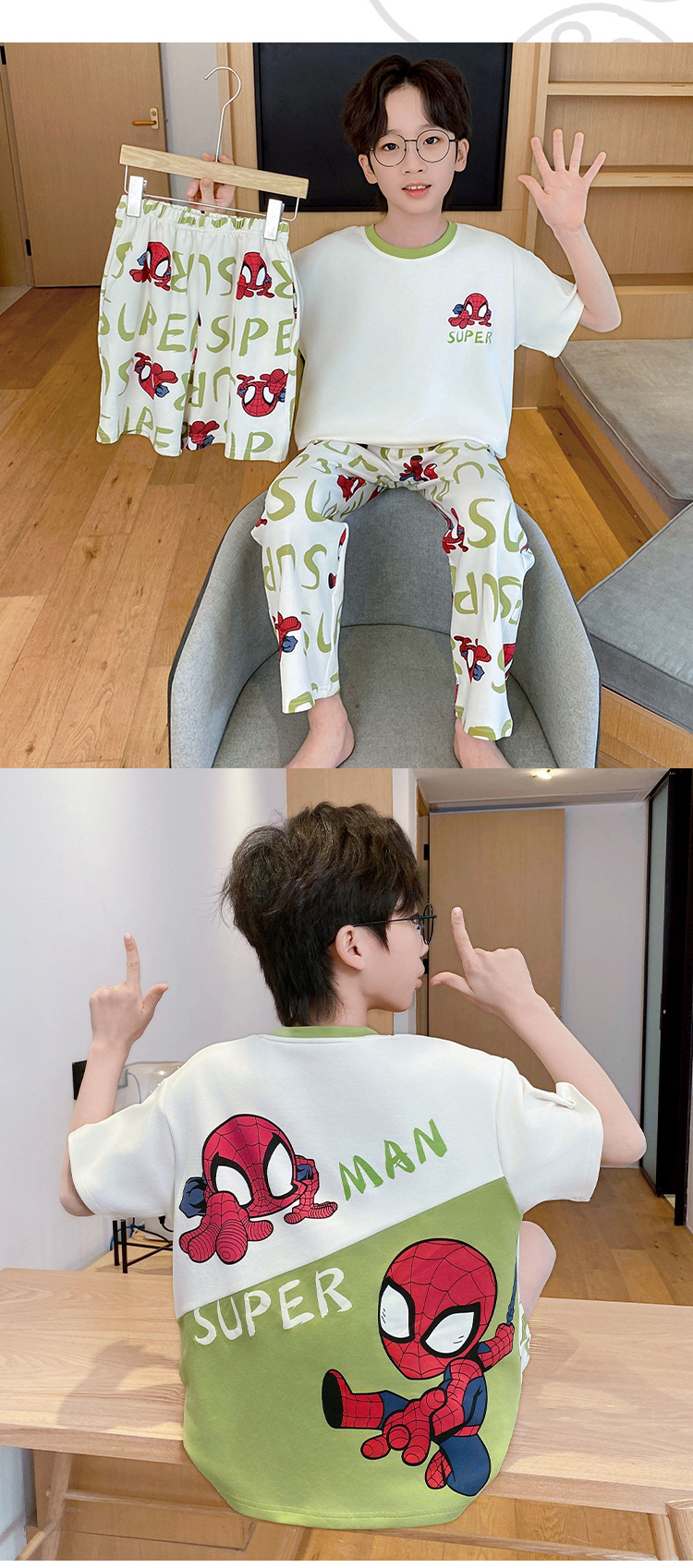 어린이 잠옷 3 피스 세트 2025 새로운 여름 얇은 반팔 소년 중대형 어린이 및 청소년 만화 가정복스토어 가기