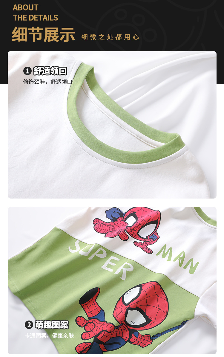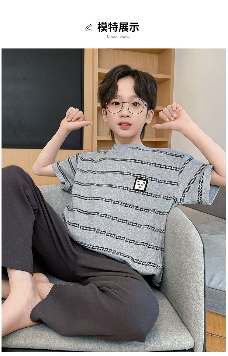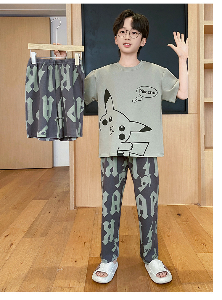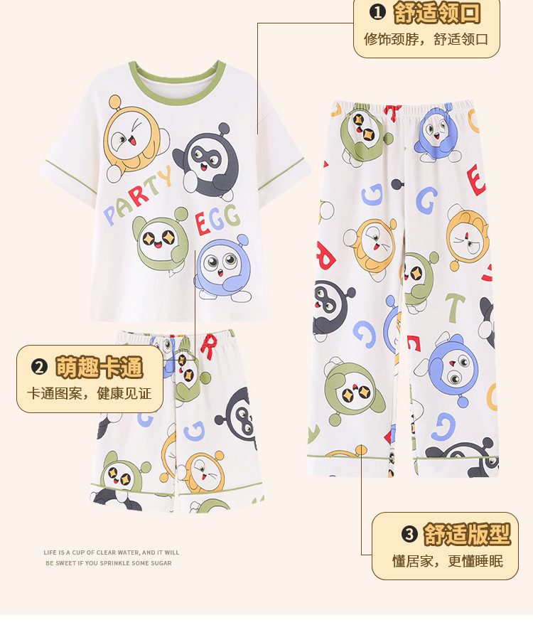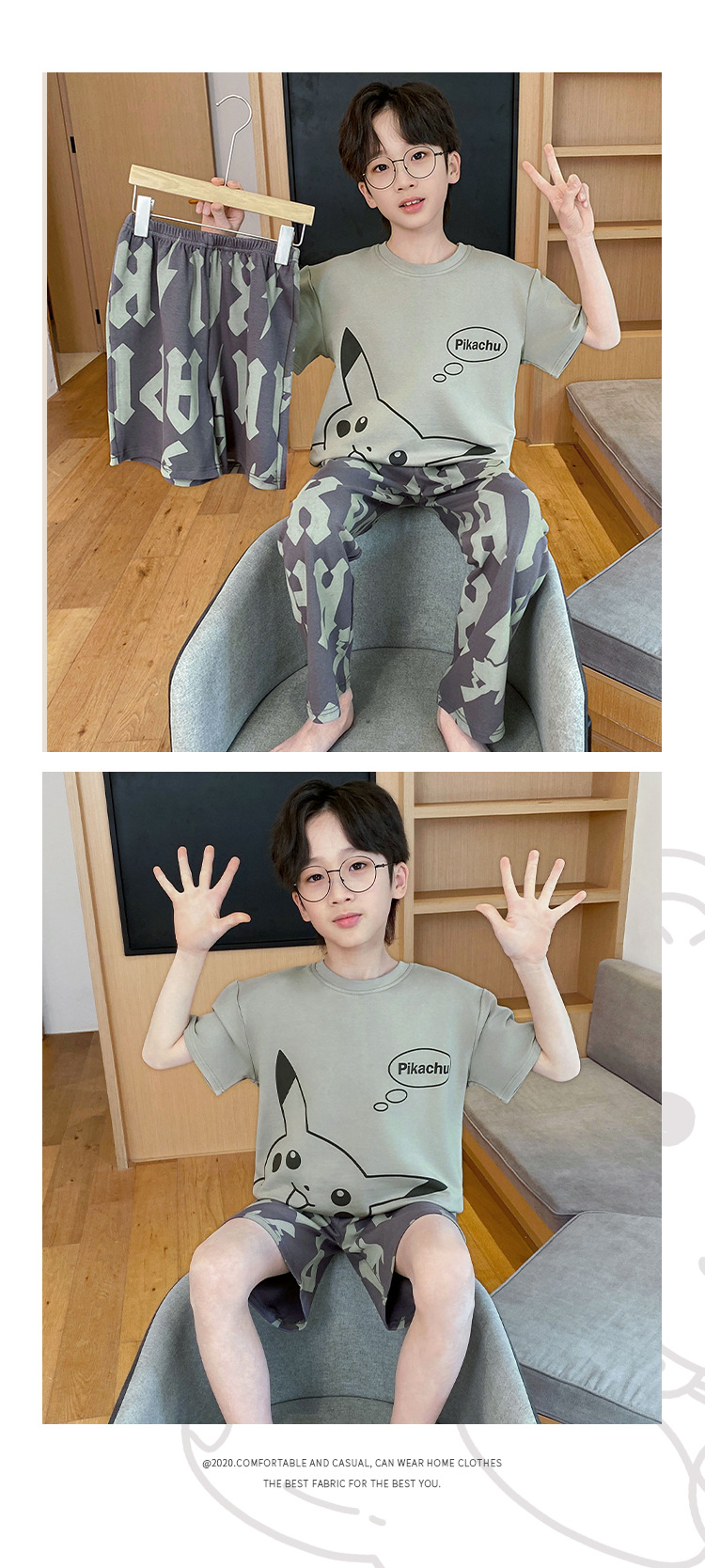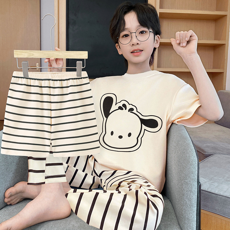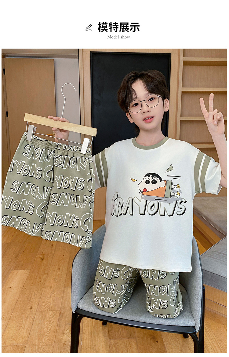 어린이 잠옷 3 피스 세트 2025 새로운 여름 얇은 반팔 소년 중대형 어린이 및 청소년 만화 가정복스토어 가기