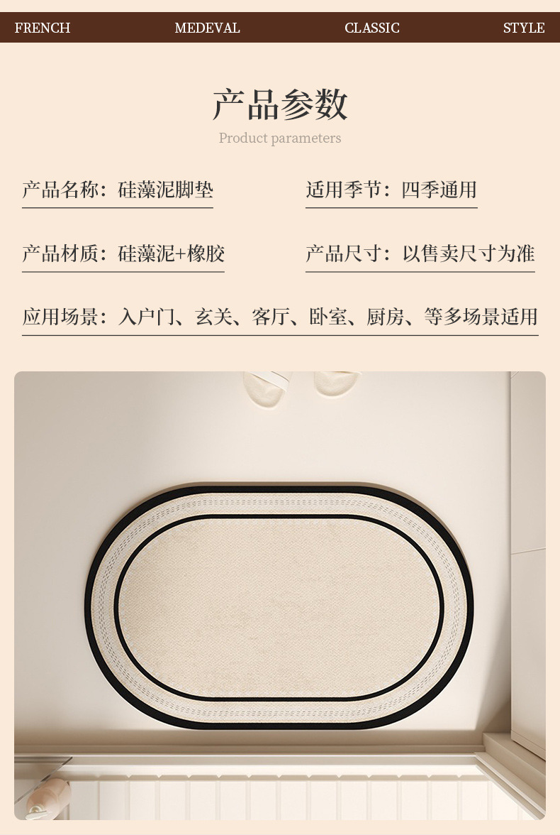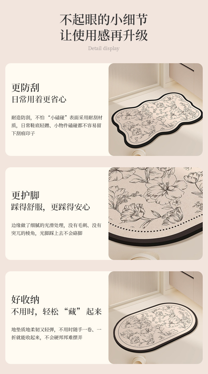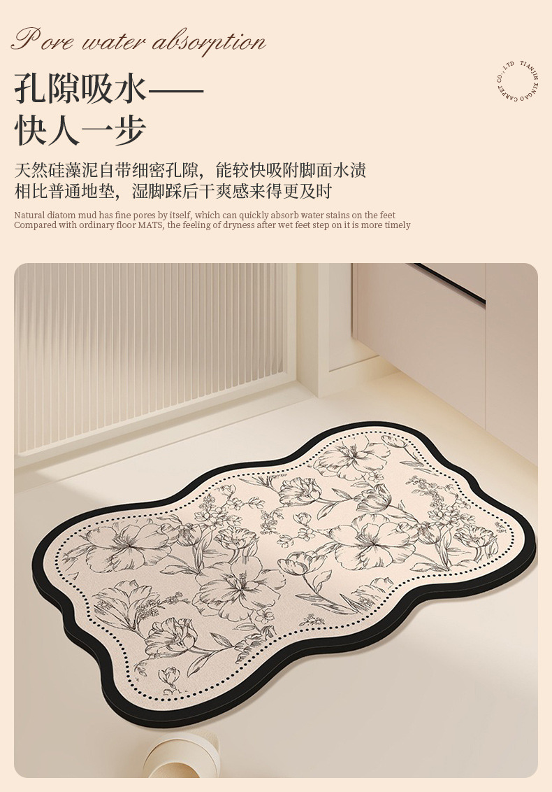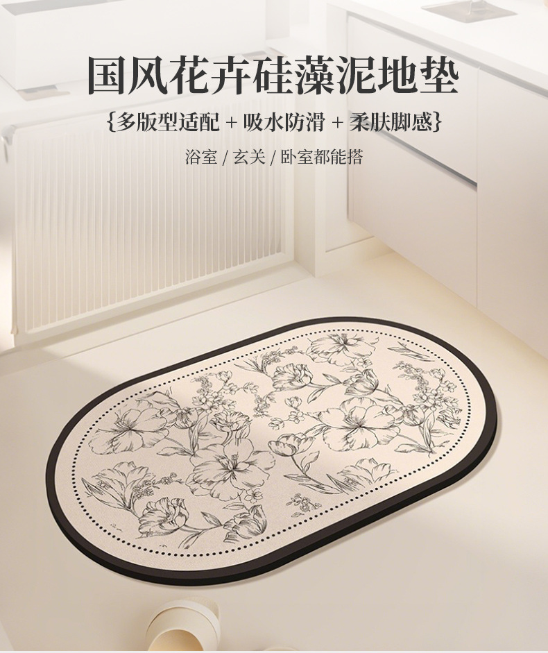 욕실 바닥 매트 미끄럼 방지 흡수성 규조토 진흙 발 매트 새로운 복고풍 가정용 욕실 얼룩 방지 및 닦아 낼 수있는 발 매트스토어 가기