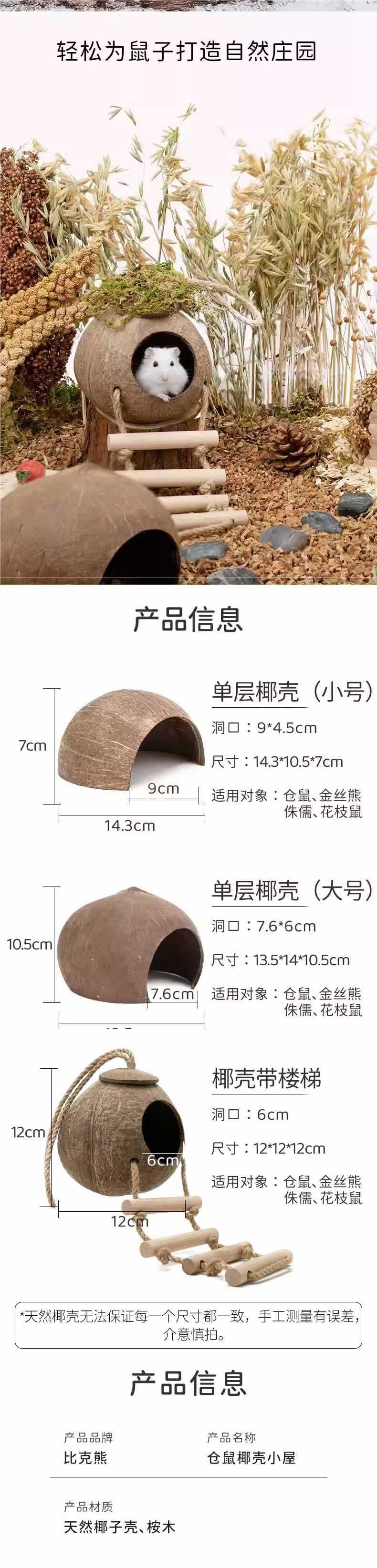 코코넛 껍질 햄스터 둥지 코코넛 껍질 피난처 여름 냉각 조경 용품 골든 베어 작은 집 빌라 꽃 다람쥐스토어 가기
