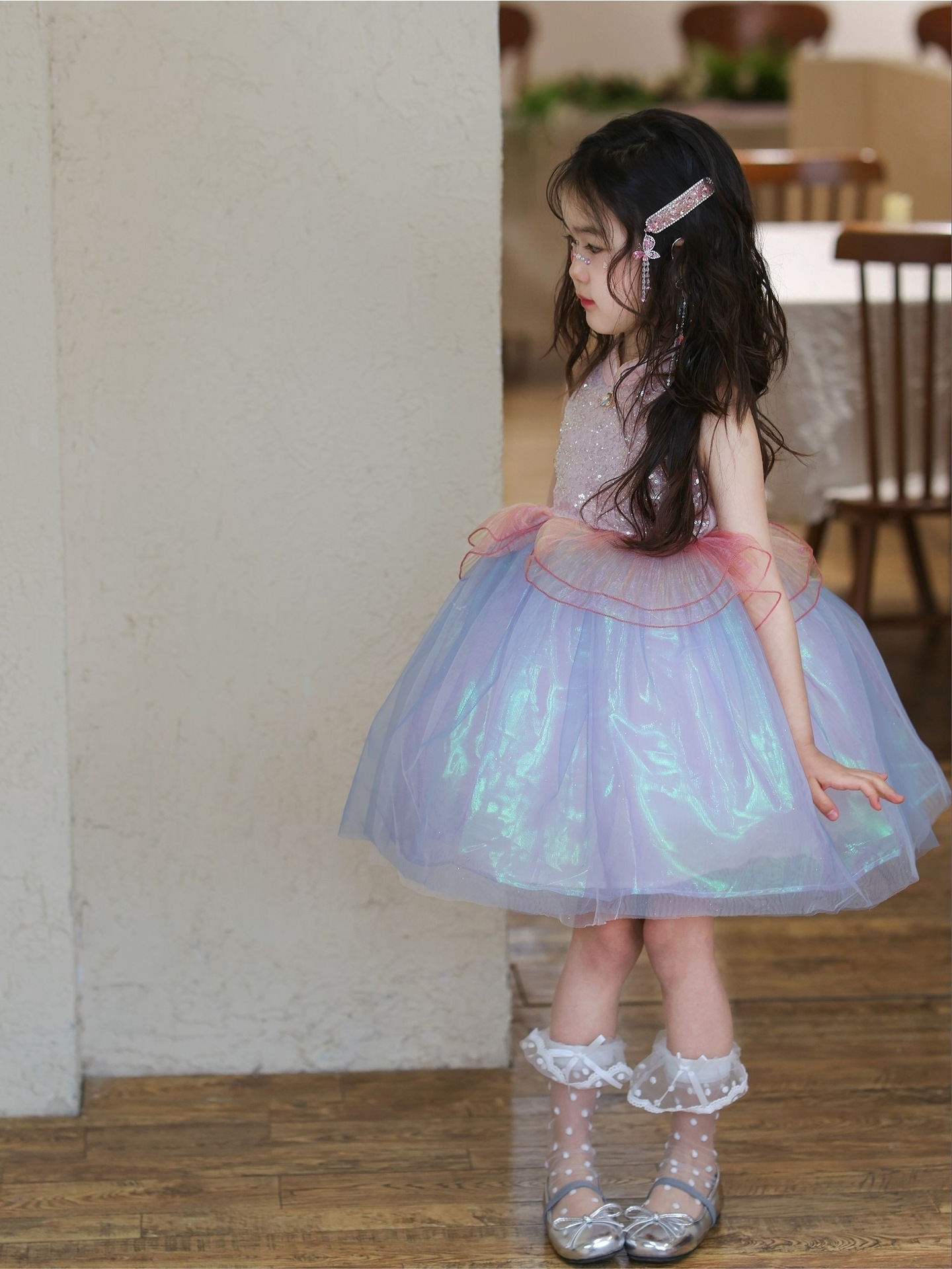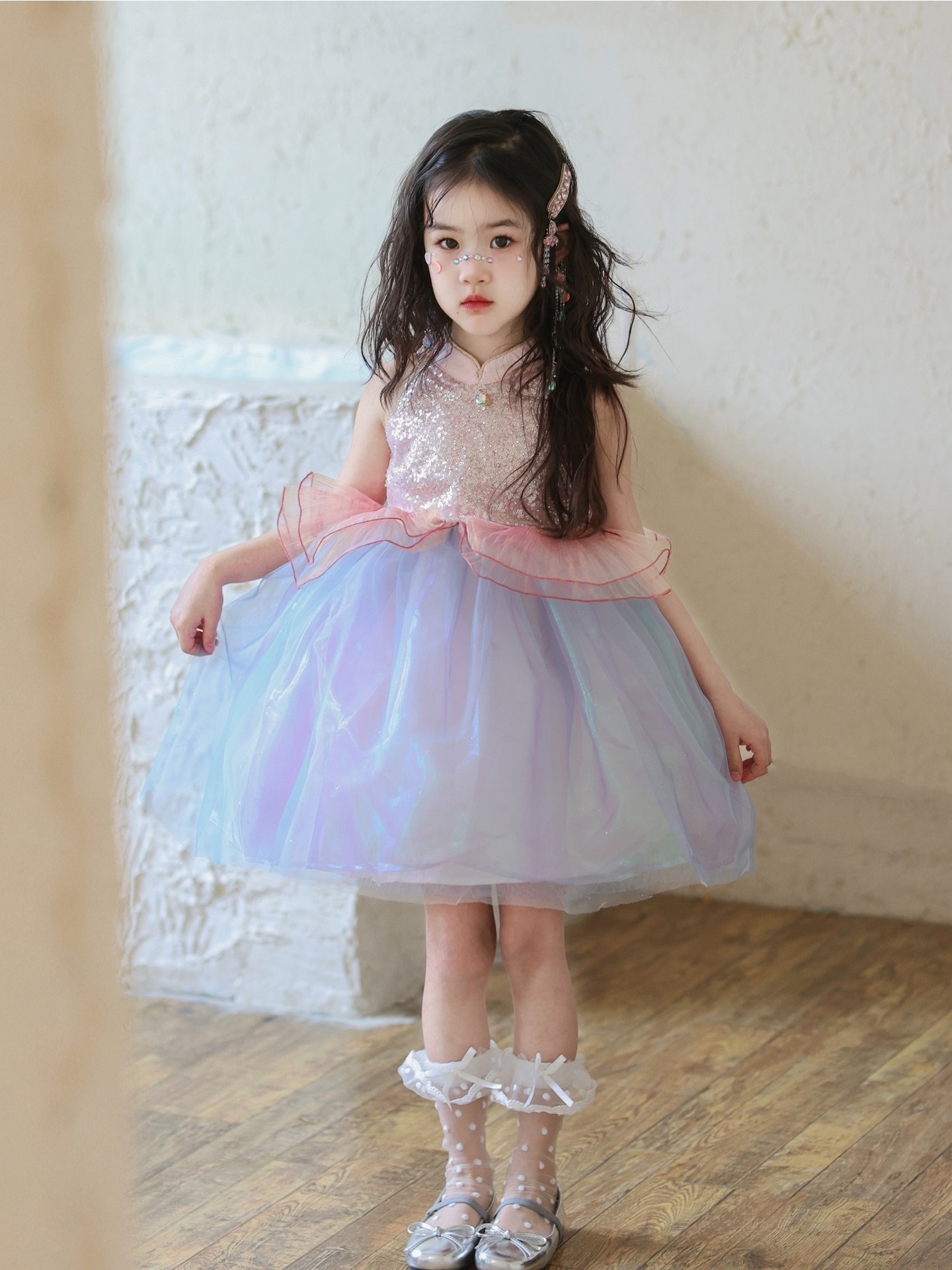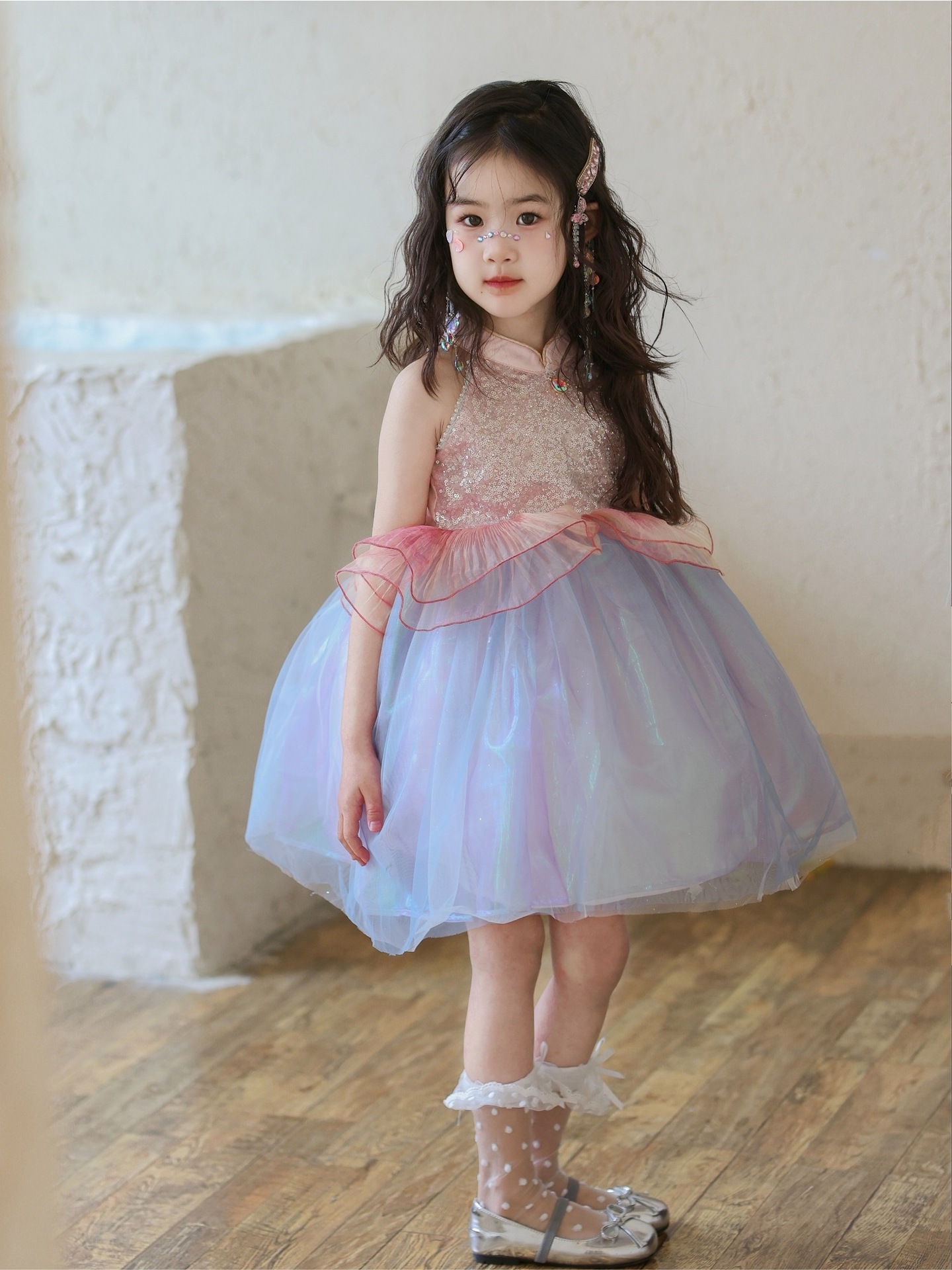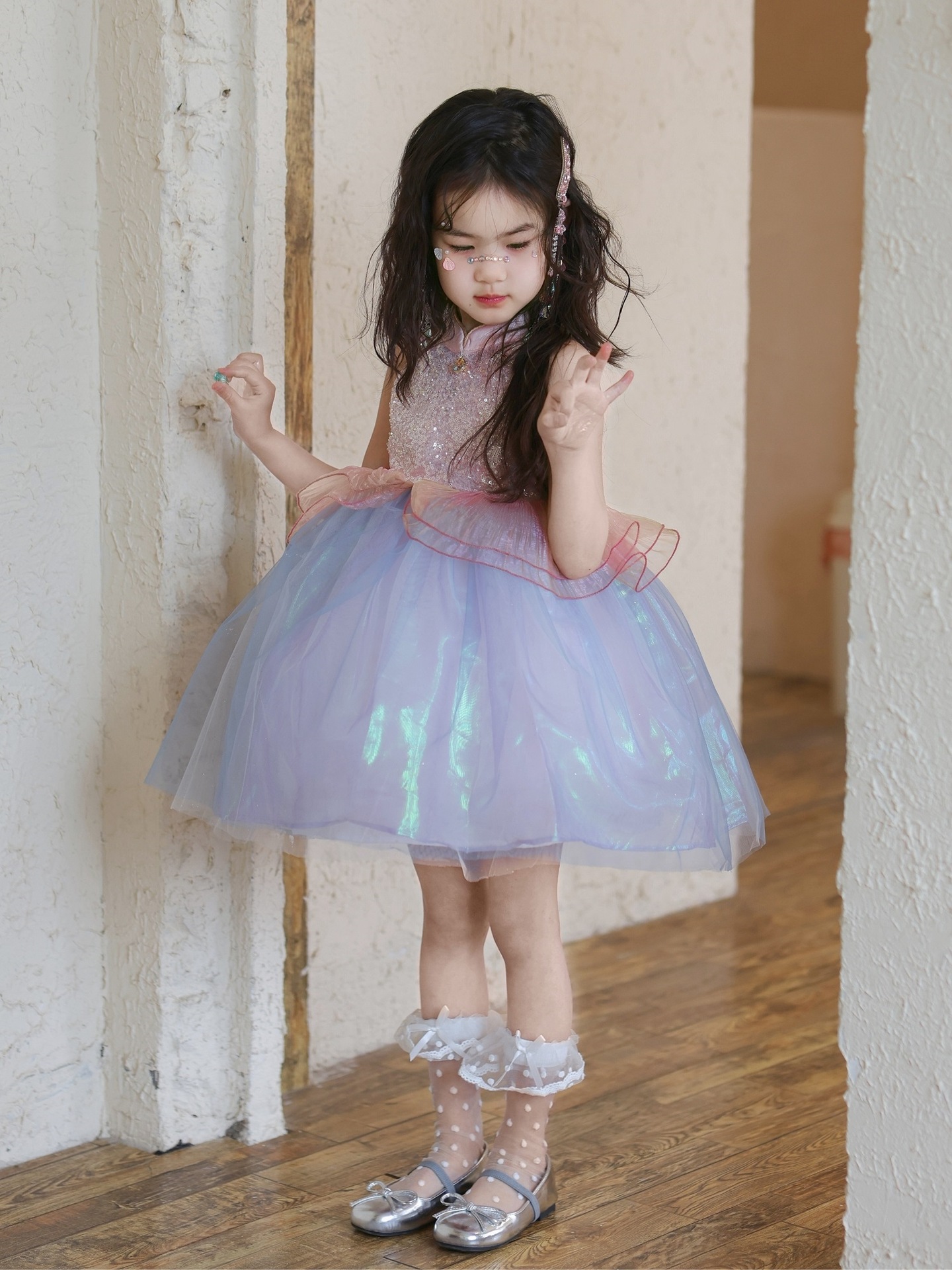 여자 여름 인어 공주 드레스 2025 새로운 여자 핑크 스팽글 메쉬 드레스 푹신한 생일 드레스스토어 가기