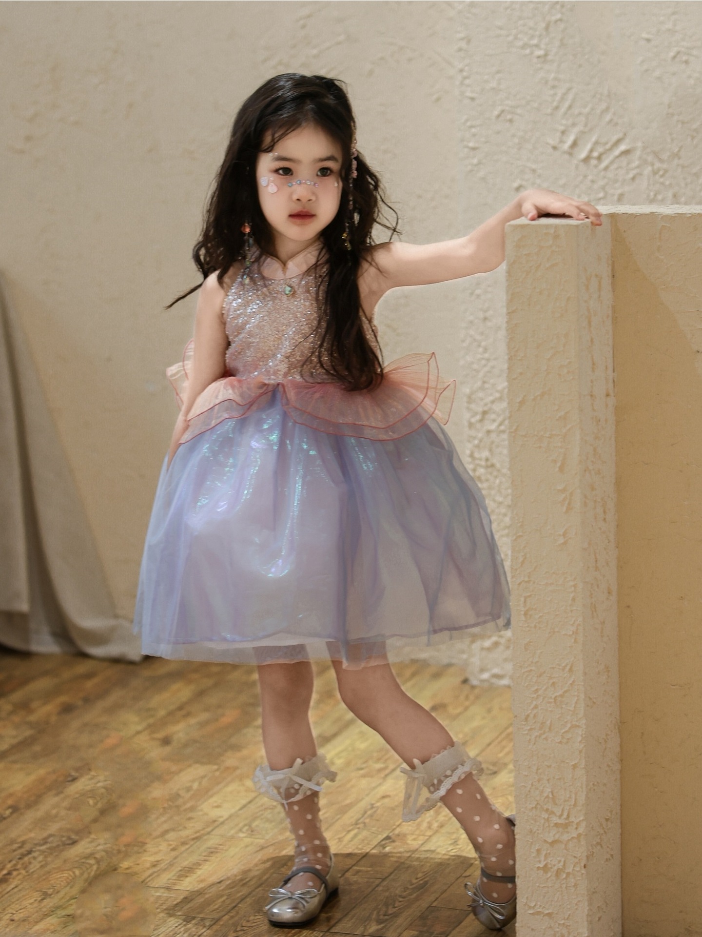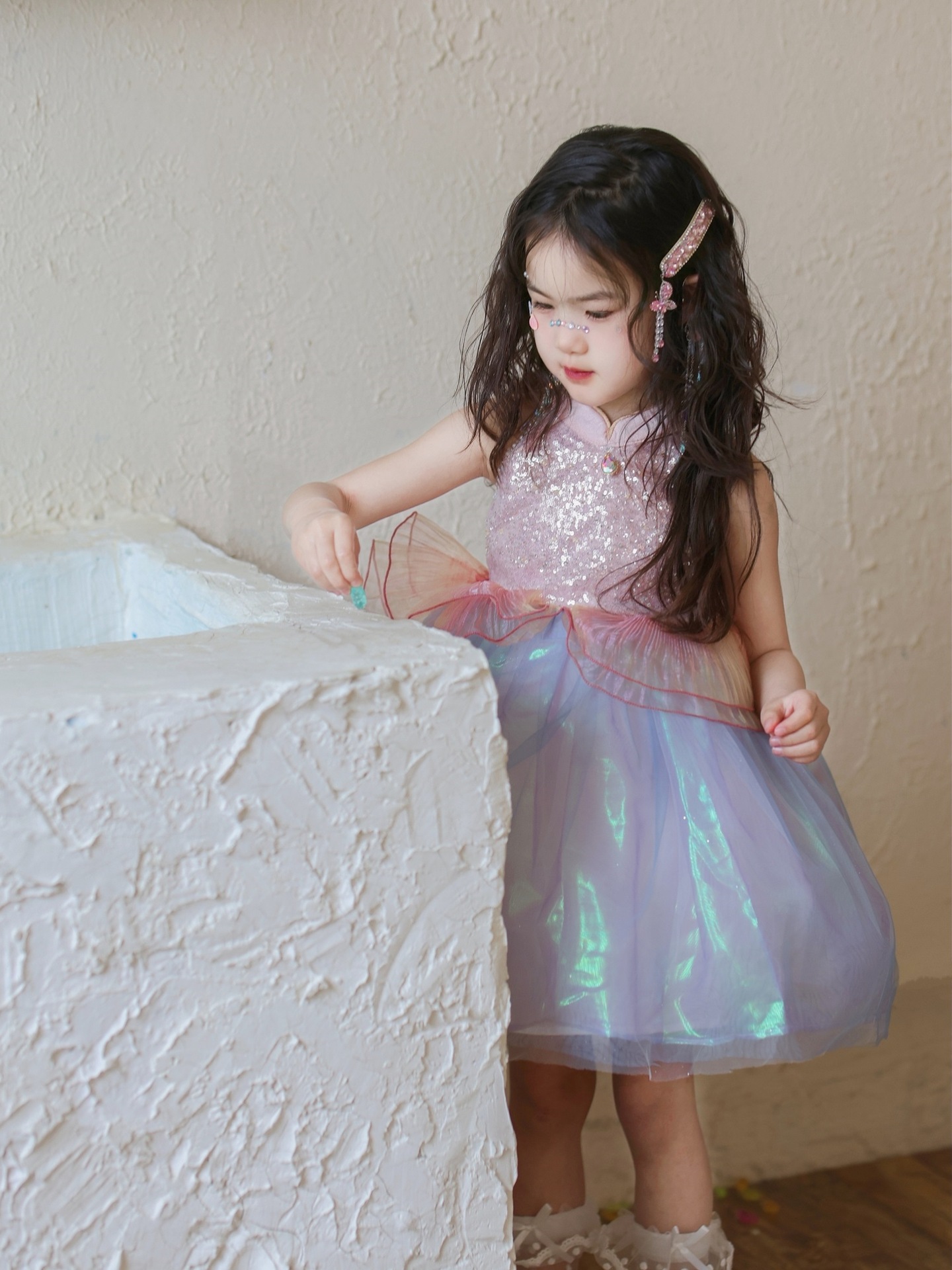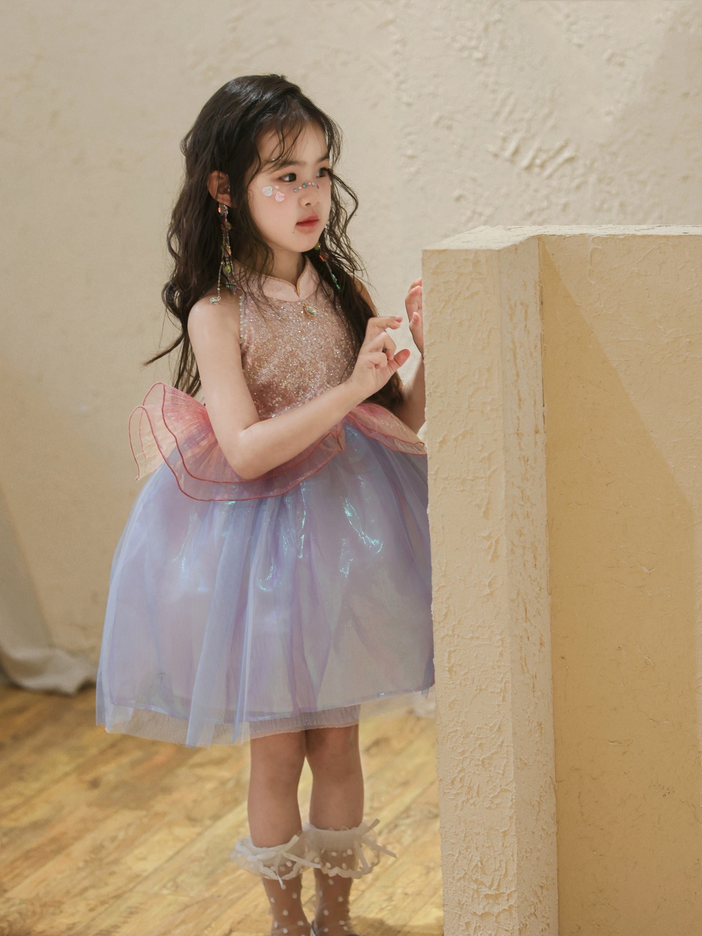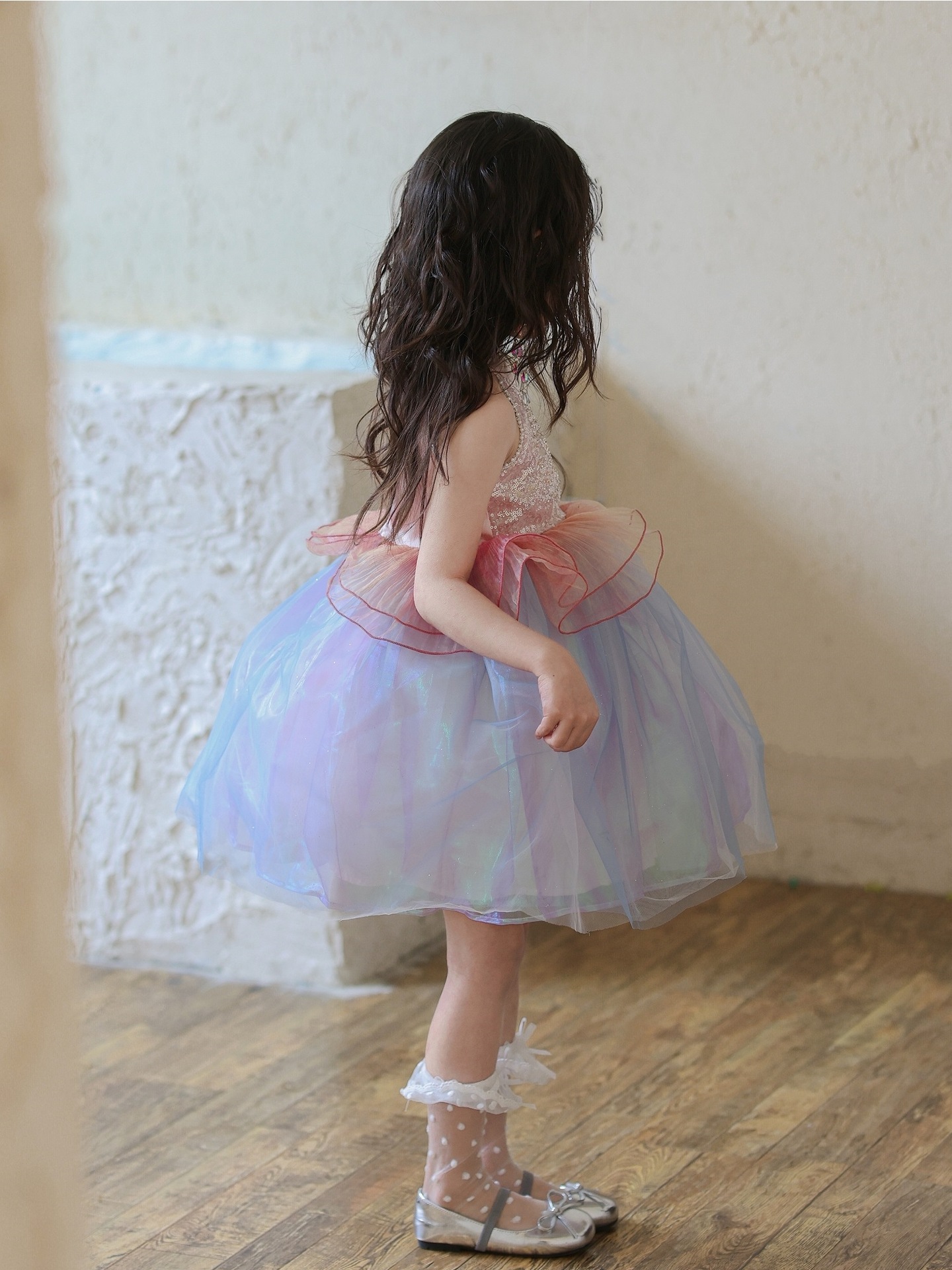 여자 여름 인어 공주 드레스 2025 새로운 여자 핑크 스팽글 메쉬 드레스 푹신한 생일 드레스스토어 가기