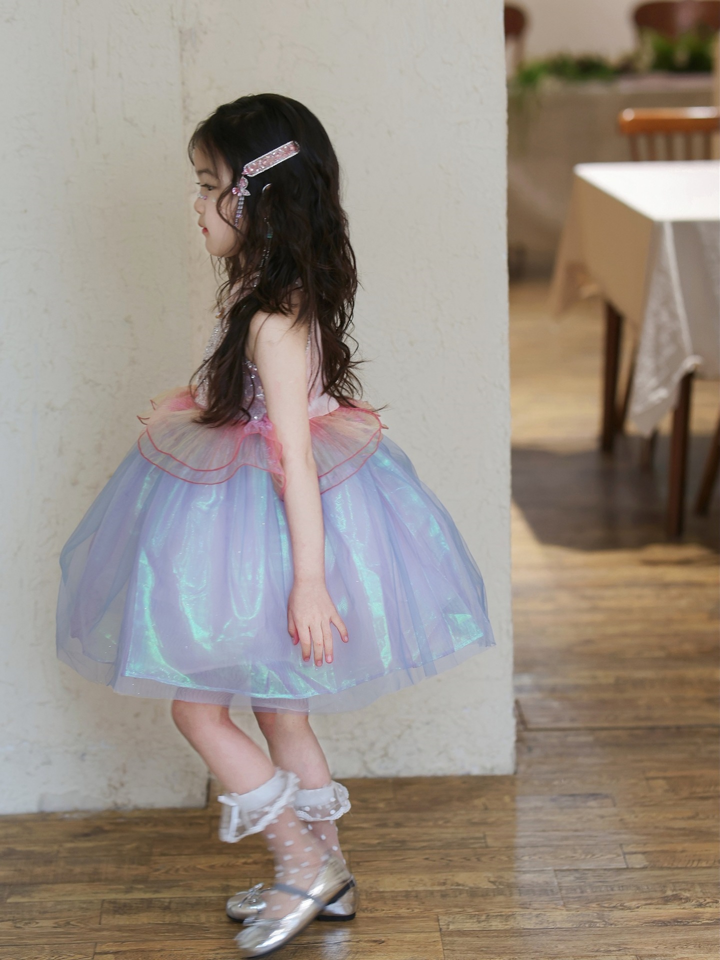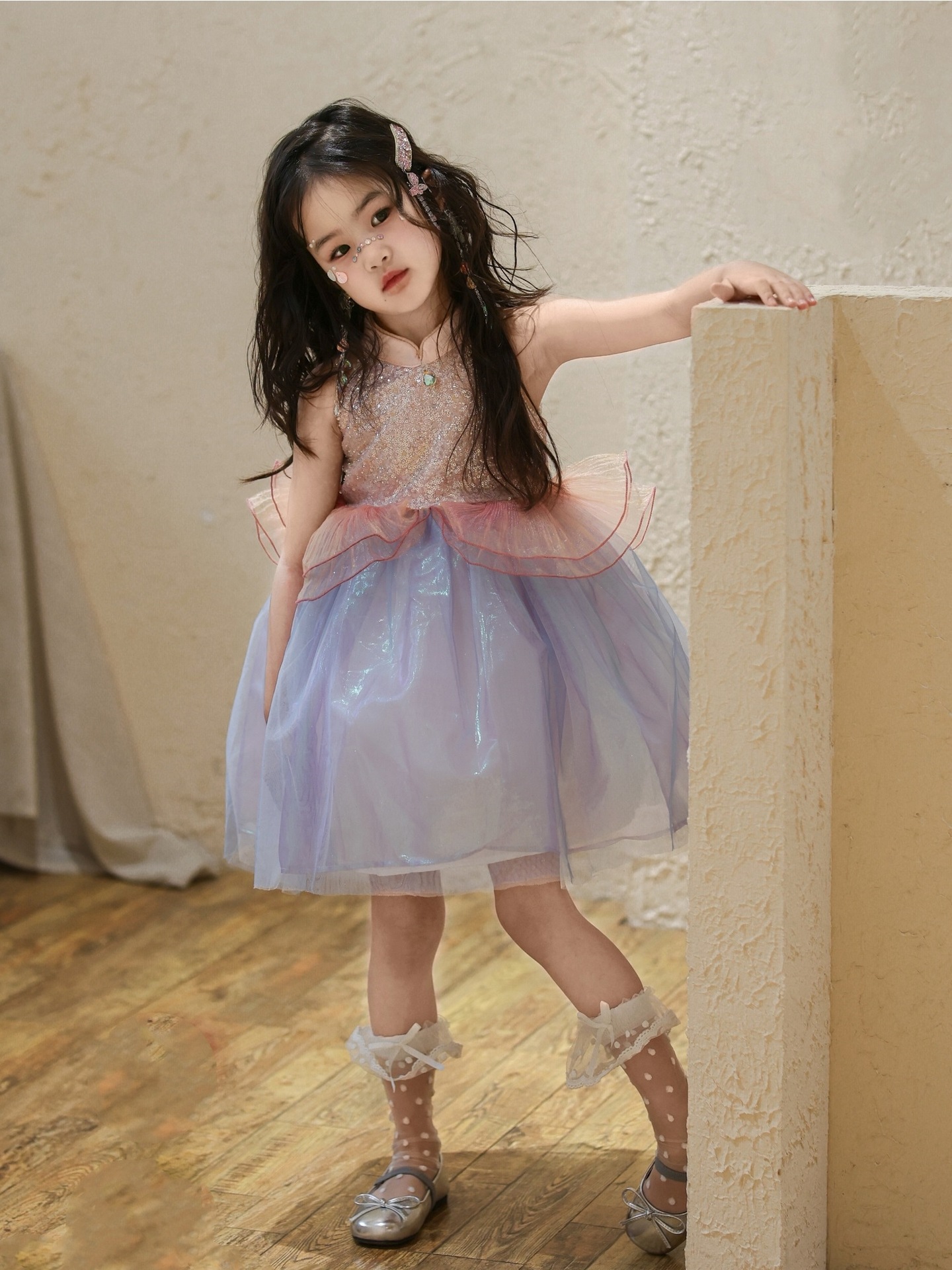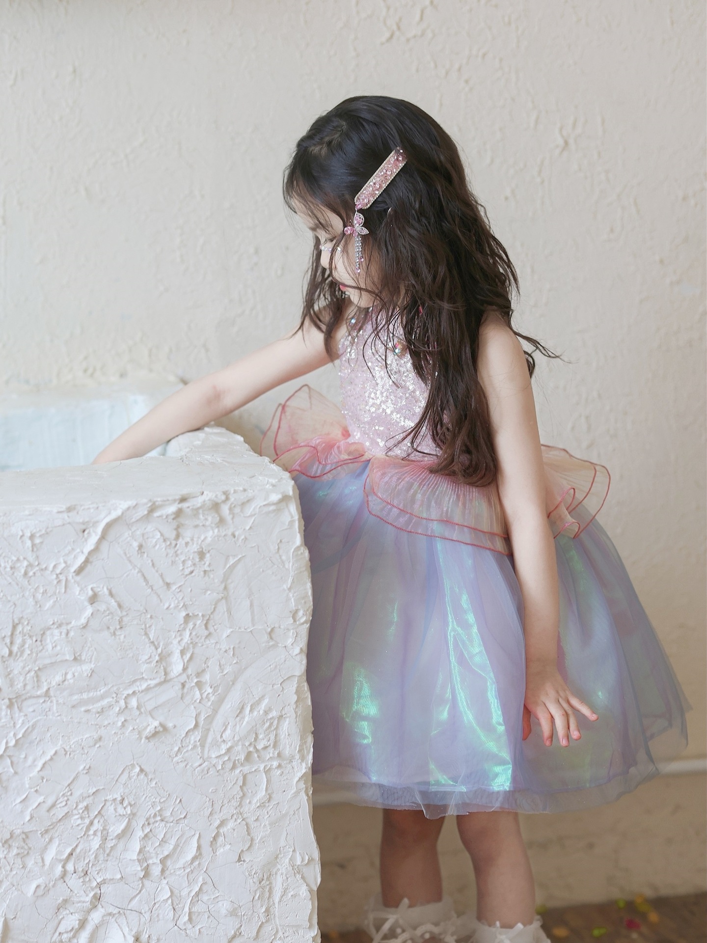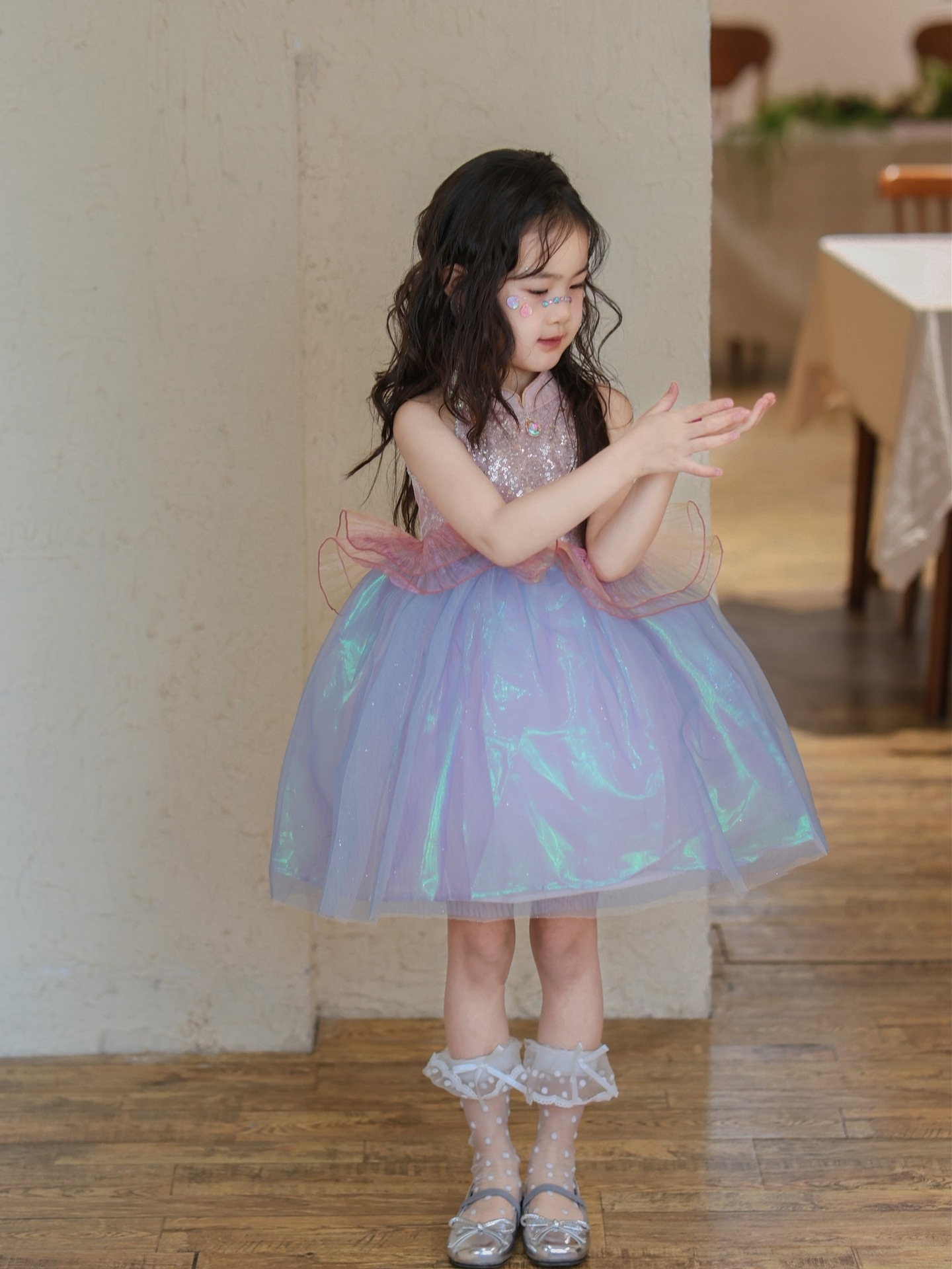 여자 여름 인어 공주 드레스 2025 새로운 여자 핑크 스팽글 메쉬 드레스 푹신한 생일 드레스스토어 가기