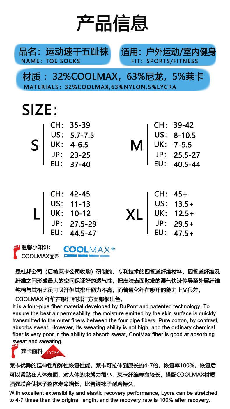 전문 야외 스포츠 양말 등산 사이클링 다섯 손가락 양말 남여 CoolMax 마라톤 러닝 스플릿 발가락 양말