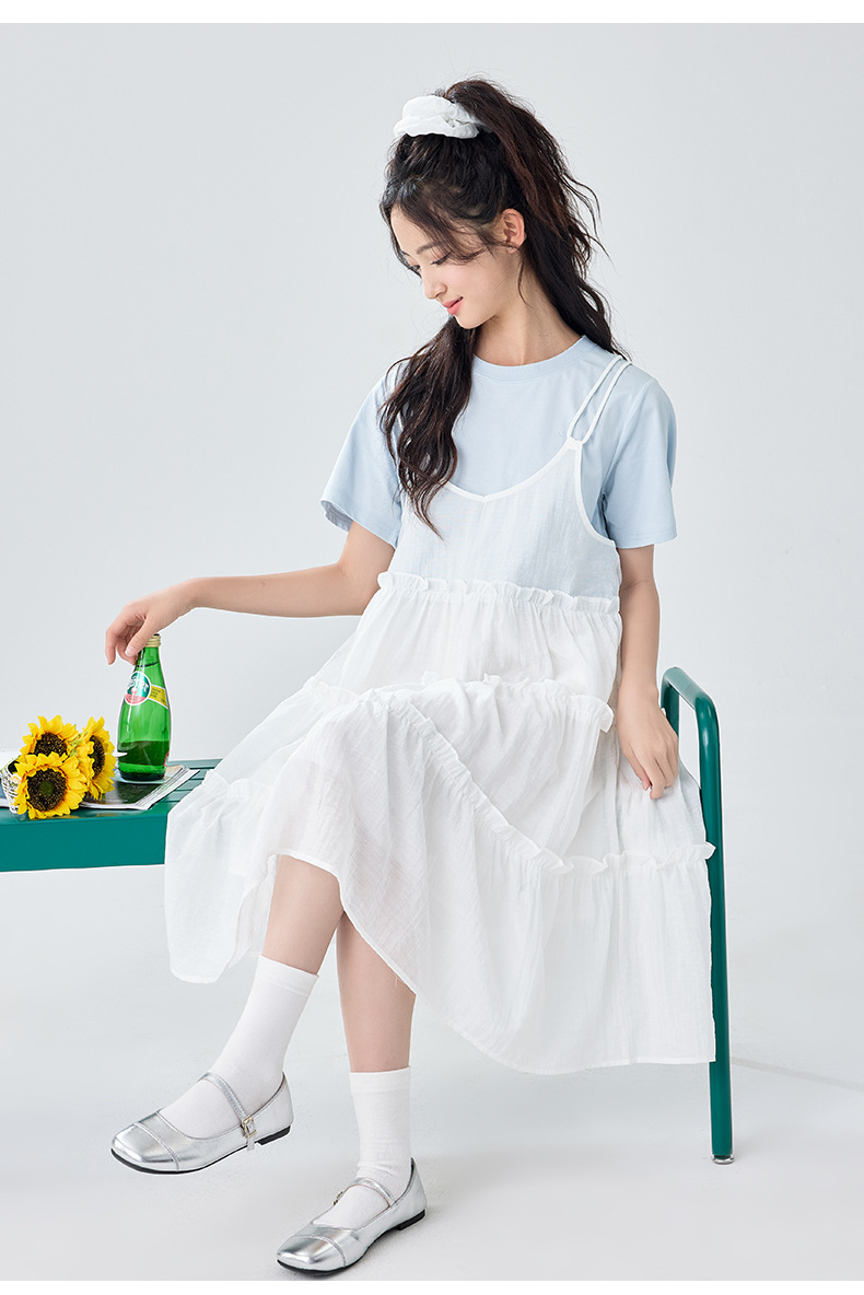여아 드레스 여름 2025 새로운 스타일 중학생 여아 달콤한 한국 스타일 스커트 여아 가짜 투피스 서스펜더 스커트스토어 가기