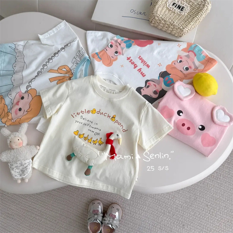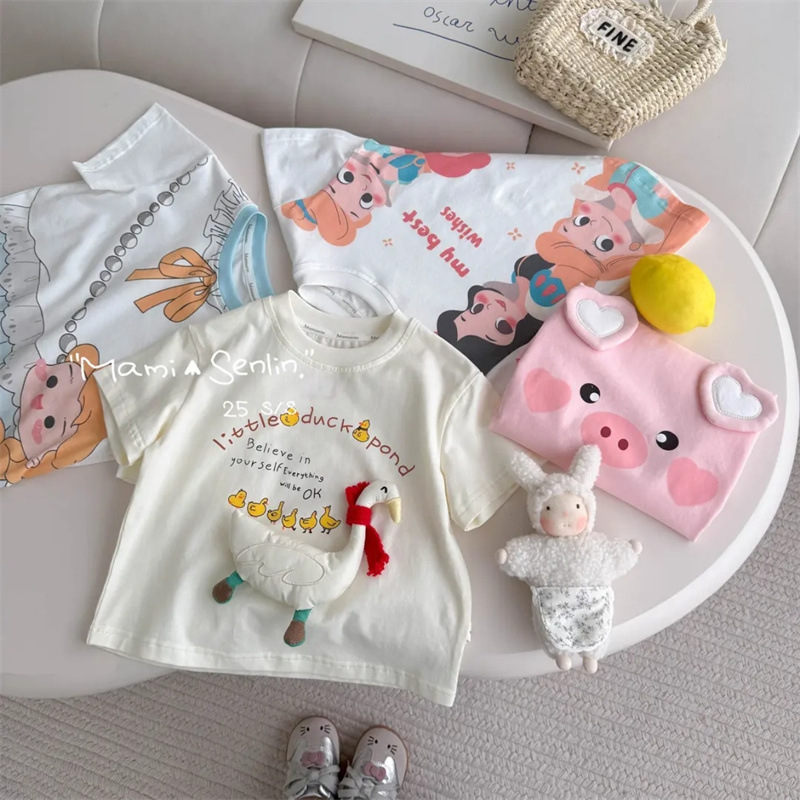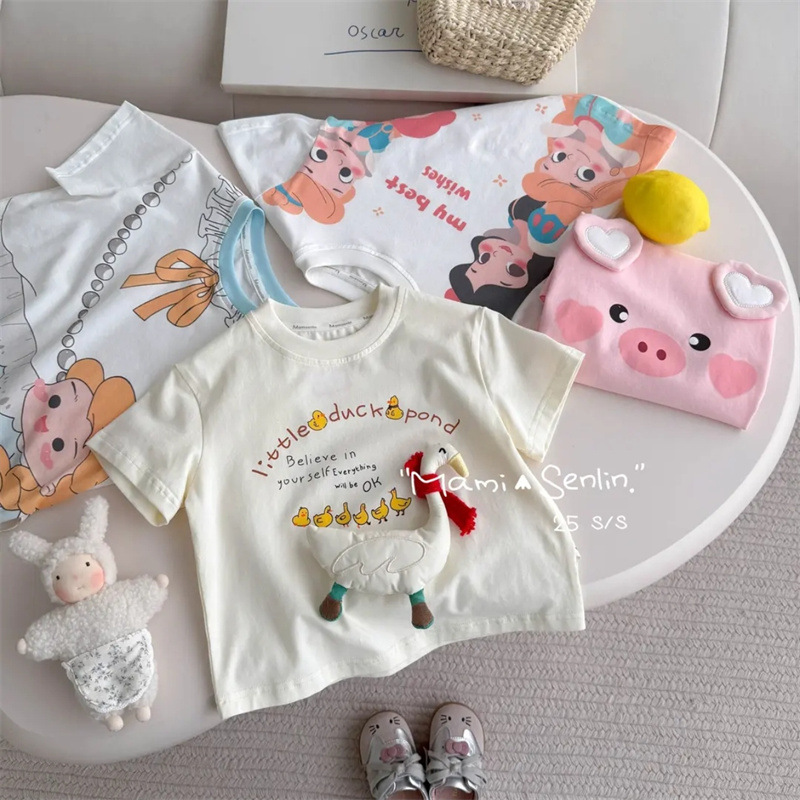 라임 소녀 한국 입체 만화 반팔 티셔츠 25 여름 새로운 여성 아기 귀여운 캐주얼 다용도 탑스토어 가기