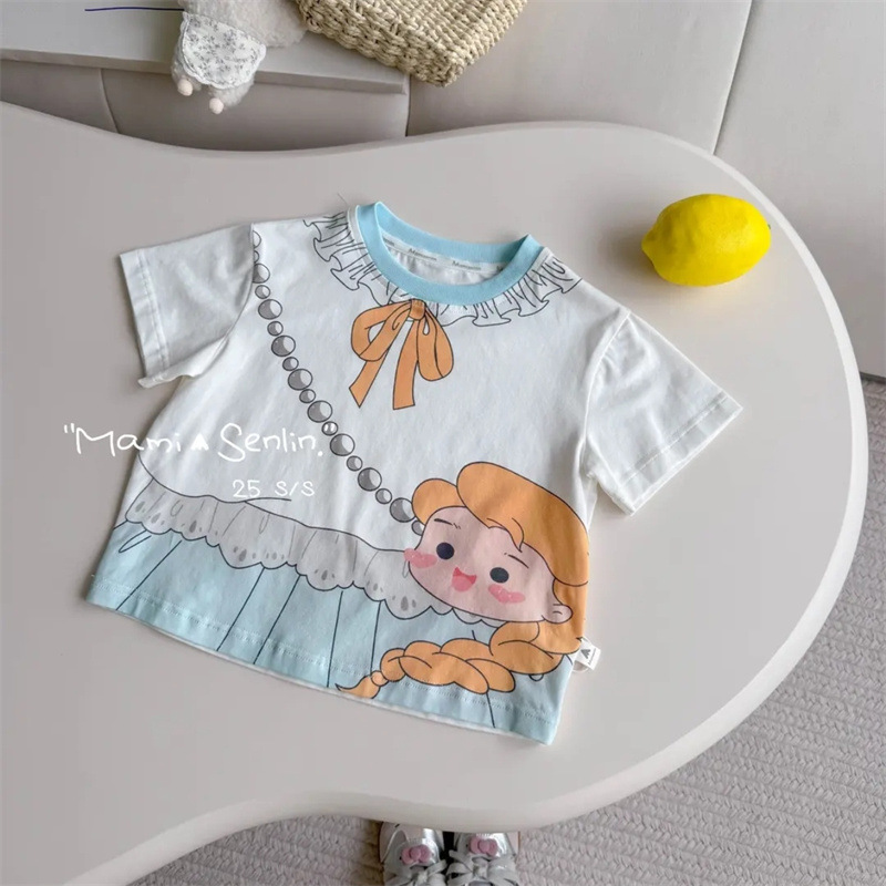 라임 소녀 한국 입체 만화 반팔 티셔츠 25 여름 새로운 여성 아기 귀여운 캐주얼 다용도 탑