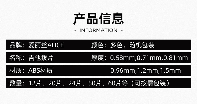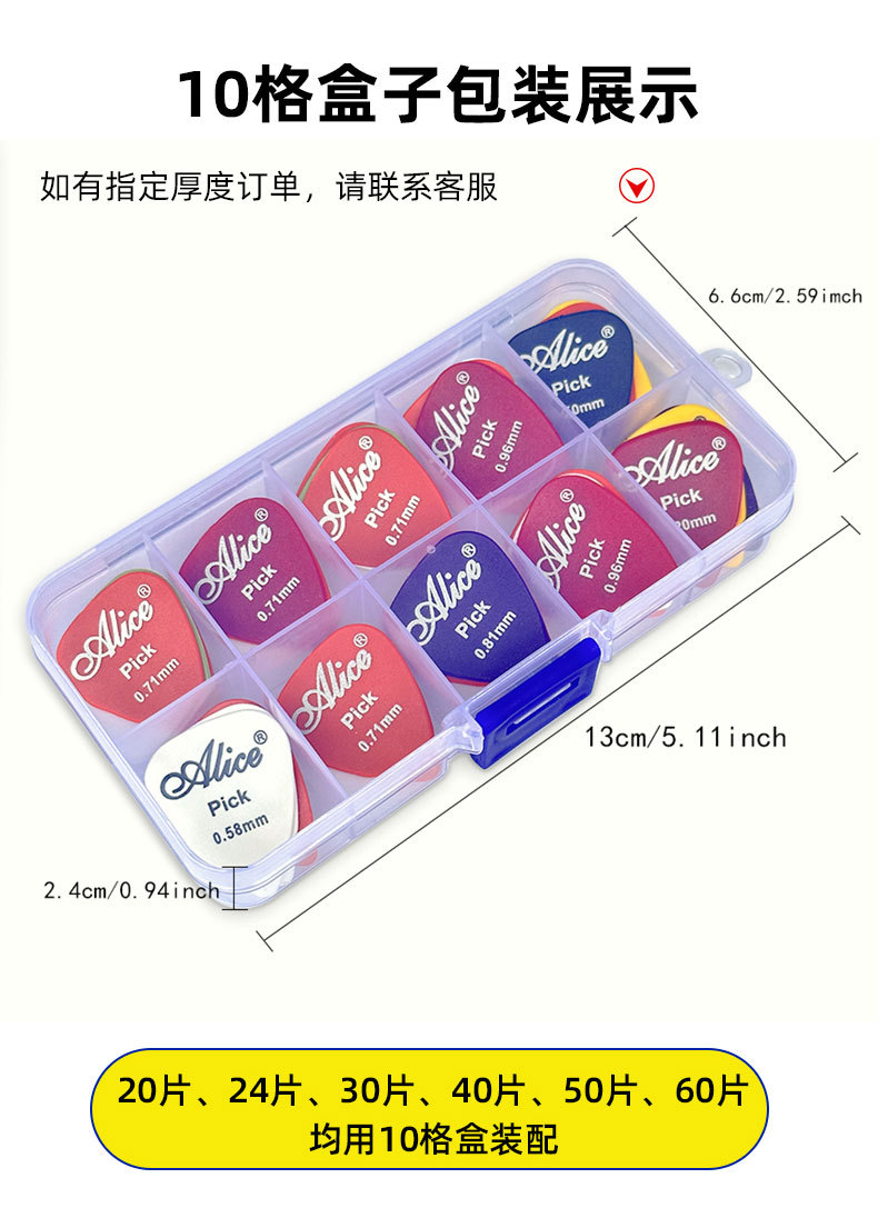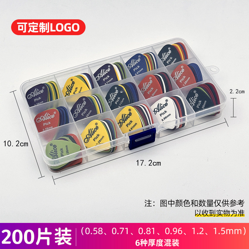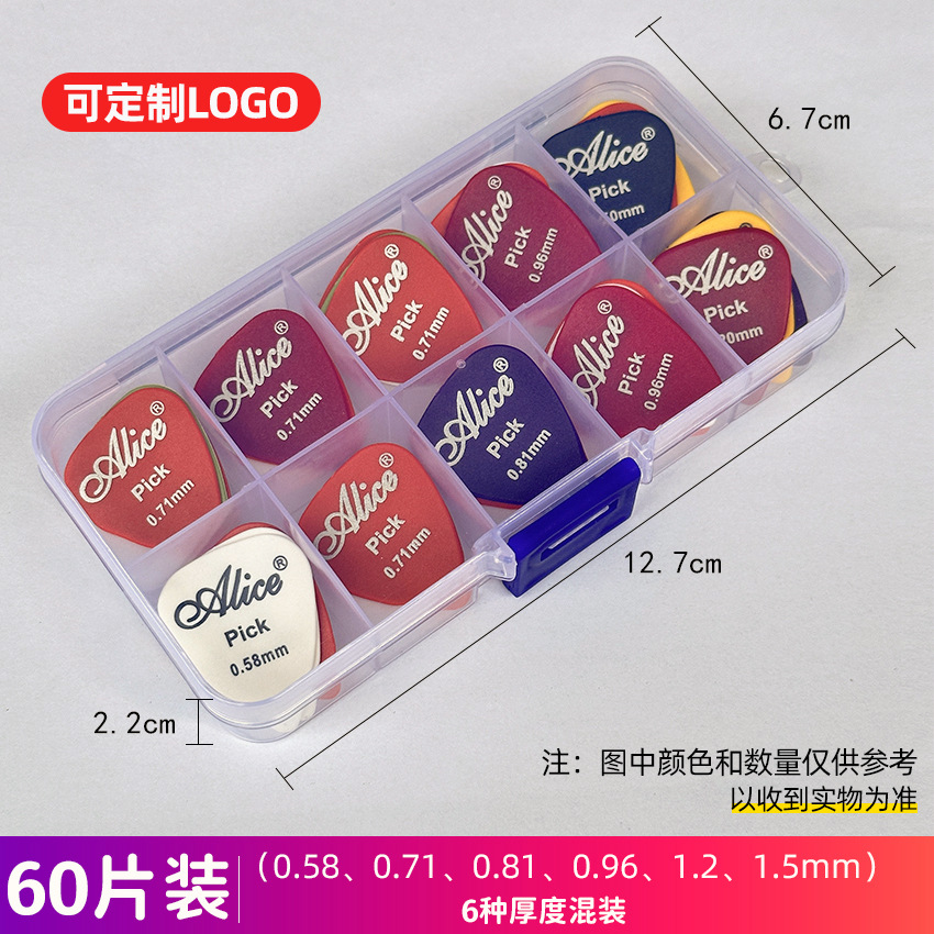 앨리스 기타 픽 ABS 수지 반투명/광택 플레이크 박스형 6개-600개 혼합 도매