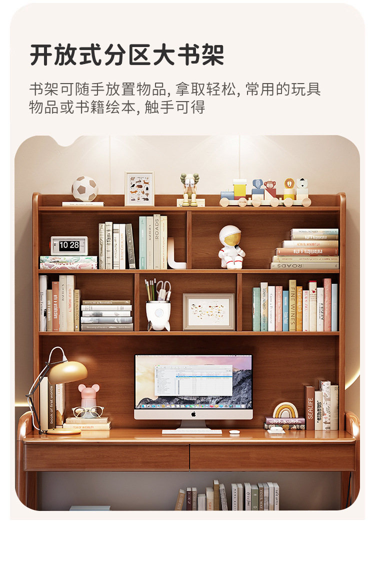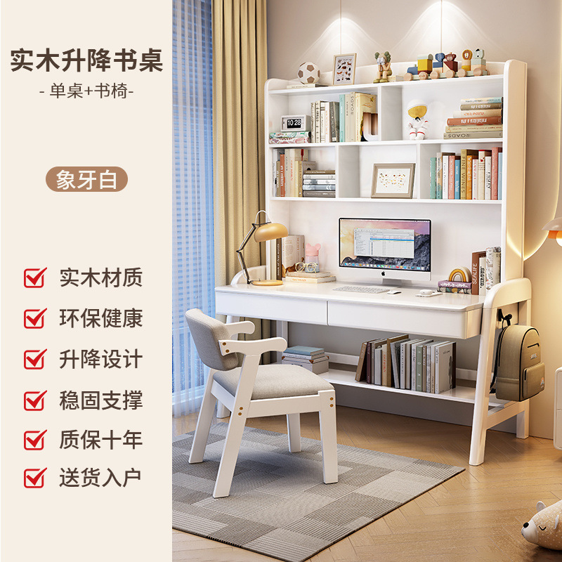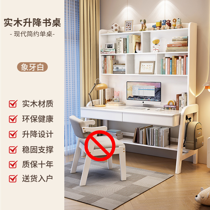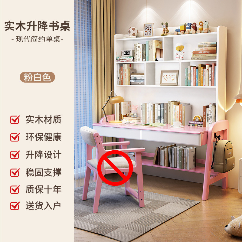 단단한 나무 책상 책장 리프팅 가능한 일체형 어린이 학습 테이블 침실 간단한 가정 초등 및 중등 학생 책상