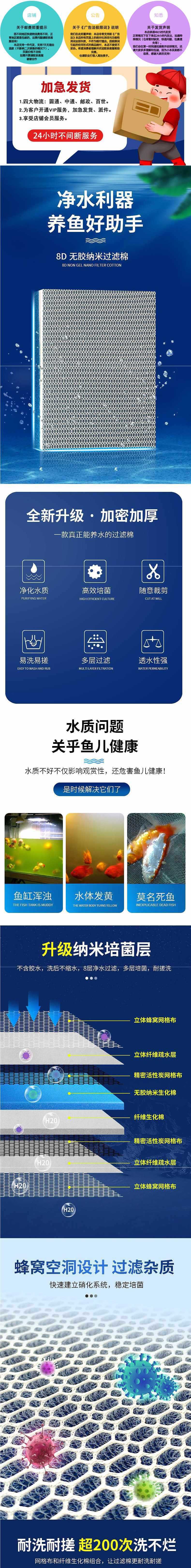 물고기 수조 필터면, 고밀도 및 두꺼운 정수, 내장 필터 재료, 세탁 가능, 생물 화학 매직 카펫