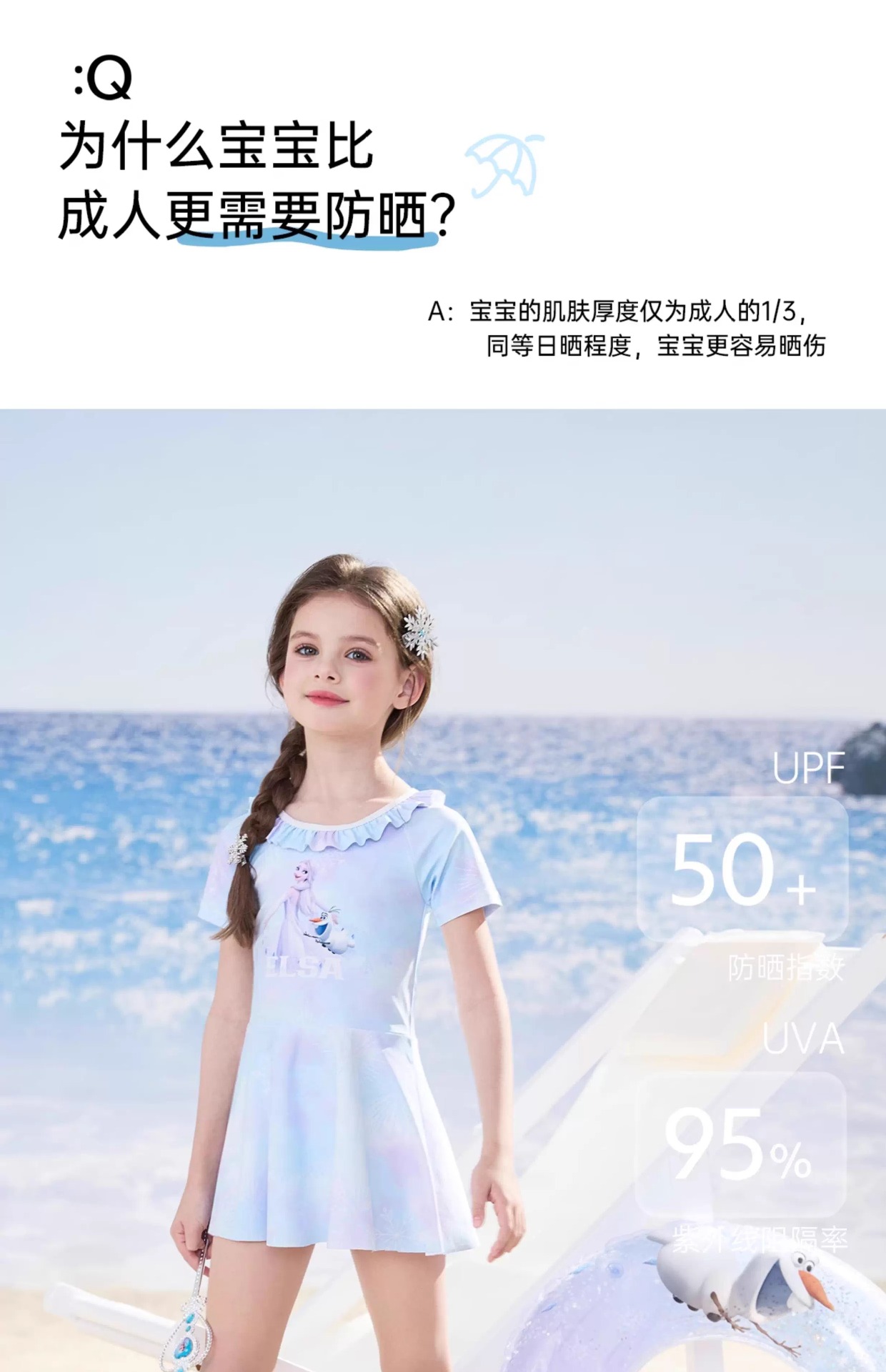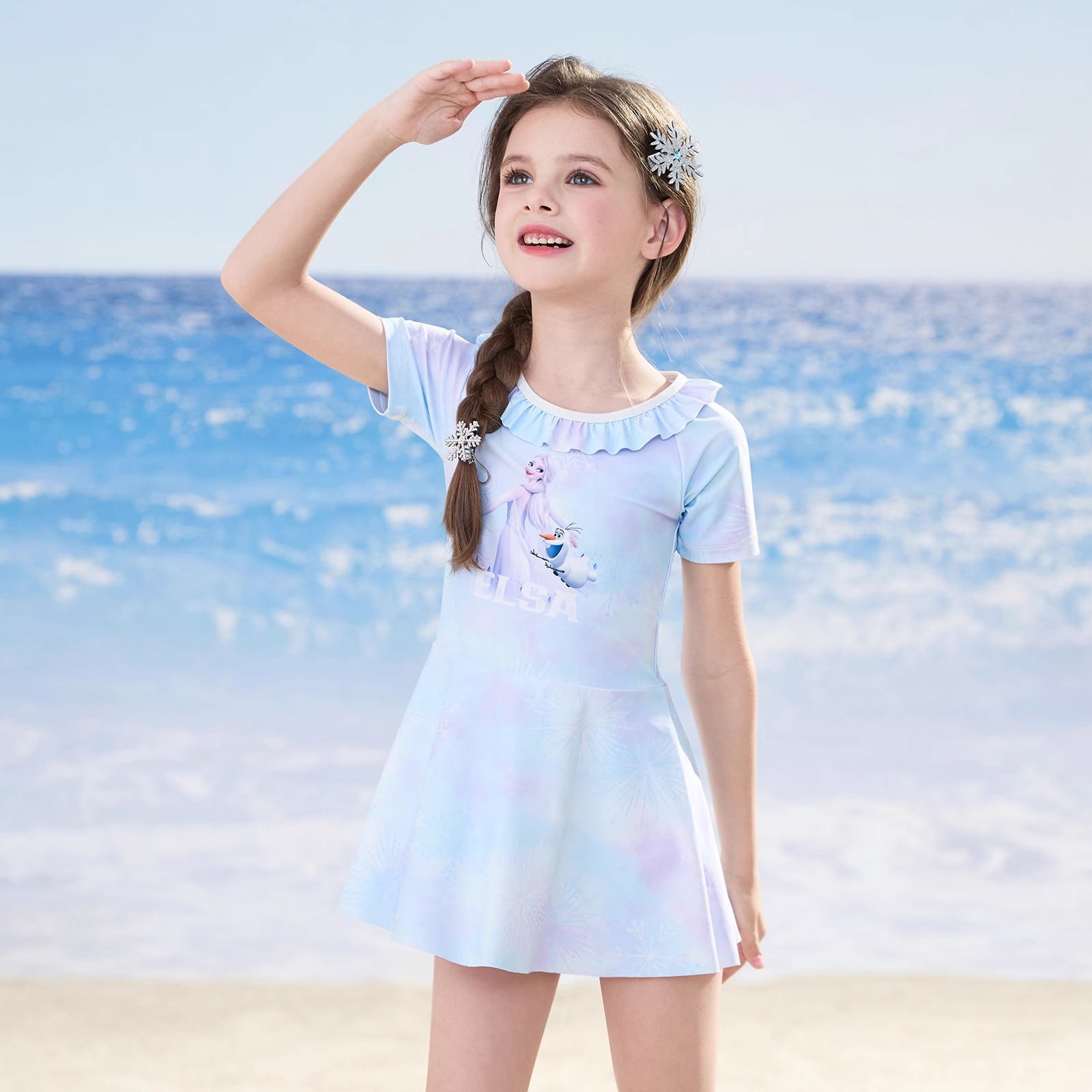 디즈니 어린이 수영복 소녀 2025 새로운 중대형 어린이 원피스 온천 수영복 소녀 베이비 수영복