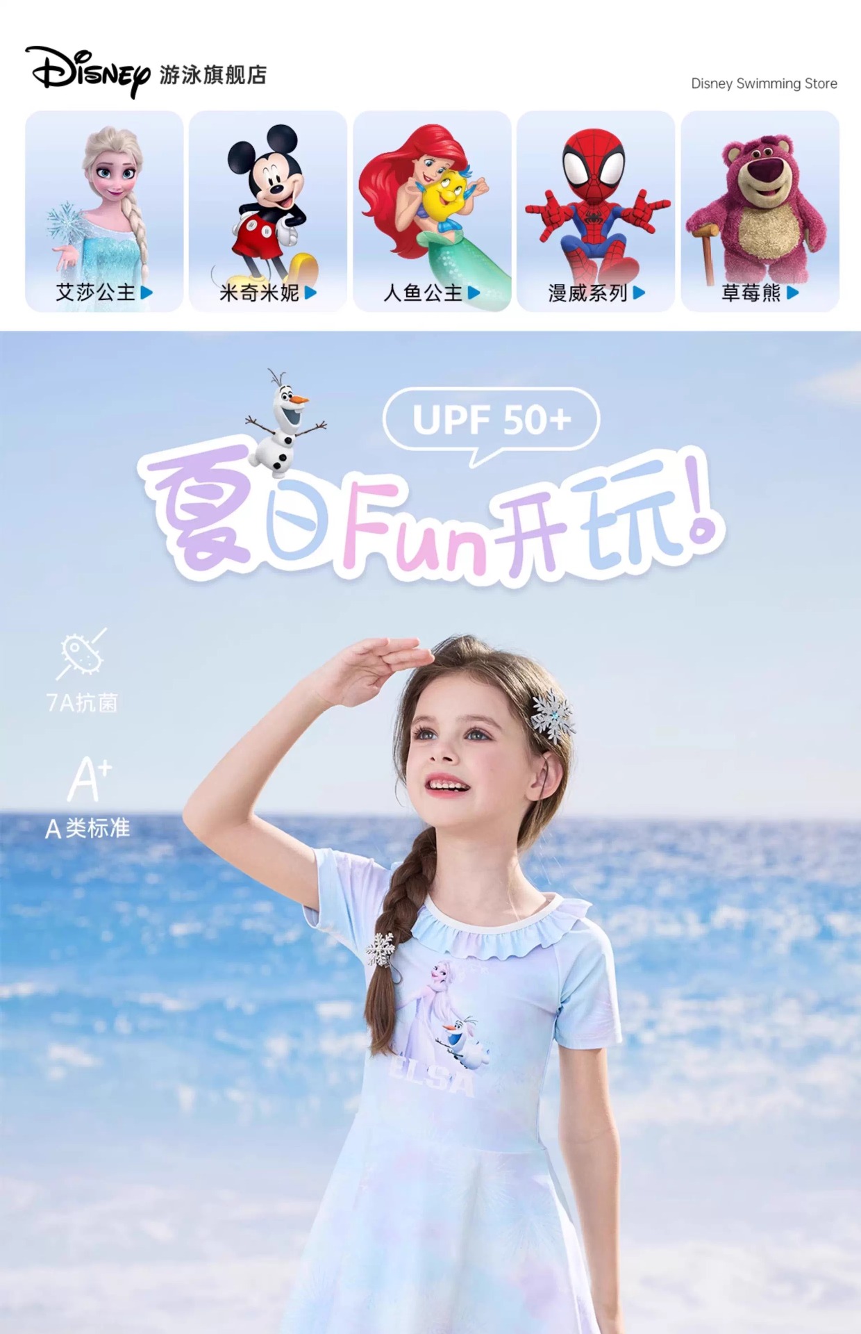 디즈니 어린이 수영복 소녀 2025 새로운 중대형 어린이 원피스 온천 수영복 소녀 베이비 수영복스토어 가기