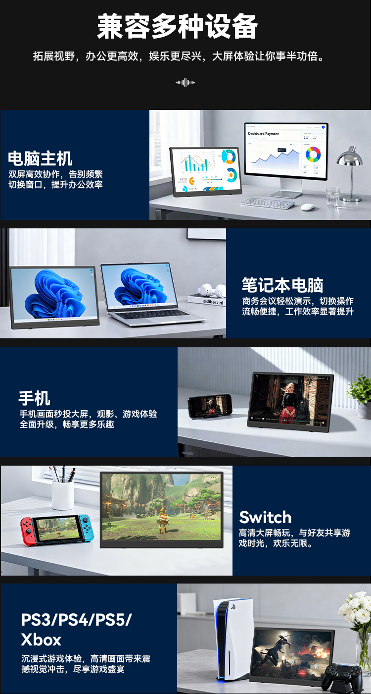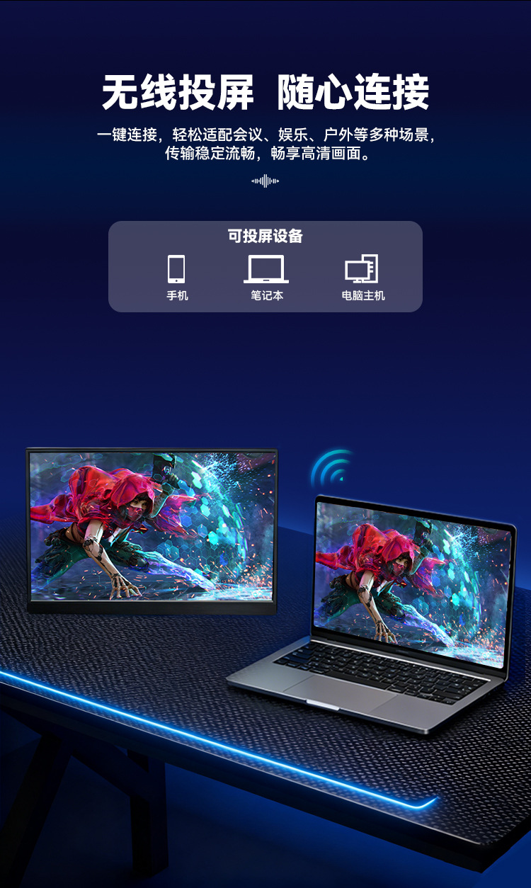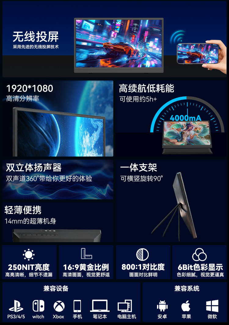 Rovesky 무선 휴대용 디스플레이 15.6 인치 휴대용 화면 휴대 전화 게임 ps5/스위치 확장 화면스토어 가기