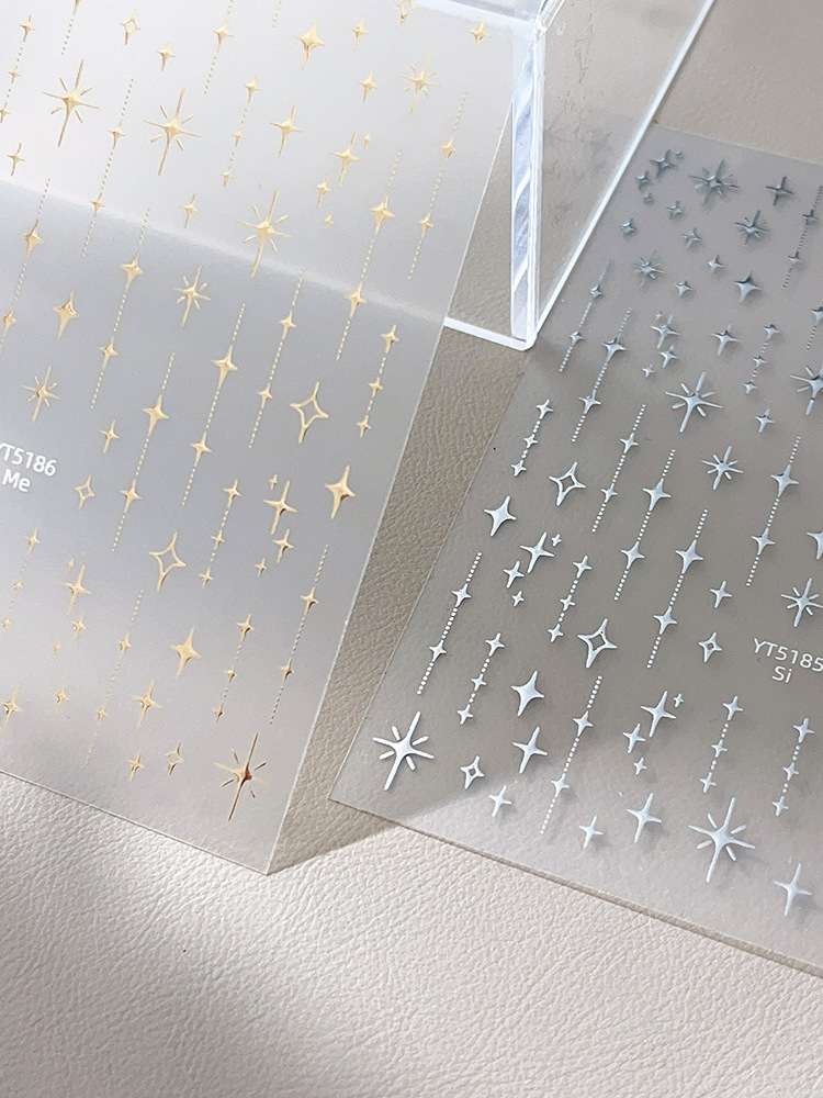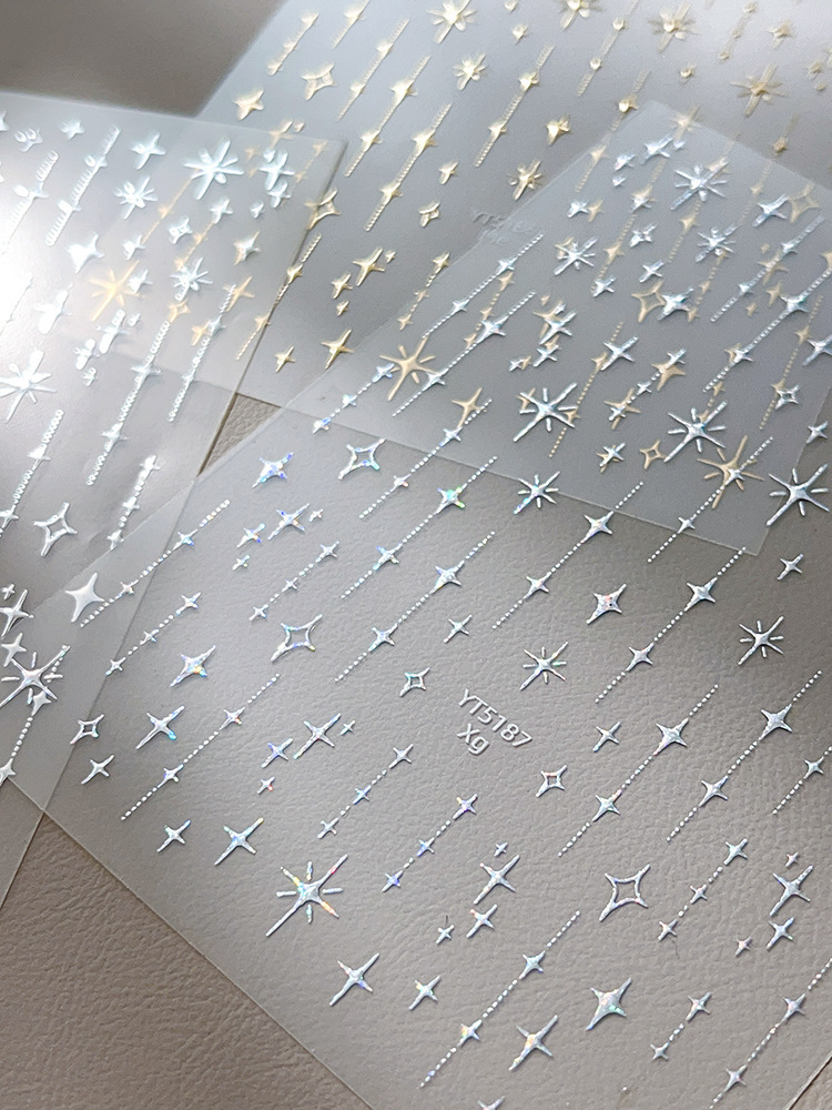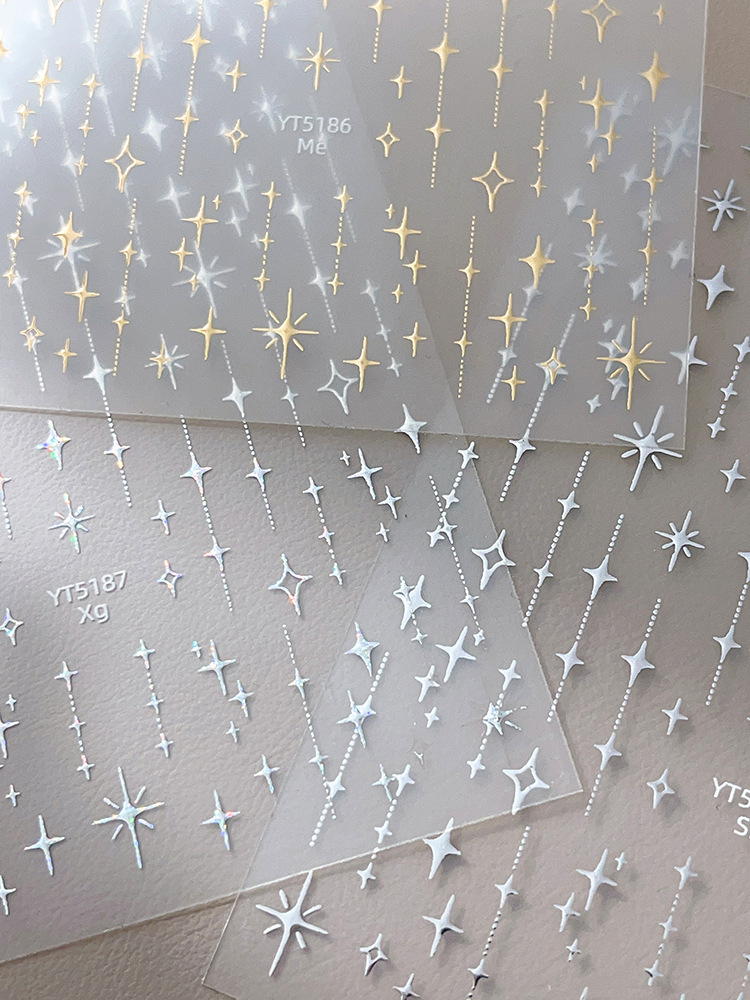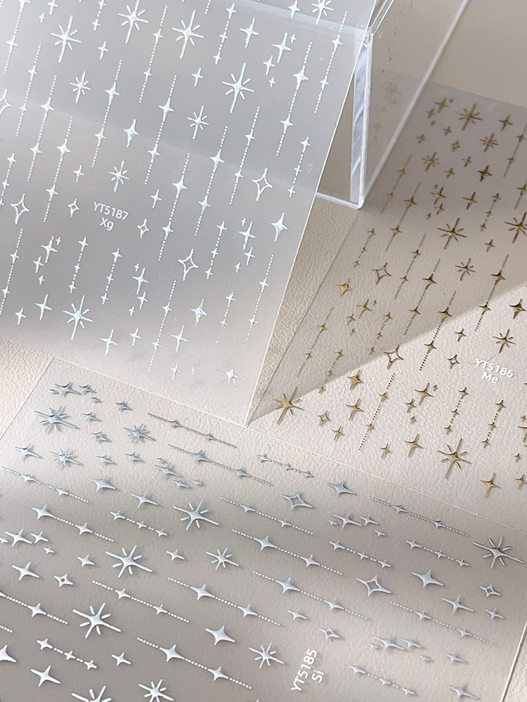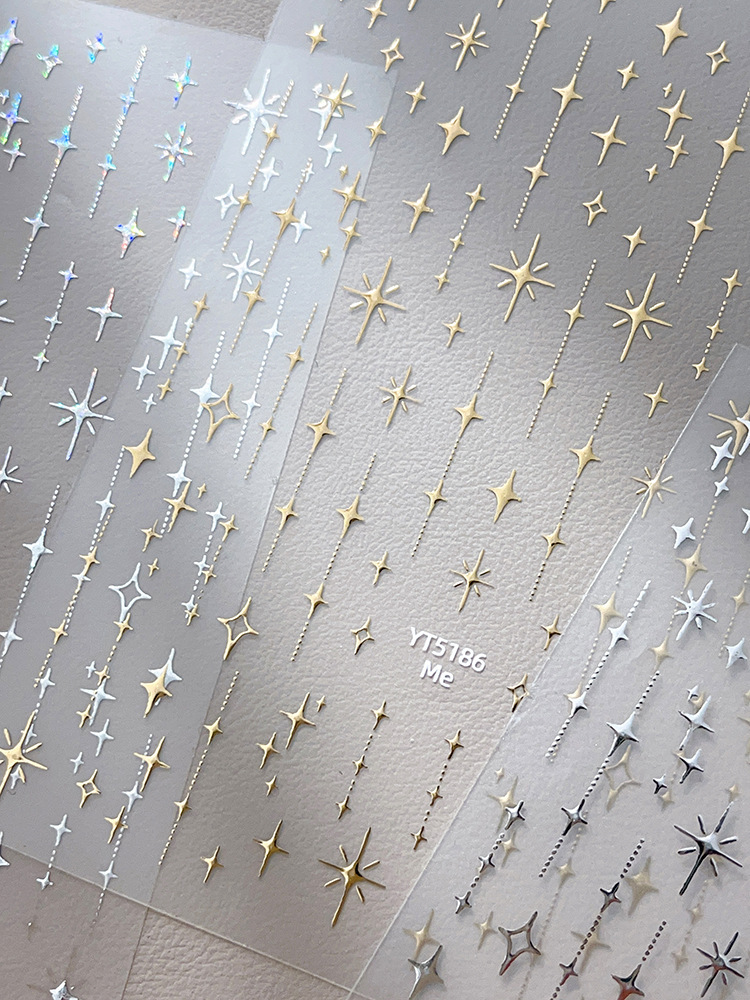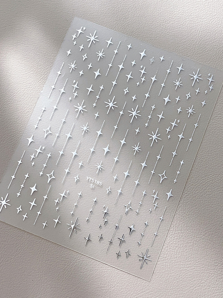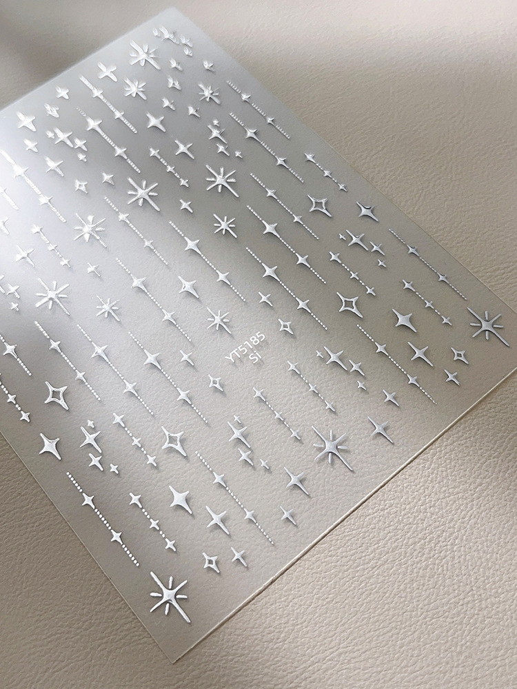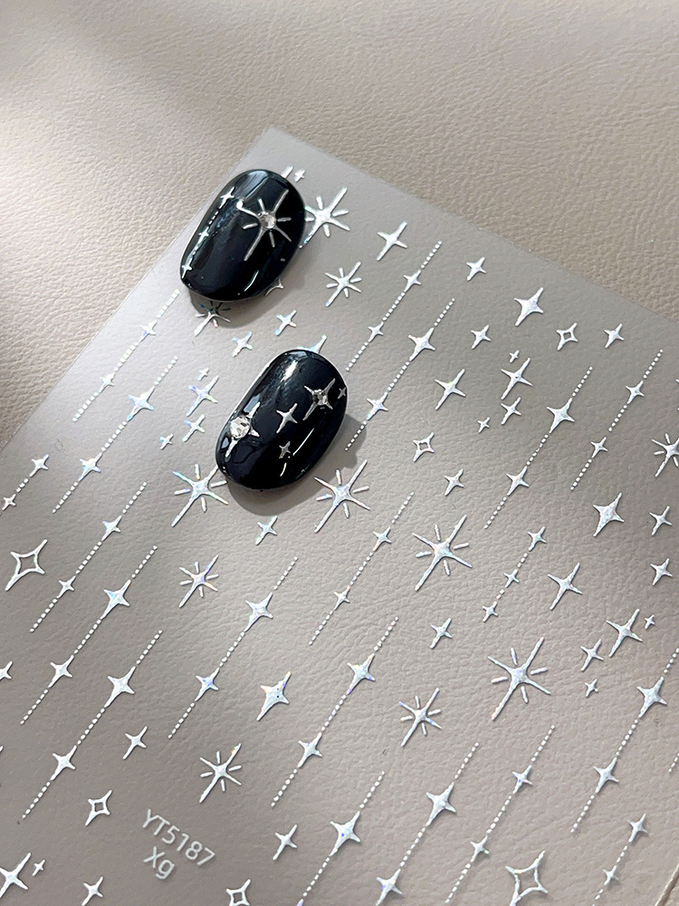 핫 실버 스타 네일 아트 엠보싱 스티커, 심플하고 다재다능한 스타 접착 네일 데칼, 인터넷 연예인 인기 장식 도매스토어 가기