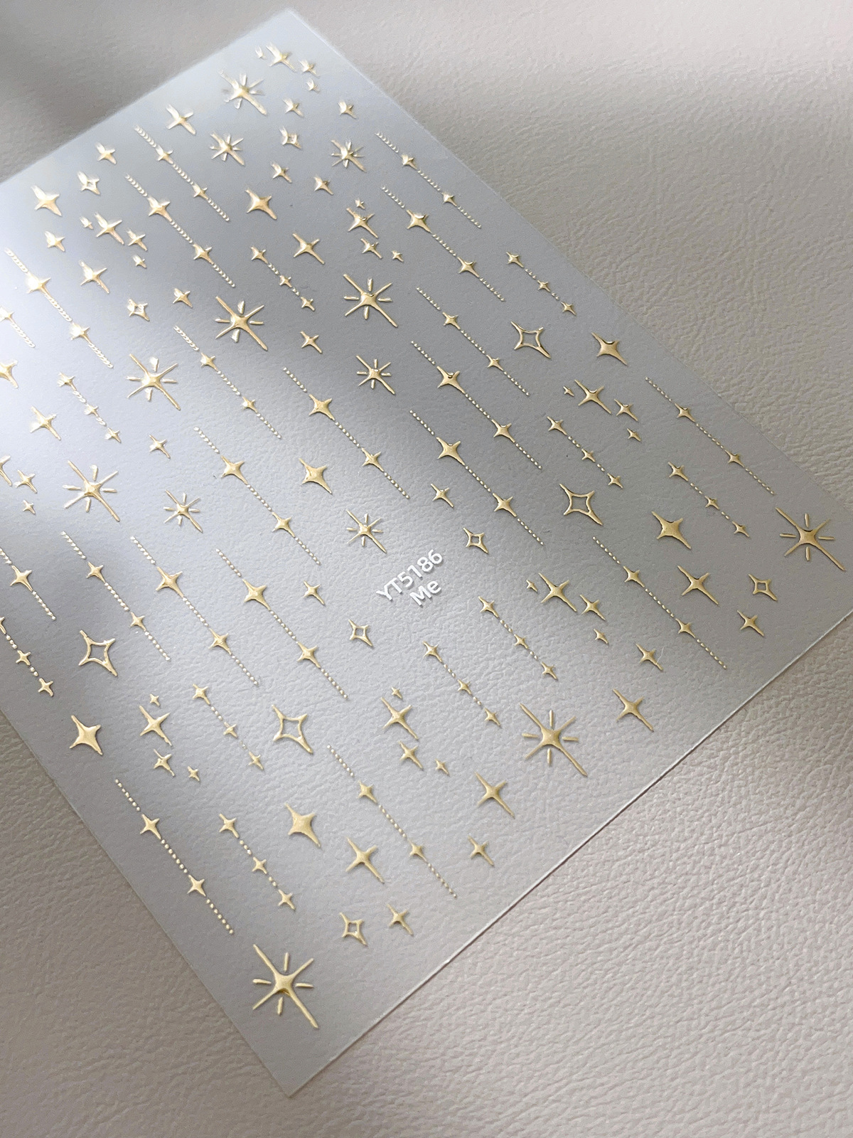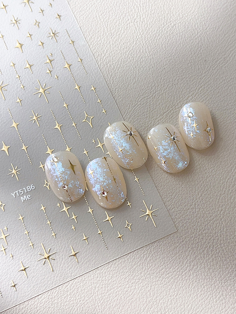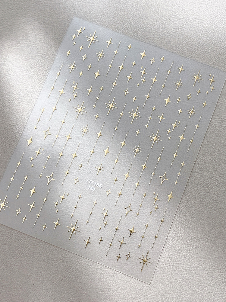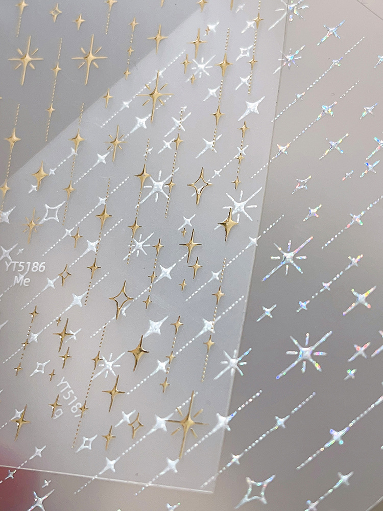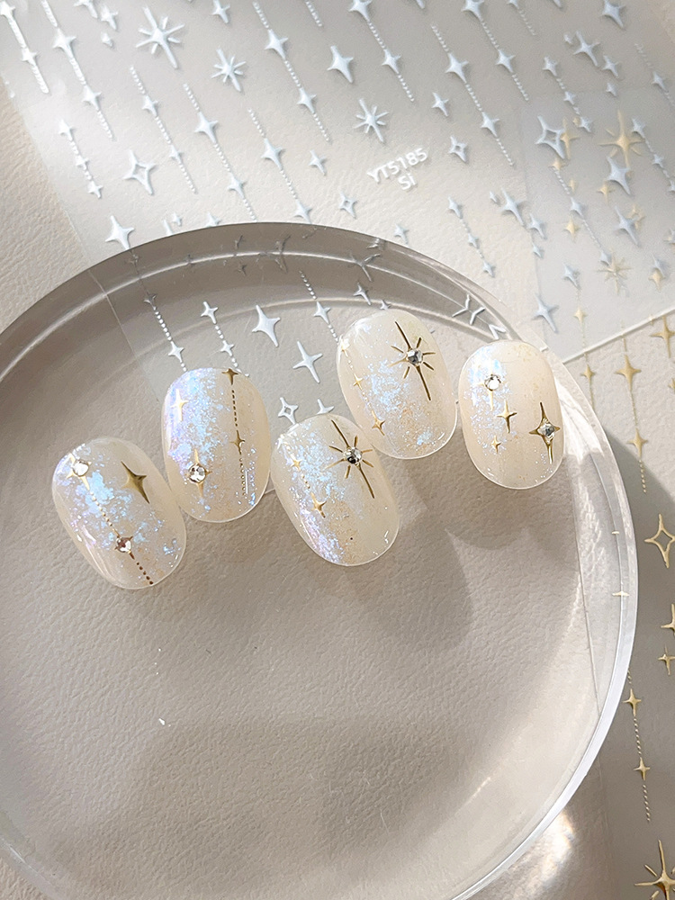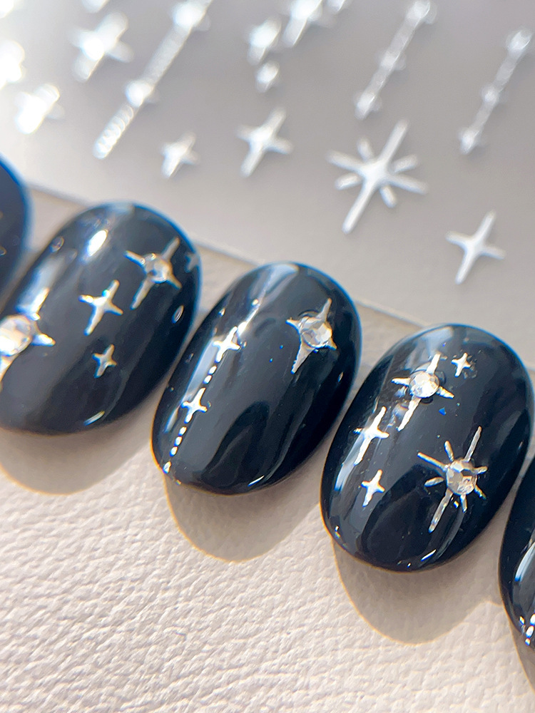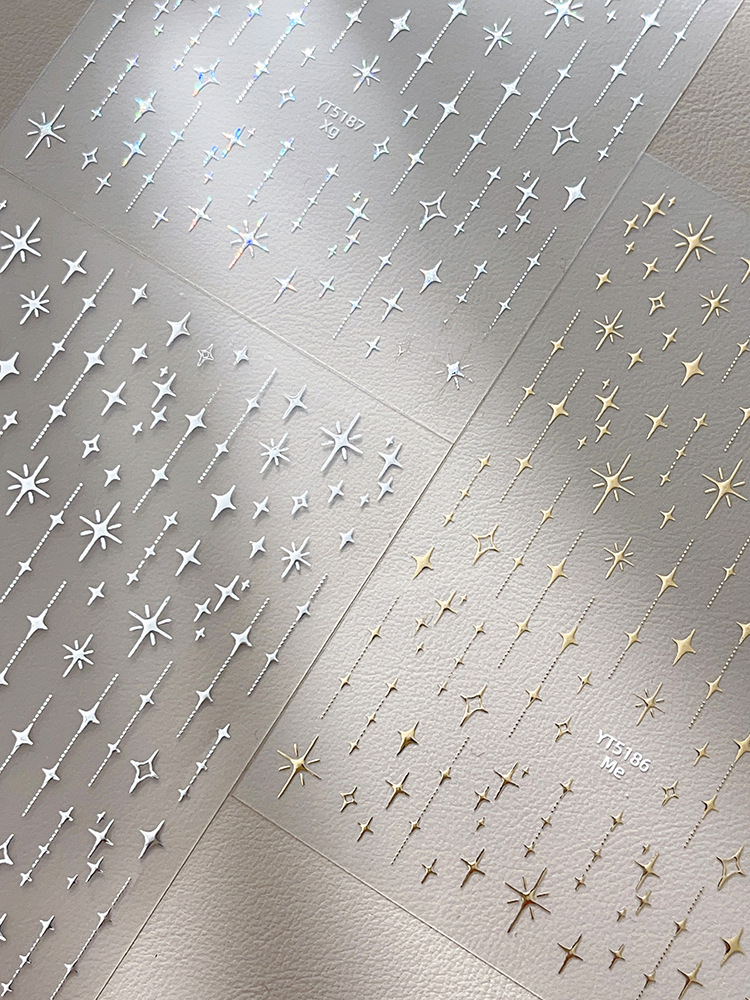 핫 실버 스타 네일 아트 엠보싱 스티커, 심플하고 다재다능한 스타 접착 네일 데칼, 인터넷 연예인 인기 장식 도매스토어 가기