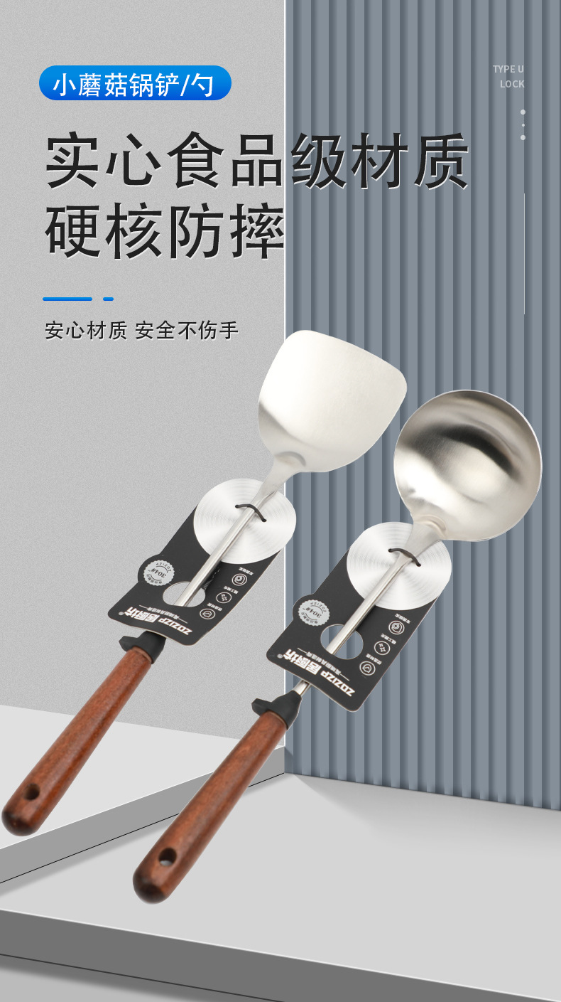 도매 두꺼운 스테인레스 스틸 작은 버섯 주걱 가정용 주방 요리 스푼 경량 주걱 10 위안 매장 공급