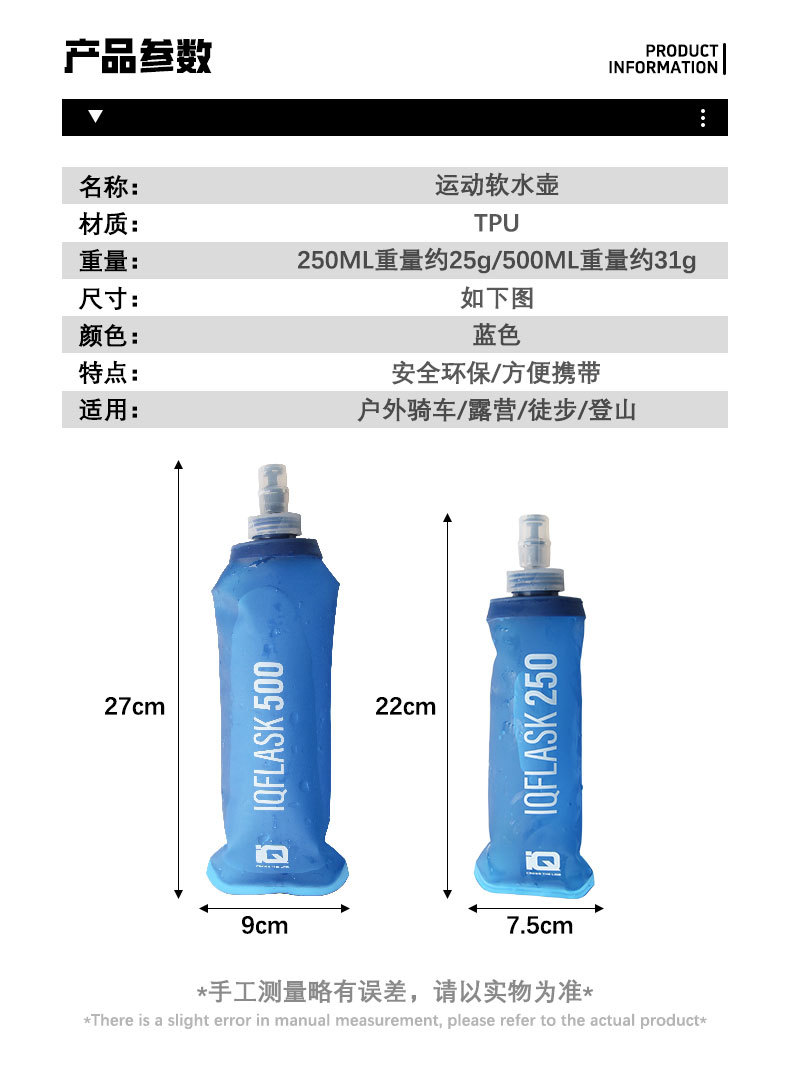 제조업체 국경 간 소프트 병 스포츠 야외 캠핑 사이클링 TPU 워터 가방 접이식 소프트 병 러닝 마라톤