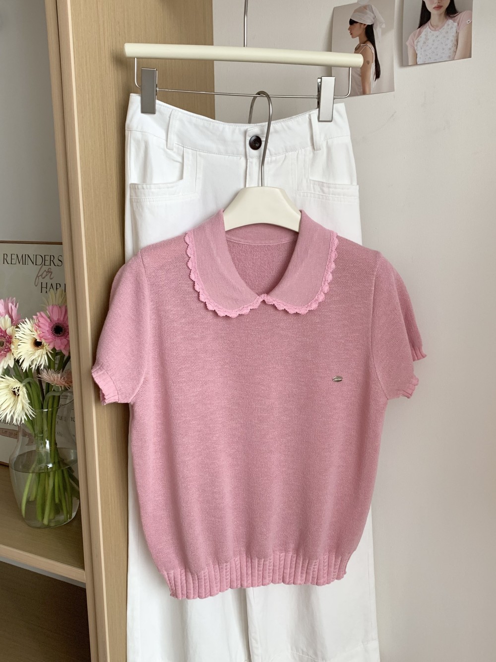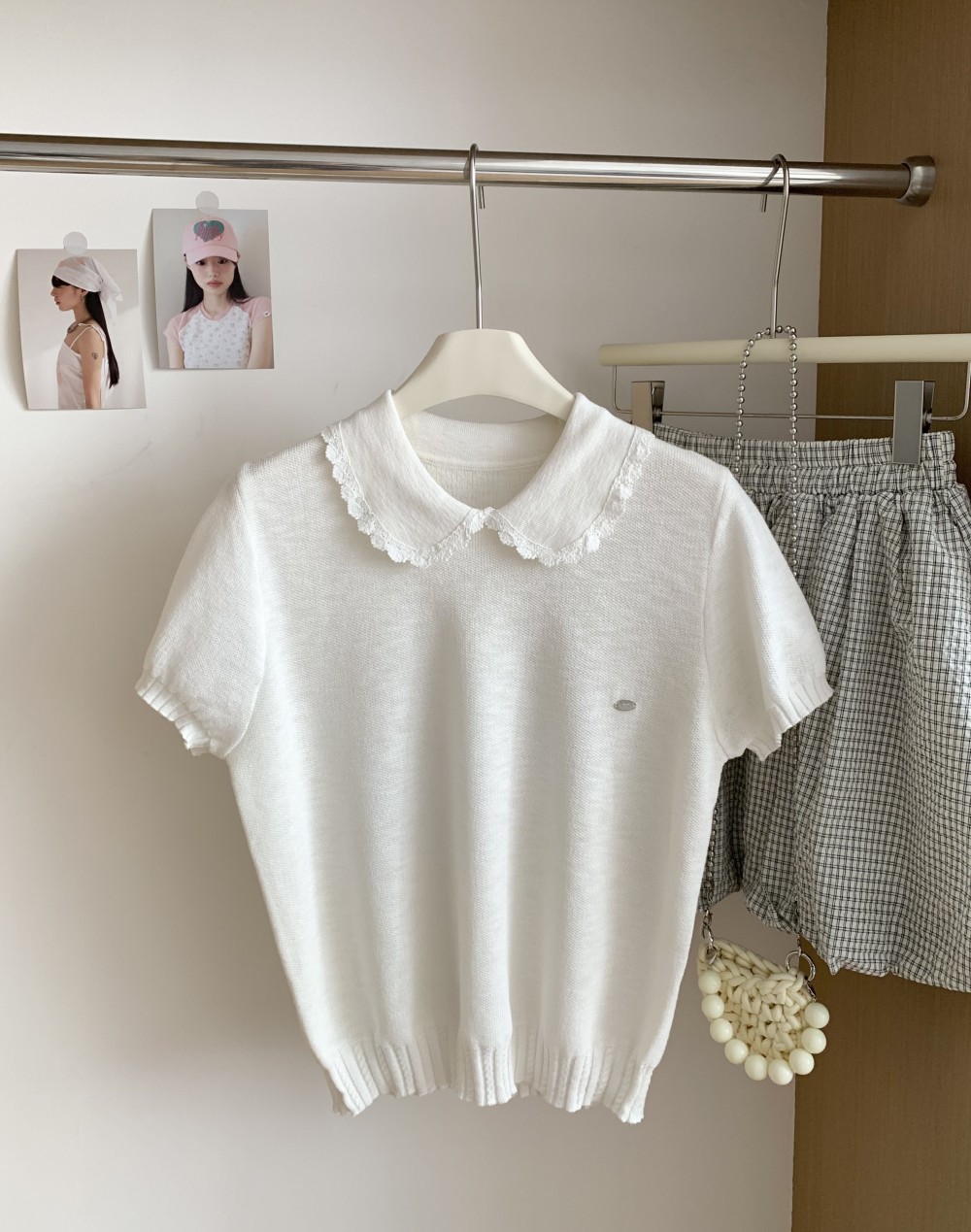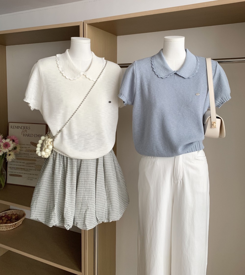 여성을위한 작은 신선한 한국 인형 칼라 반팔 티셔츠 2025 여름 새로운 달콤한 연령 감소 기질 스웨터 탑스토어 가기
