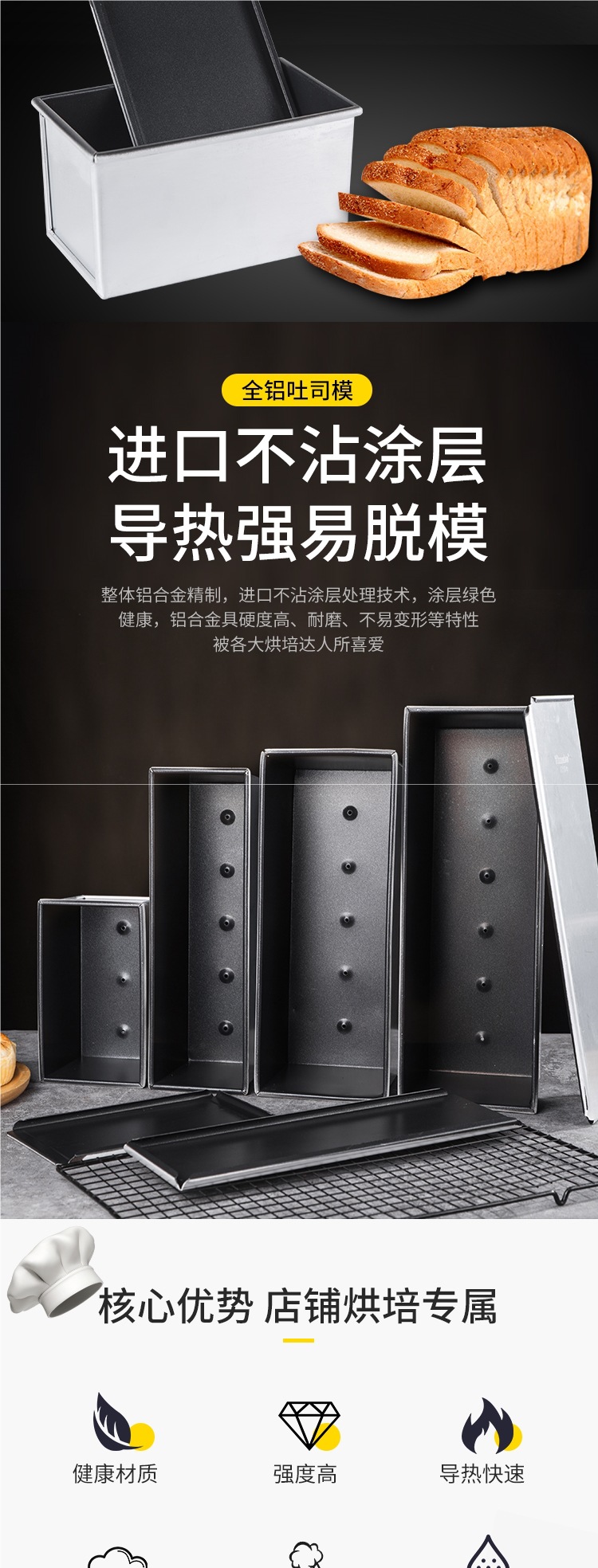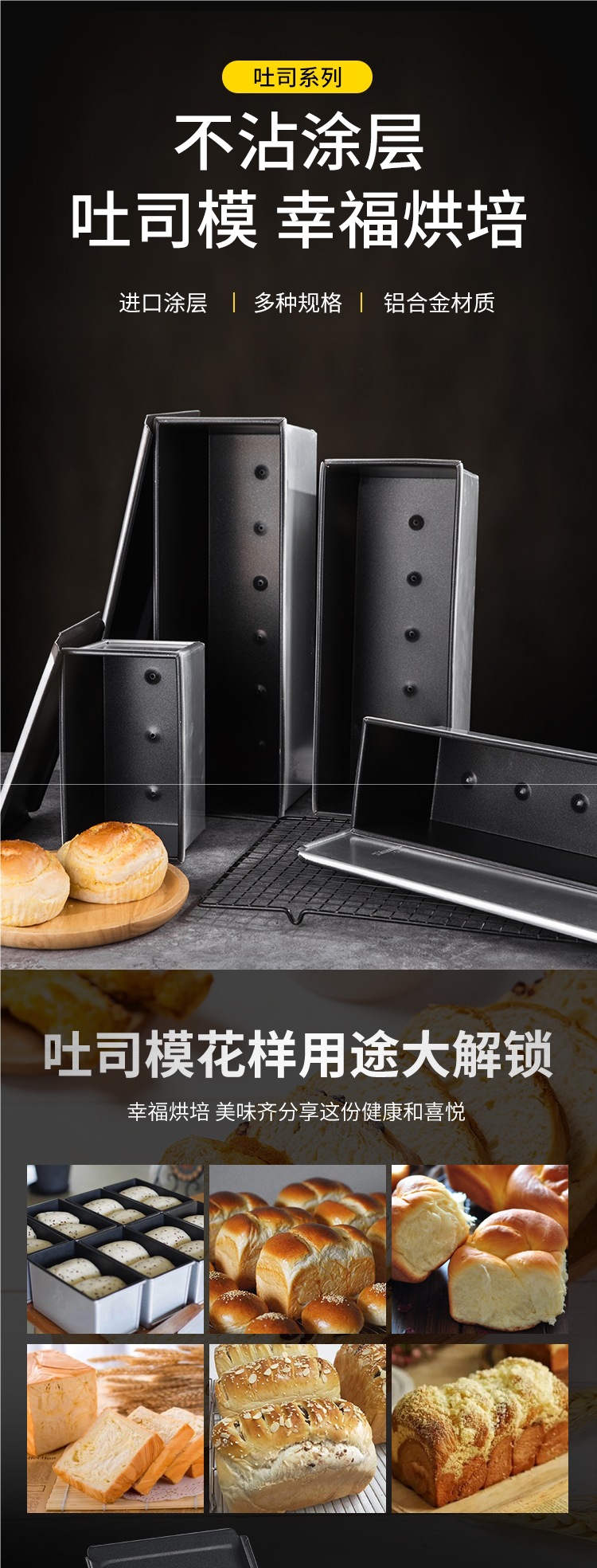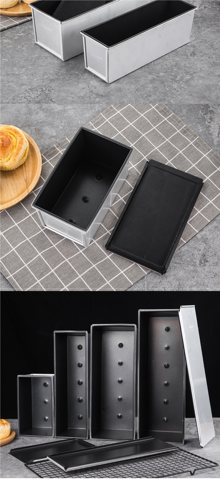 새로운 밀 비 스틱 토스트 금형 450g 붙지 않는 사각형 가방 상업용 토스트 상자 뚜껑 1200g 빵 베이킹 금형스토어 가기