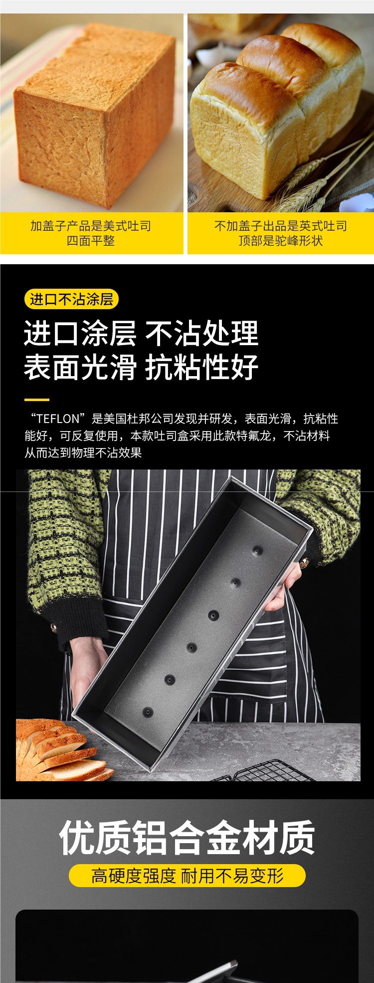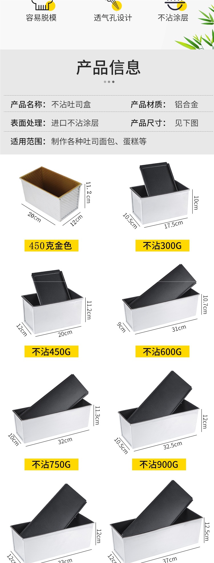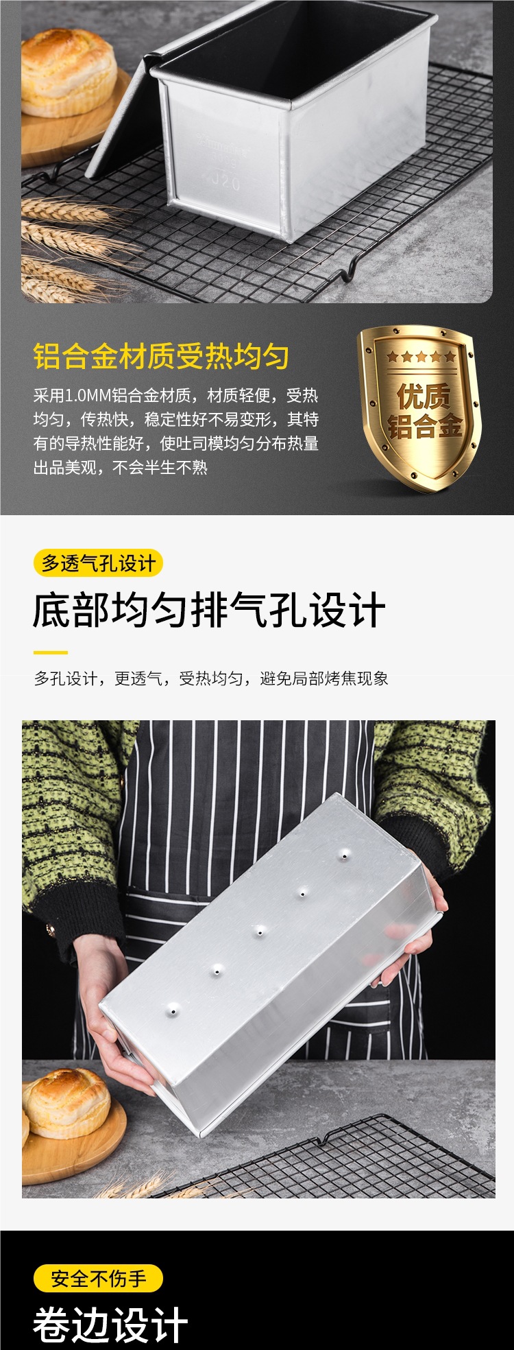 새로운 밀 비 스틱 토스트 금형 450g 붙지 않는 사각형 가방 상업용 토스트 상자 뚜껑 1200g 빵 베이킹 금형스토어 가기