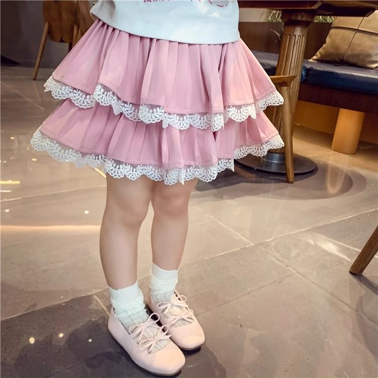 • 핑크 [단 레이스] 케이크 레이스 스커트