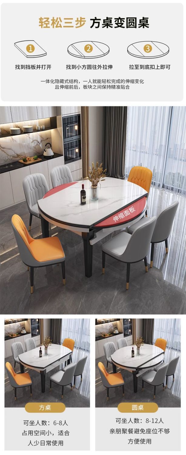 슬레이트 식탁과 의자 조합 현대적이고 단순하며 가벼운 럭셔리 가정식 접이식 텔레스코픽 식탁 가변 원형 테이블 작은 아파트스토어 가기