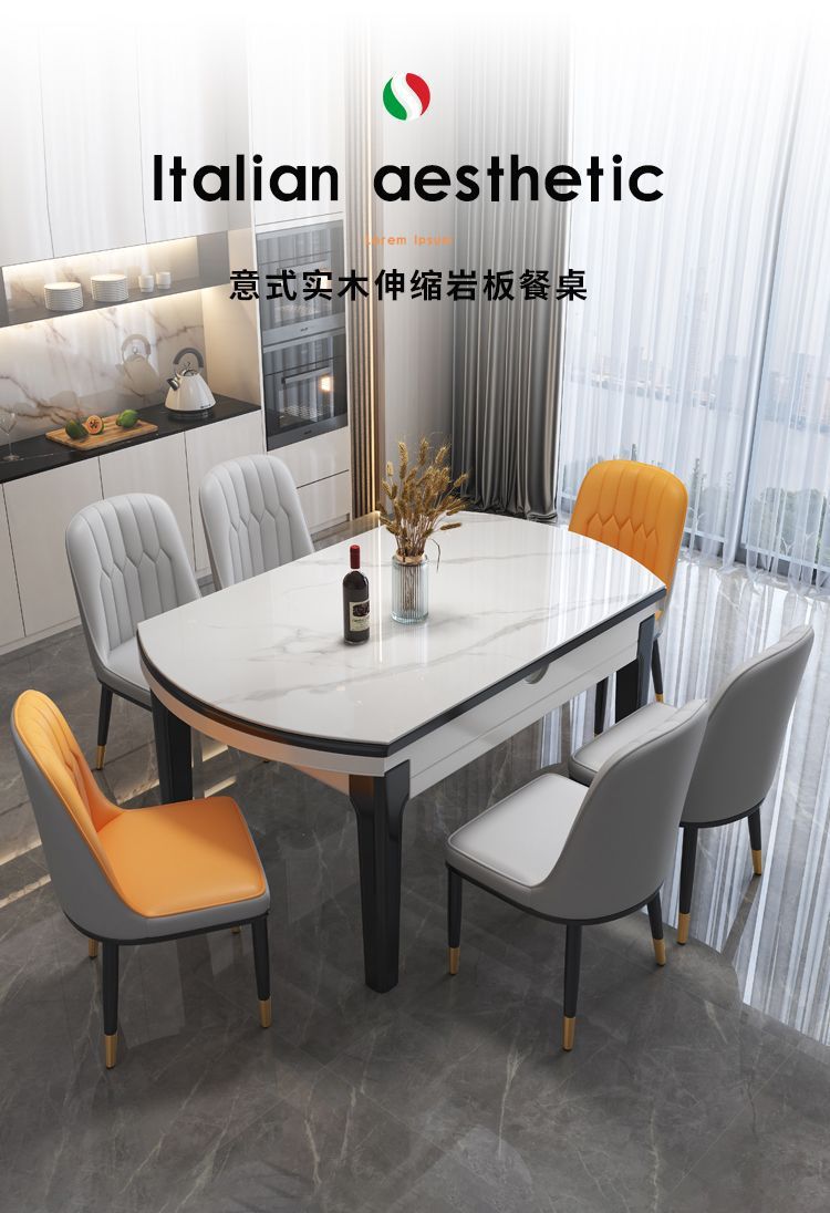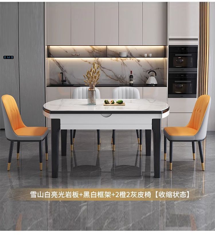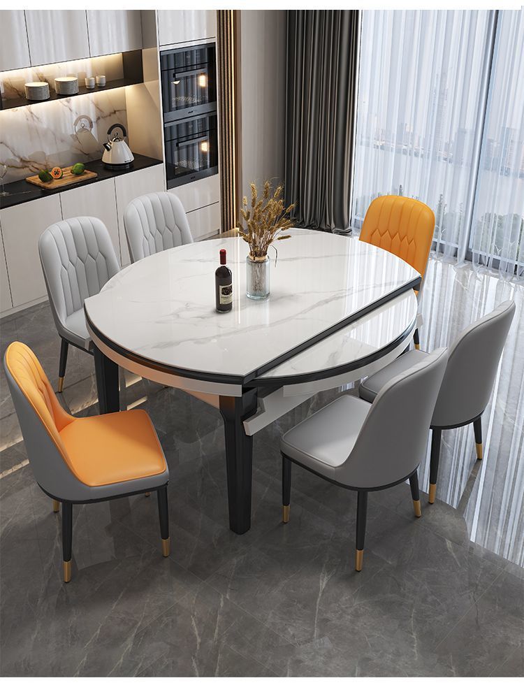 슬레이트 식탁과 의자 조합 현대적이고 단순하며 가벼운 럭셔리 가정식 접이식 텔레스코픽 식탁 가변 원형 테이블 작은 아파트