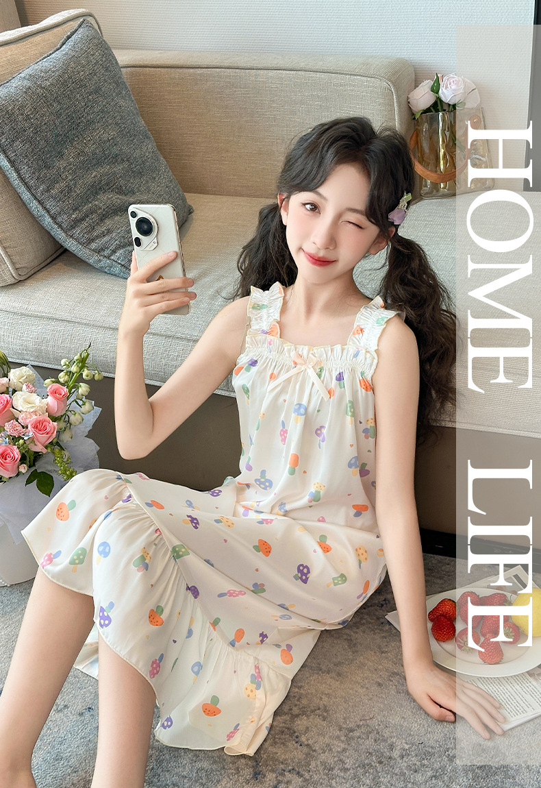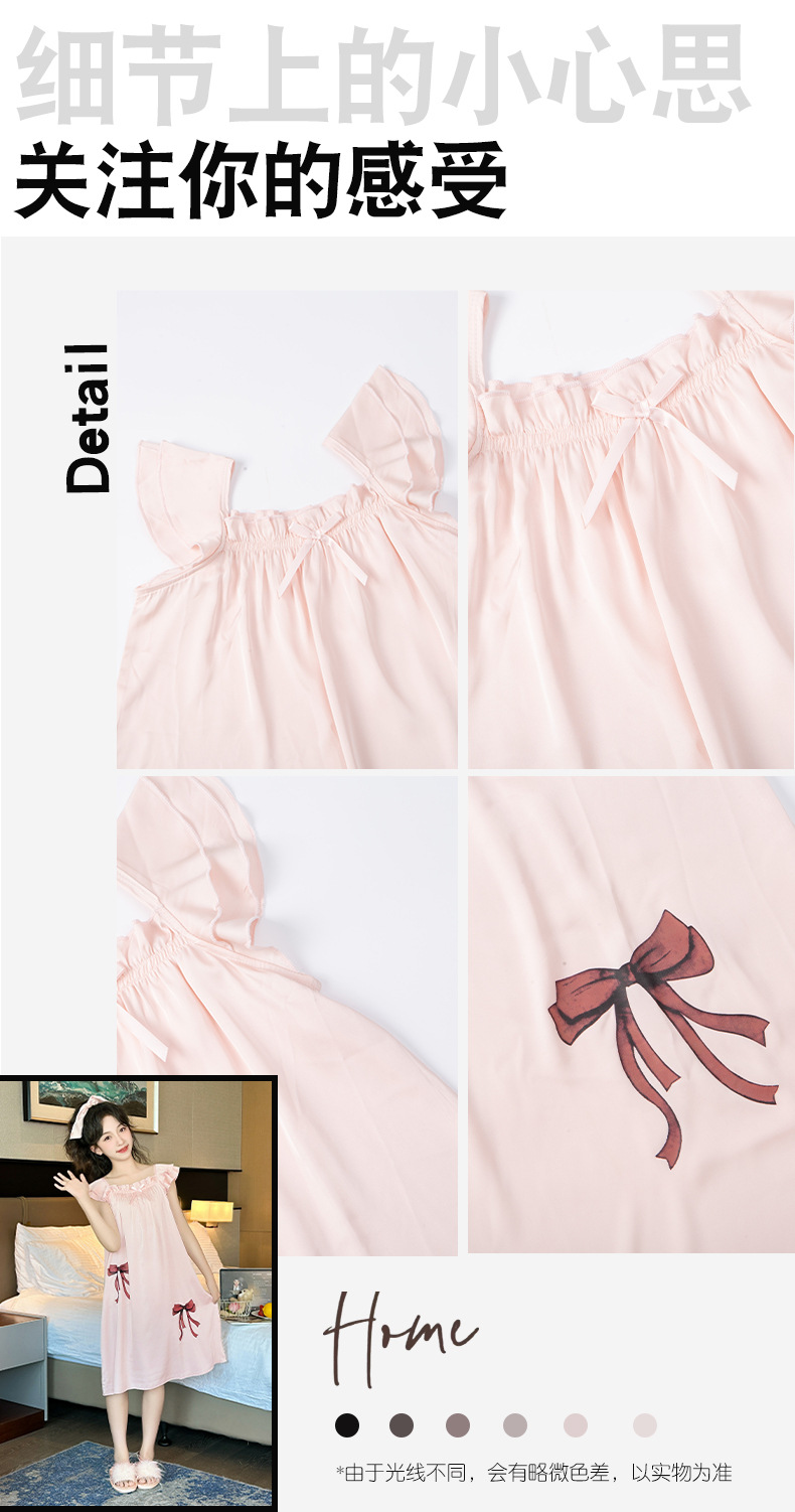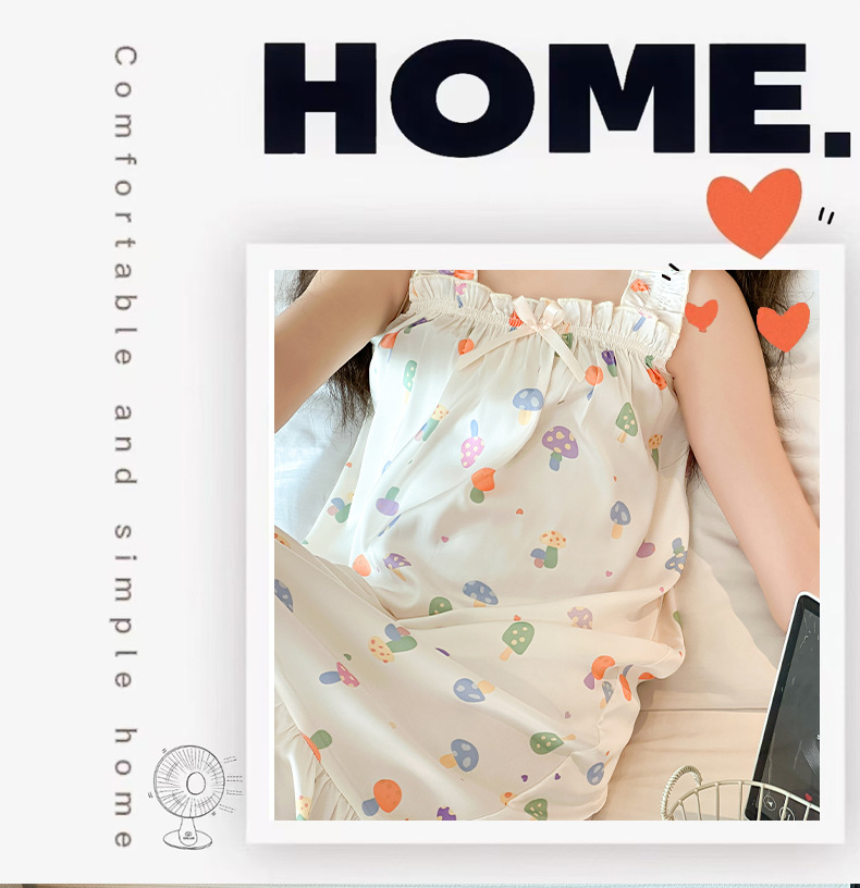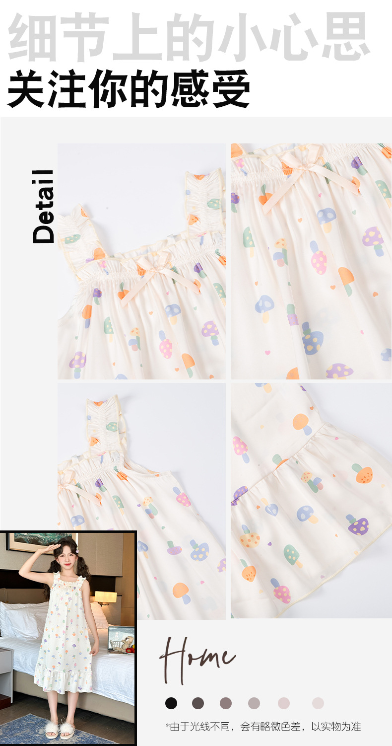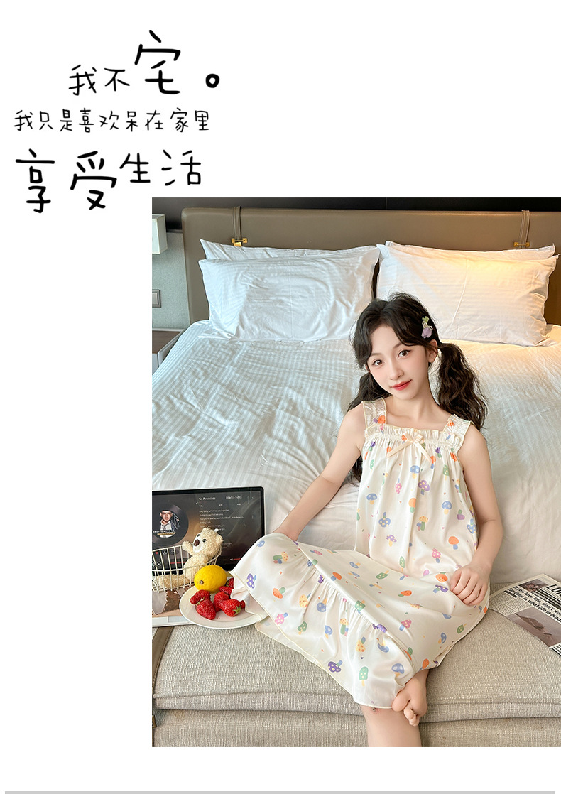 여자 잠옷 2025 여름 새로운 얼음과 눈 실크 서스펜더 잠옷 얇은 시원한 면 실크 중간 길이 가정 의류