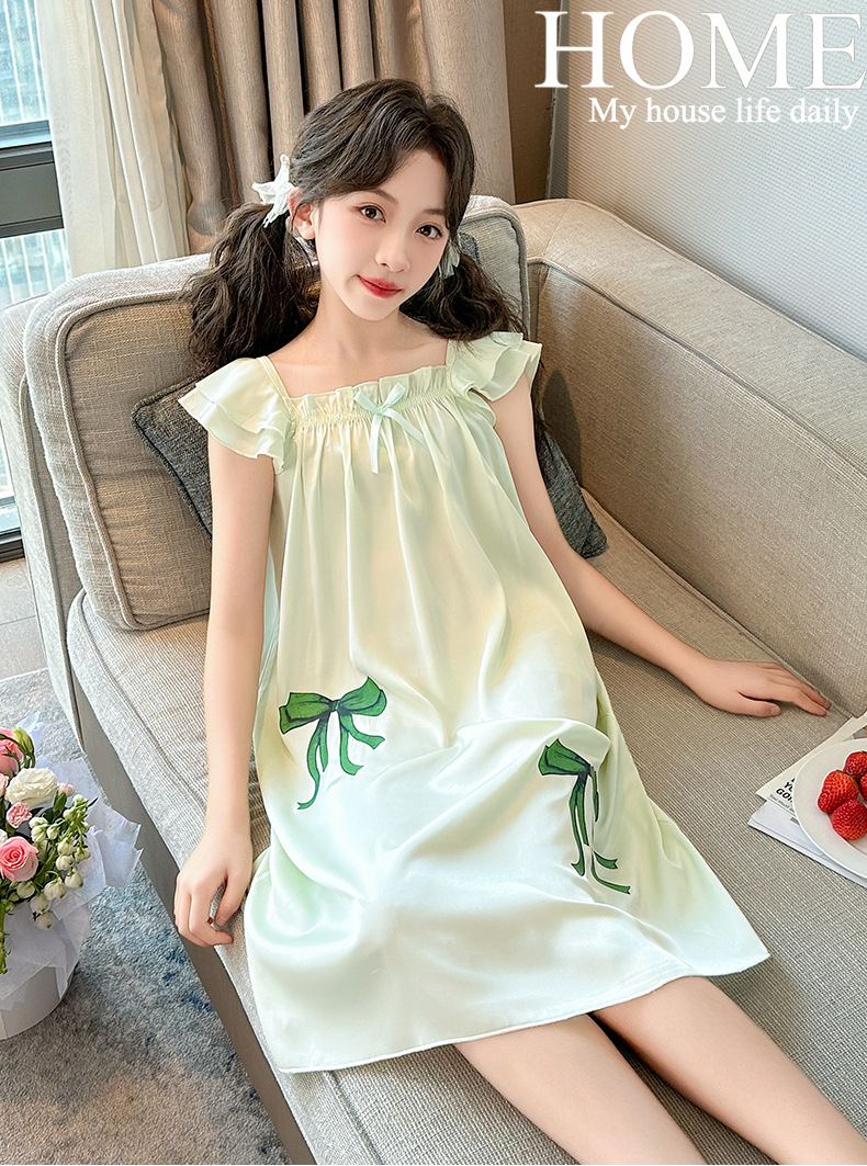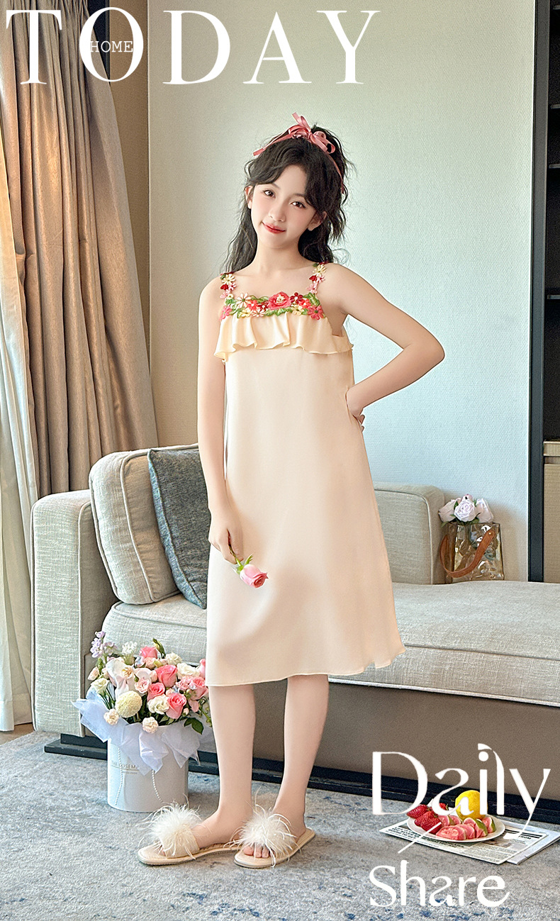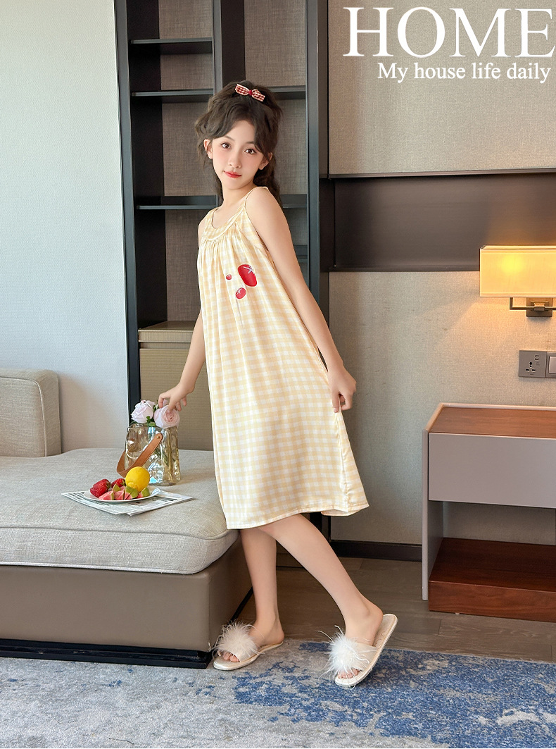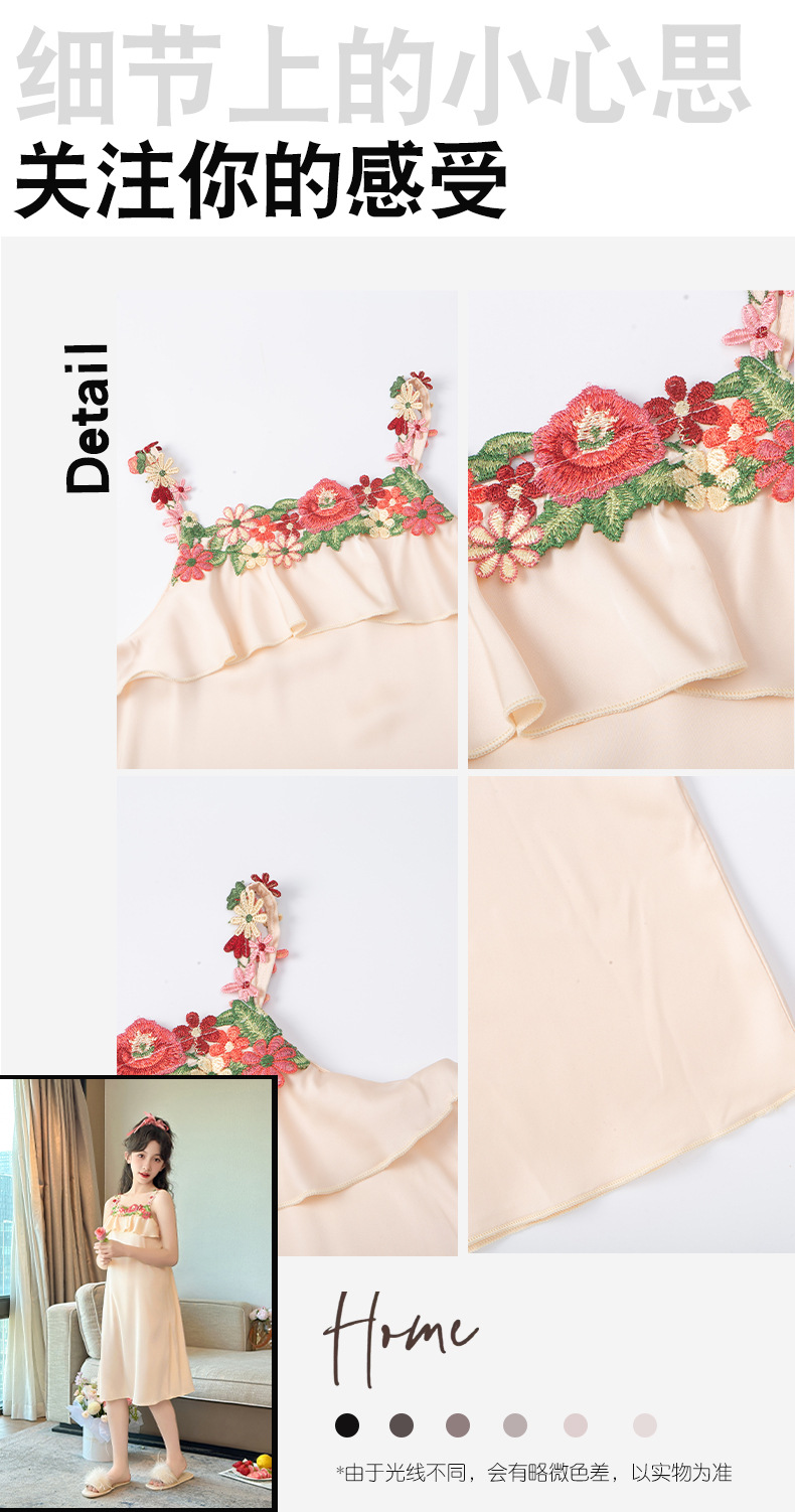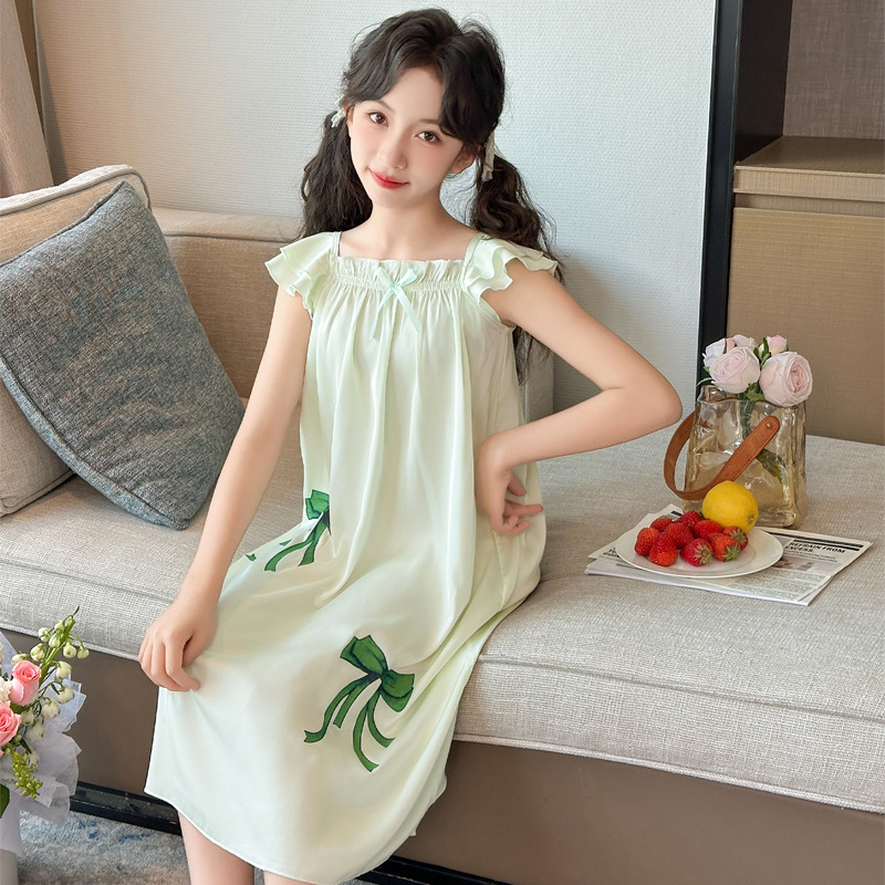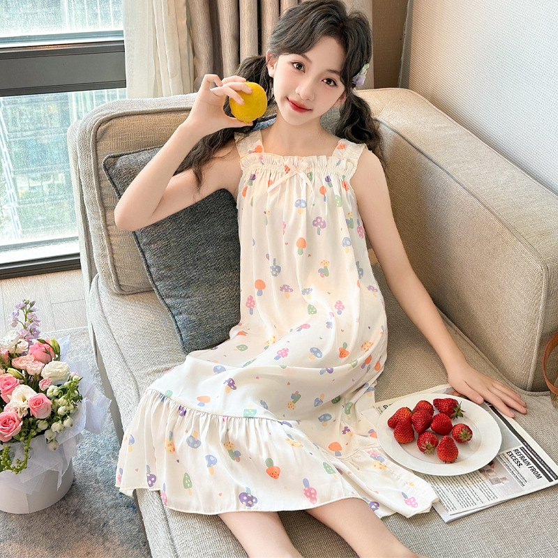 여자 잠옷 2025 여름 새로운 얼음과 눈 실크 서스펜더 잠옷 얇은 시원한 면 실크 중간 길이 가정 의류