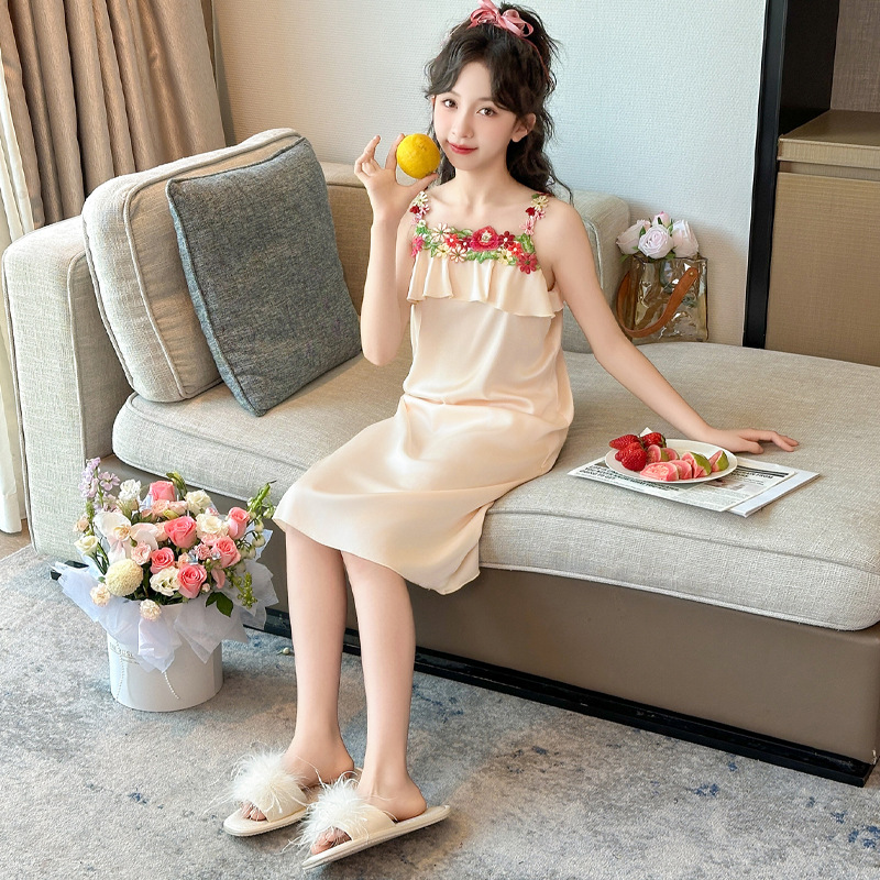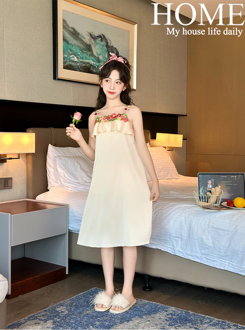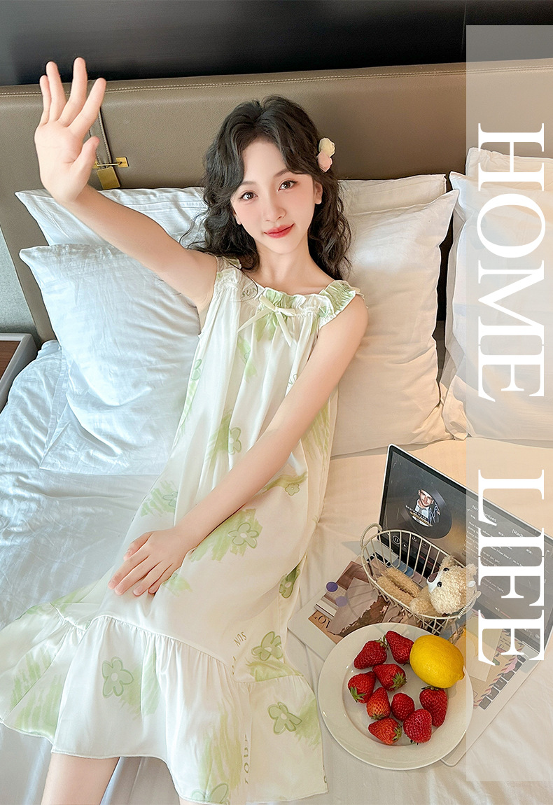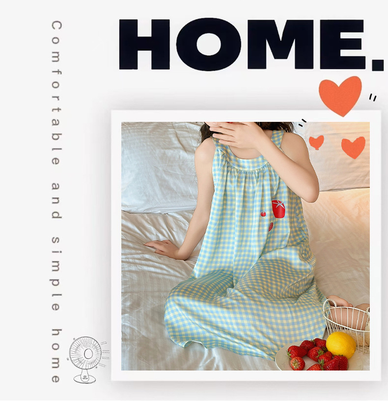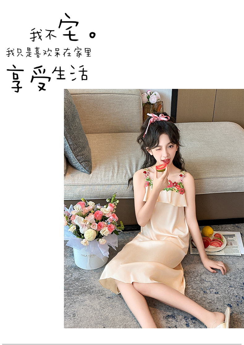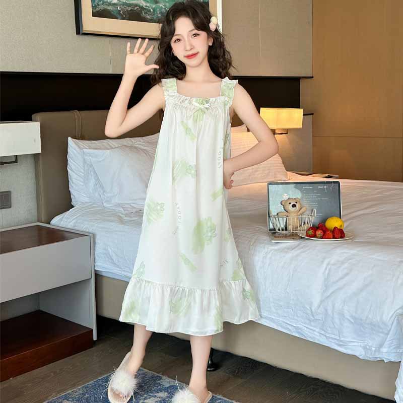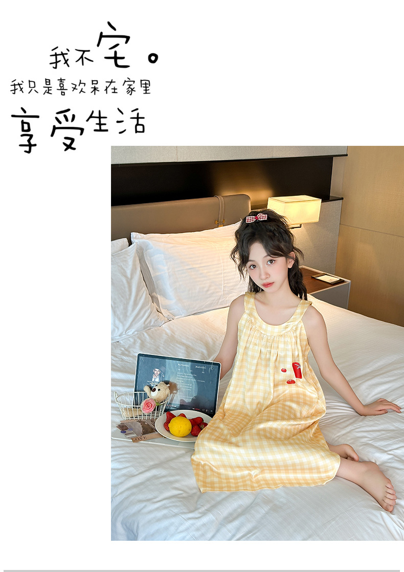 여자 잠옷 2025 여름 새로운 얼음과 눈 실크 서스펜더 잠옷 얇은 시원한 면 실크 중간 길이 가정 의류스토어 가기