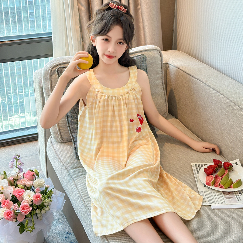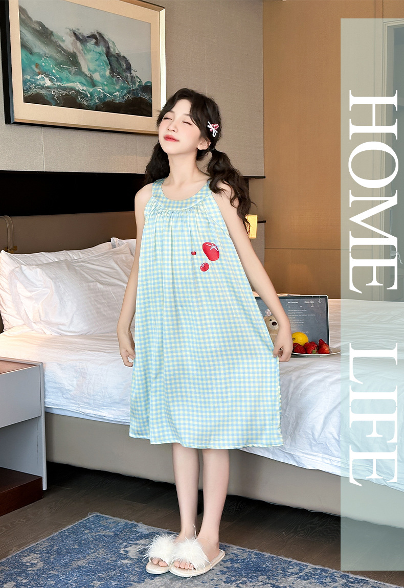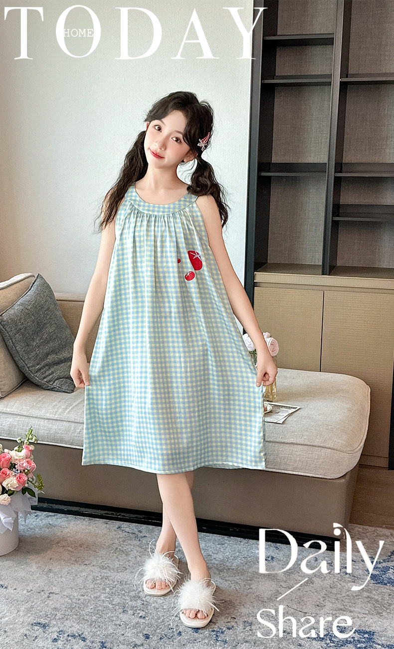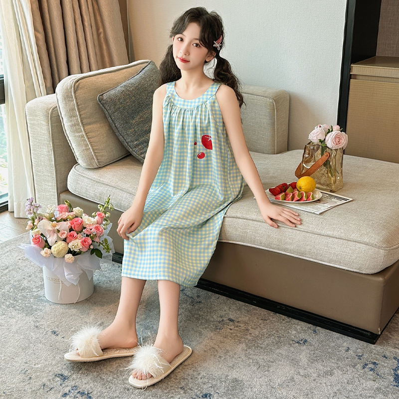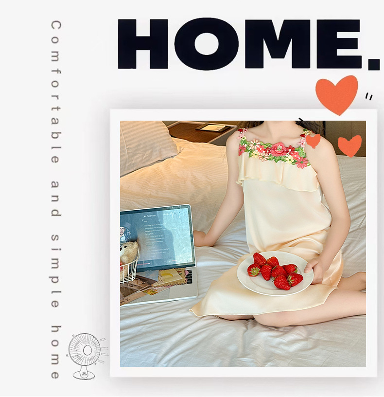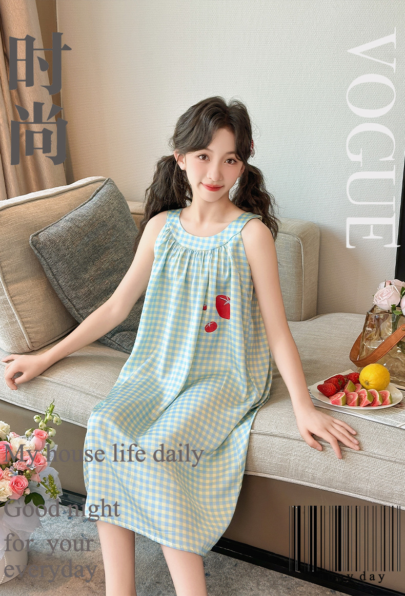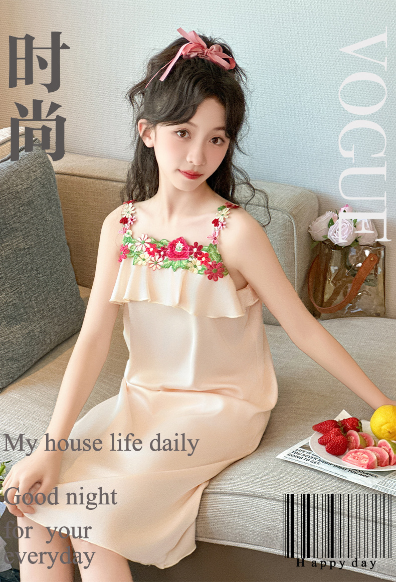 여자 잠옷 2025 여름 새로운 얼음과 눈 실크 서스펜더 잠옷 얇은 시원한 면 실크 중간 길이 가정 의류스토어 가기