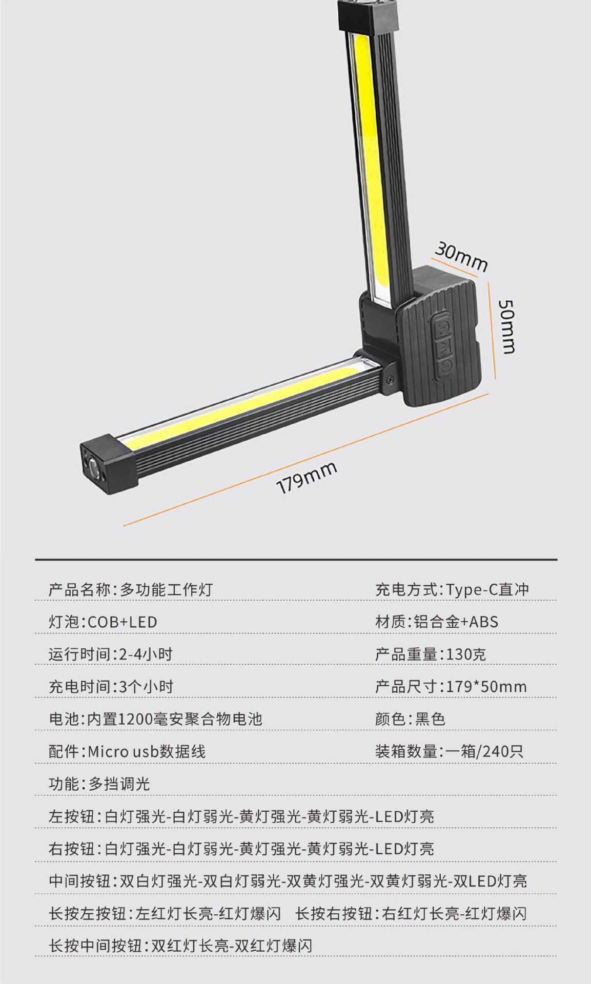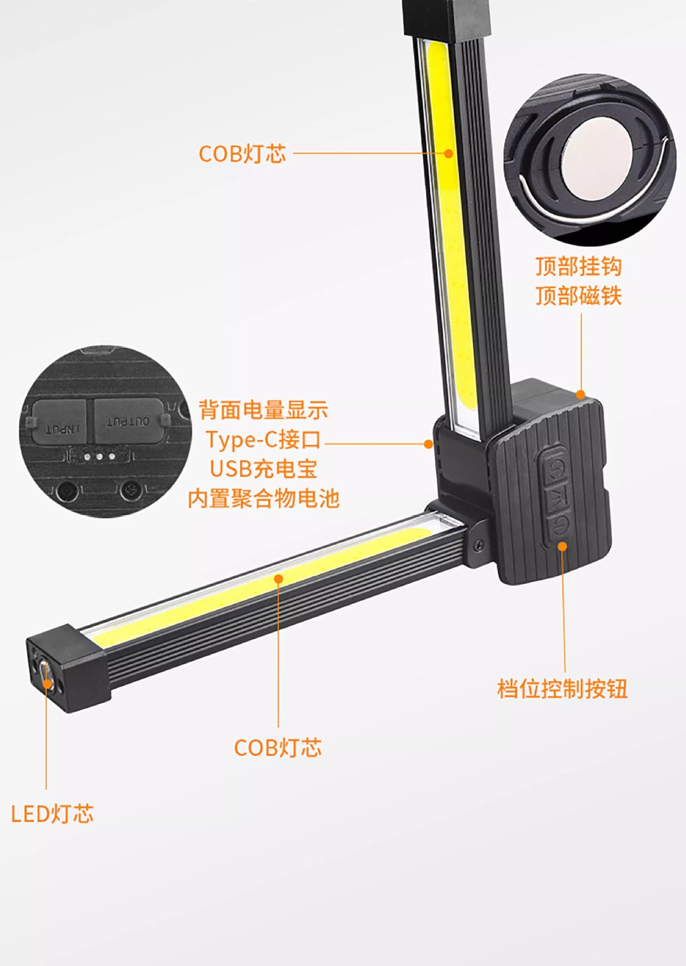국경 간 새로운 강한 빛 손전등 야외 다기능 캠핑 조명 손전등 자동 수리 작업 조명 접이식 COB 빛스토어 가기