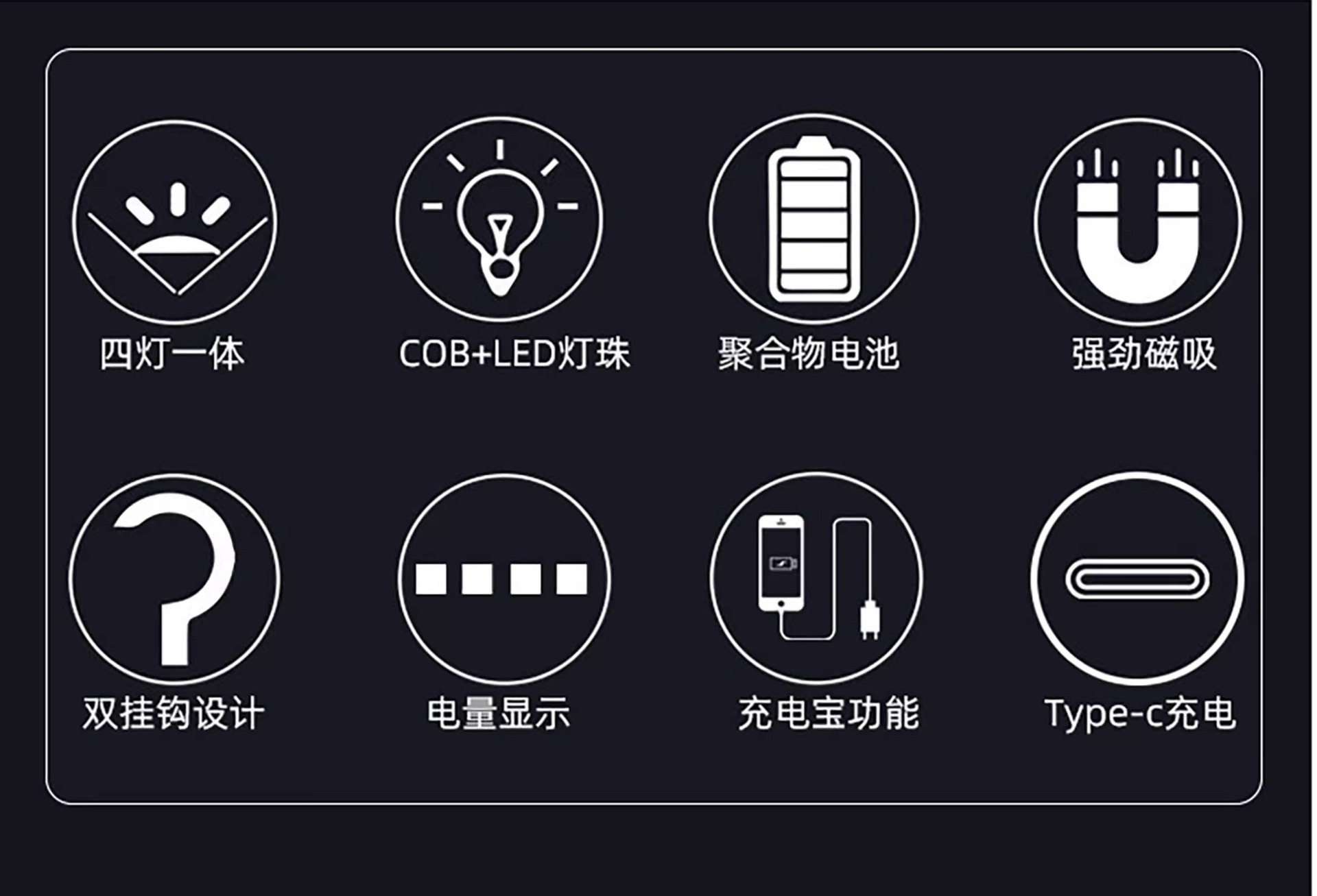 국경 간 새로운 강한 빛 손전등 야외 다기능 캠핑 조명 손전등 자동 수리 작업 조명 접이식 COB 빛