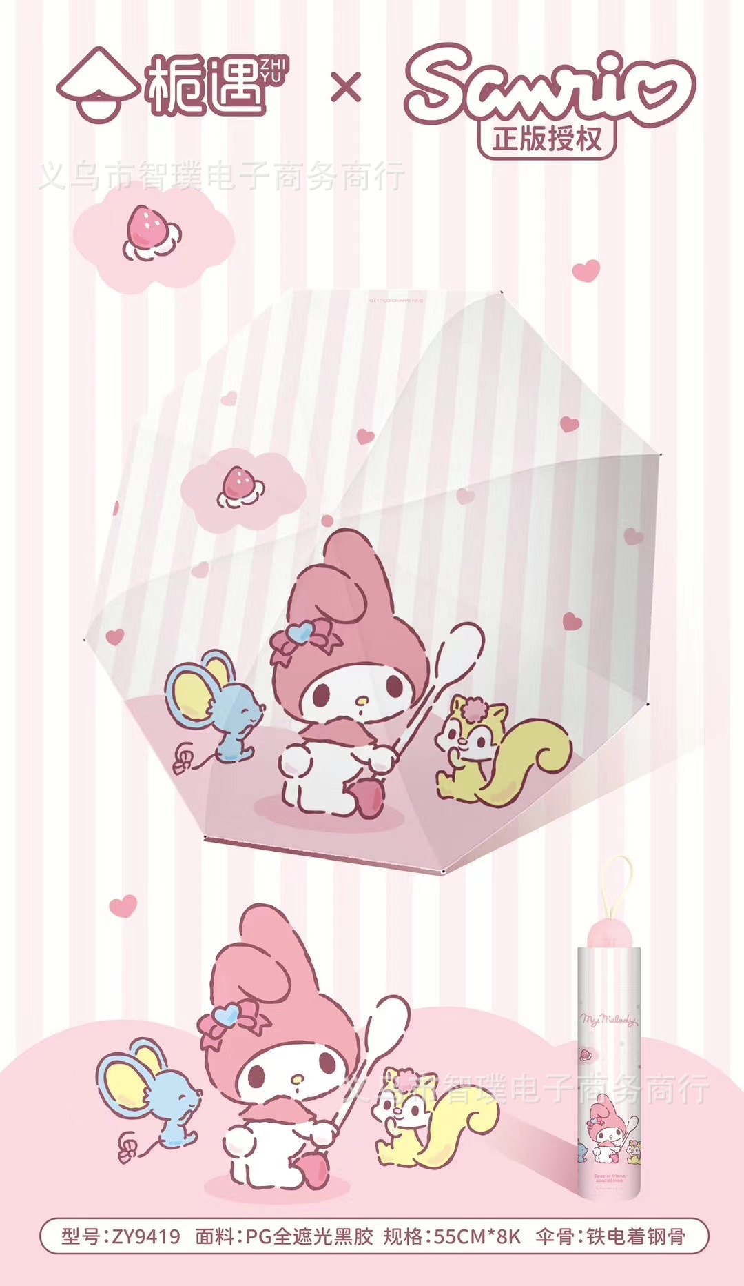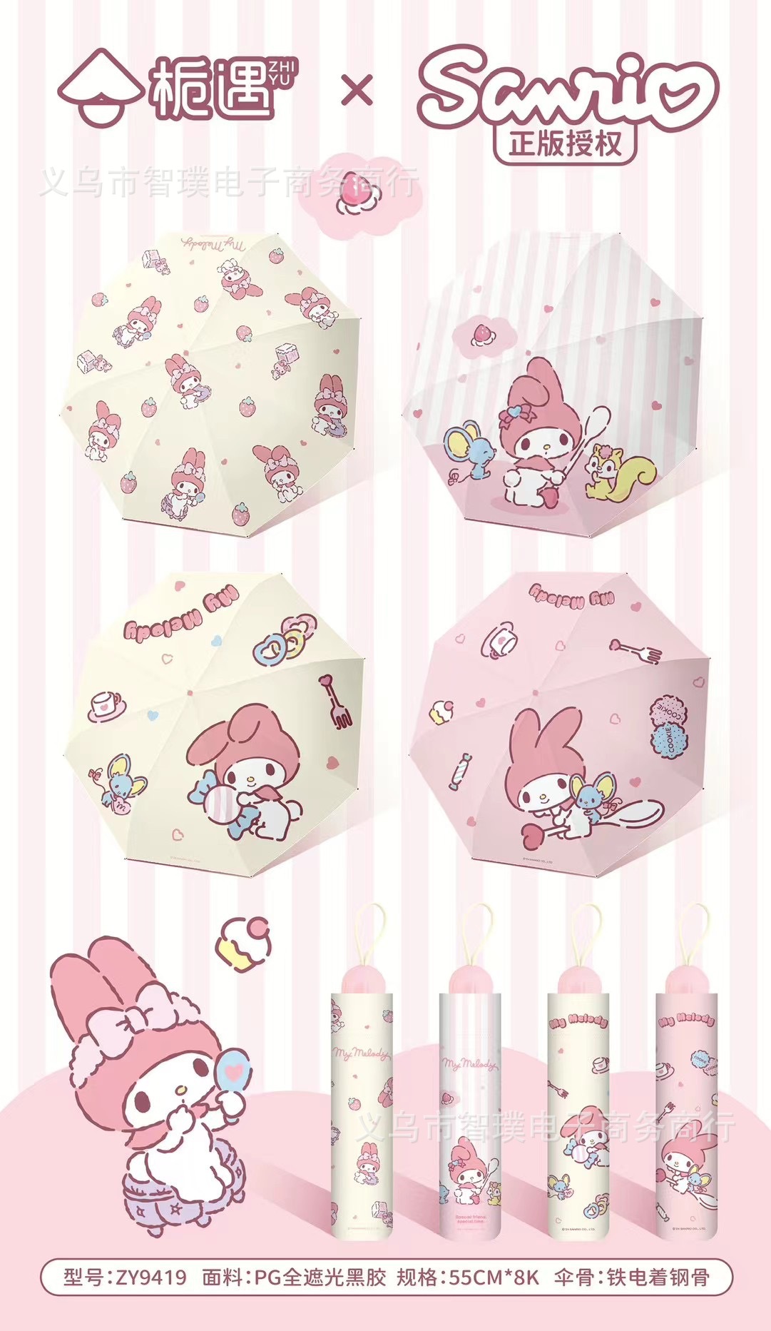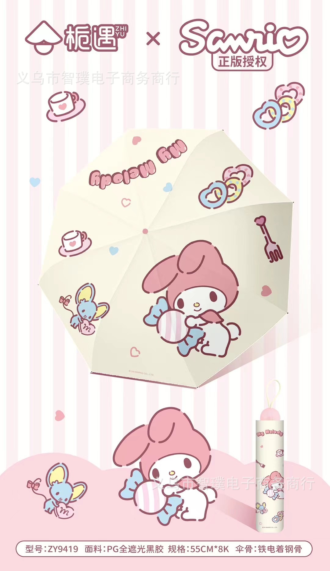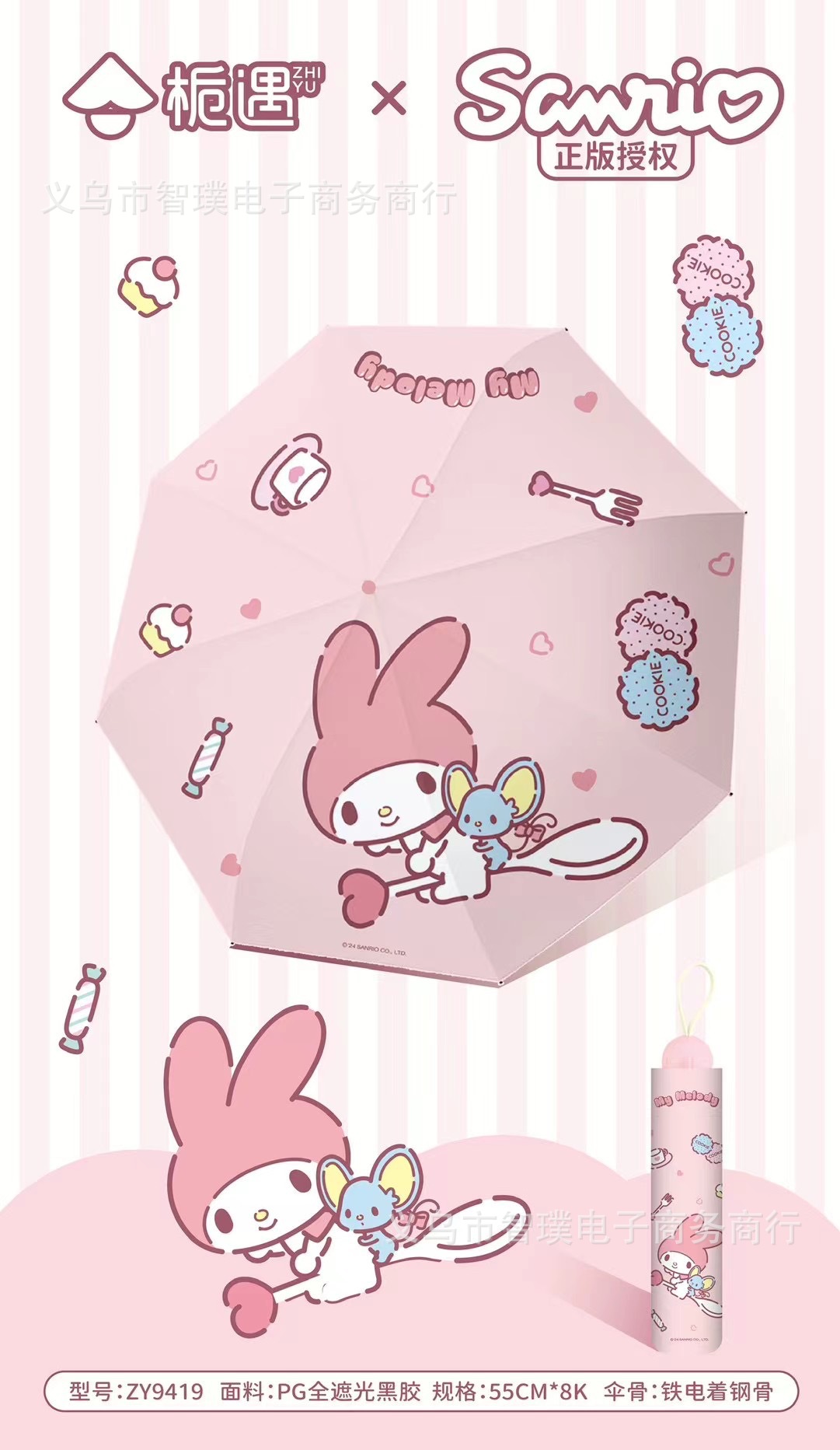 산리오 정품 멜로디 비 우산 차양 우산 접는 수동 만화 공장 도매 우산스토어 가기