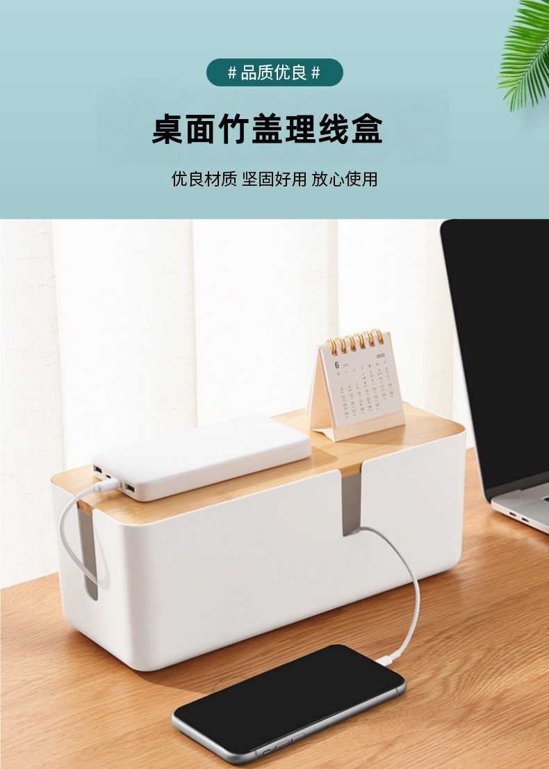 대나무 나무 커버 와이어 박스 데이터 케이블 충전기 와이어 관리 상자 커버 플러그 보드 와이어 주최자 데스크탑 저장 상자스토어 가기