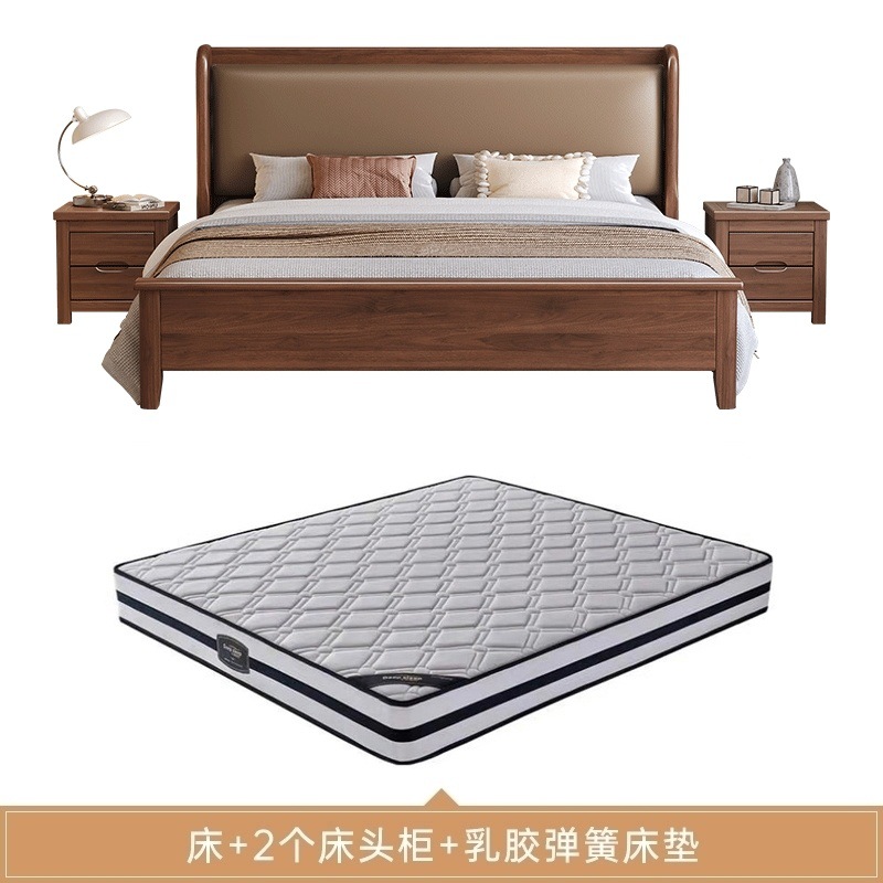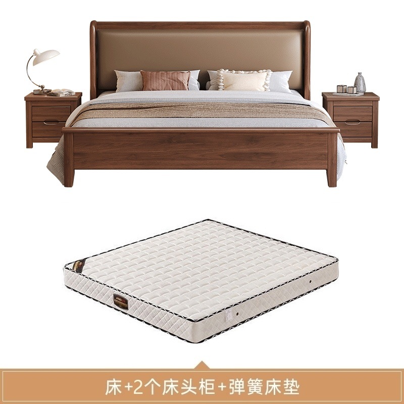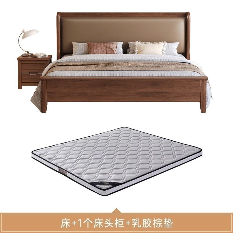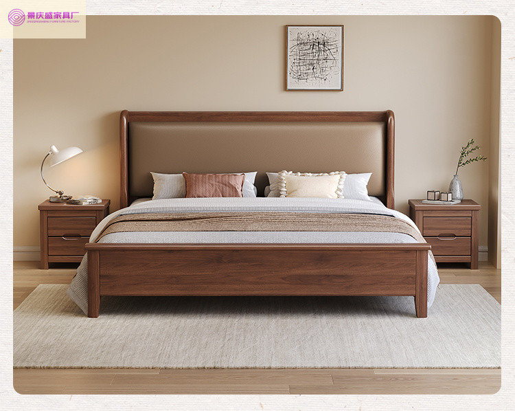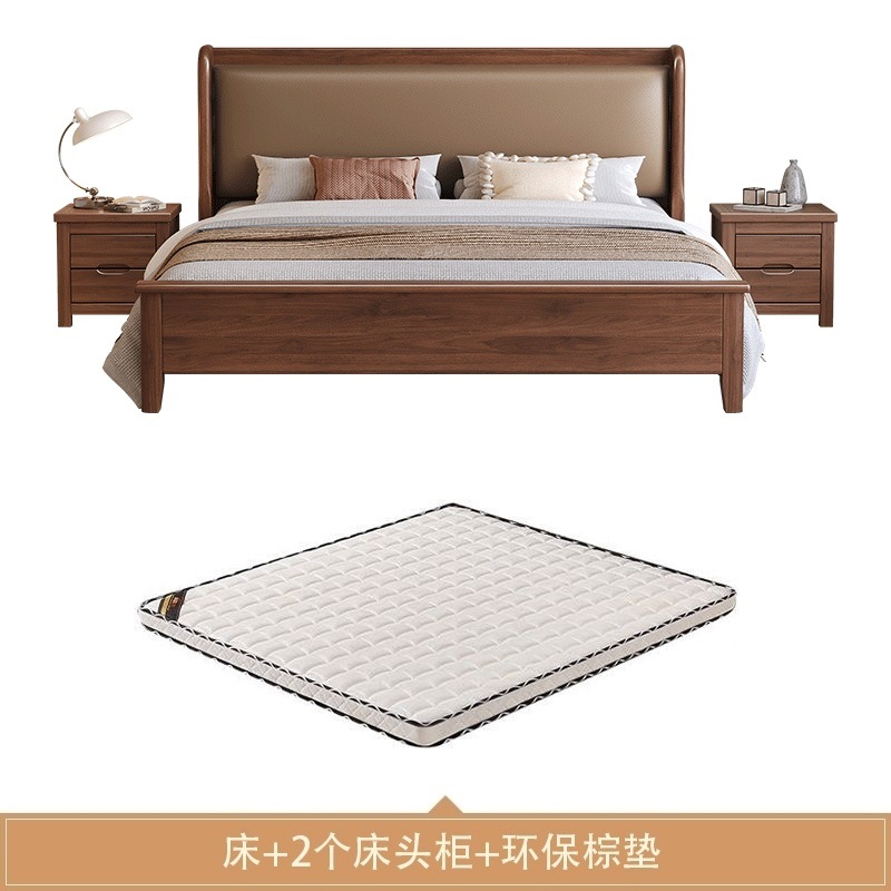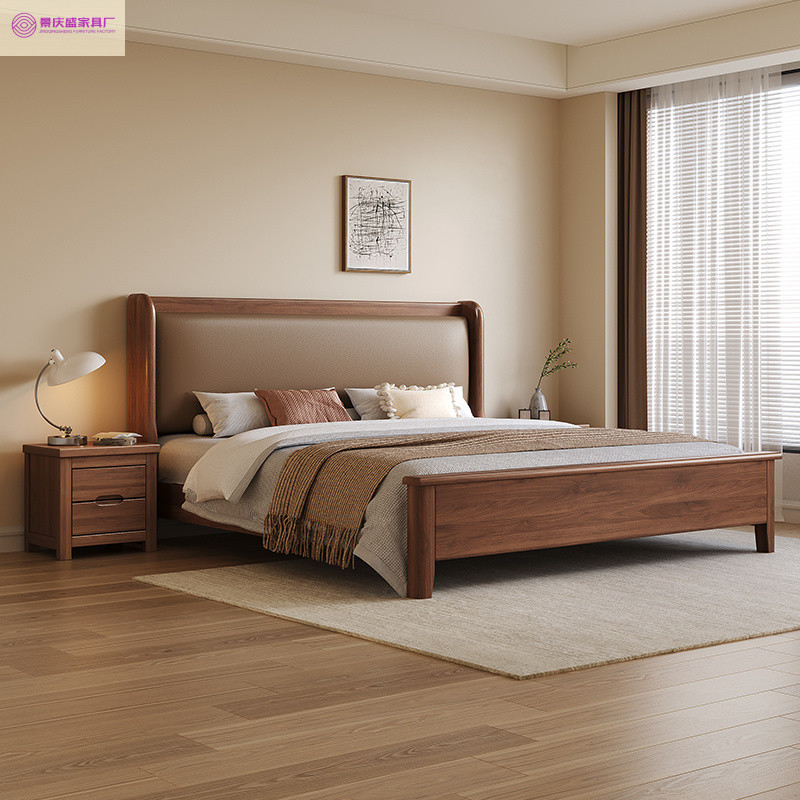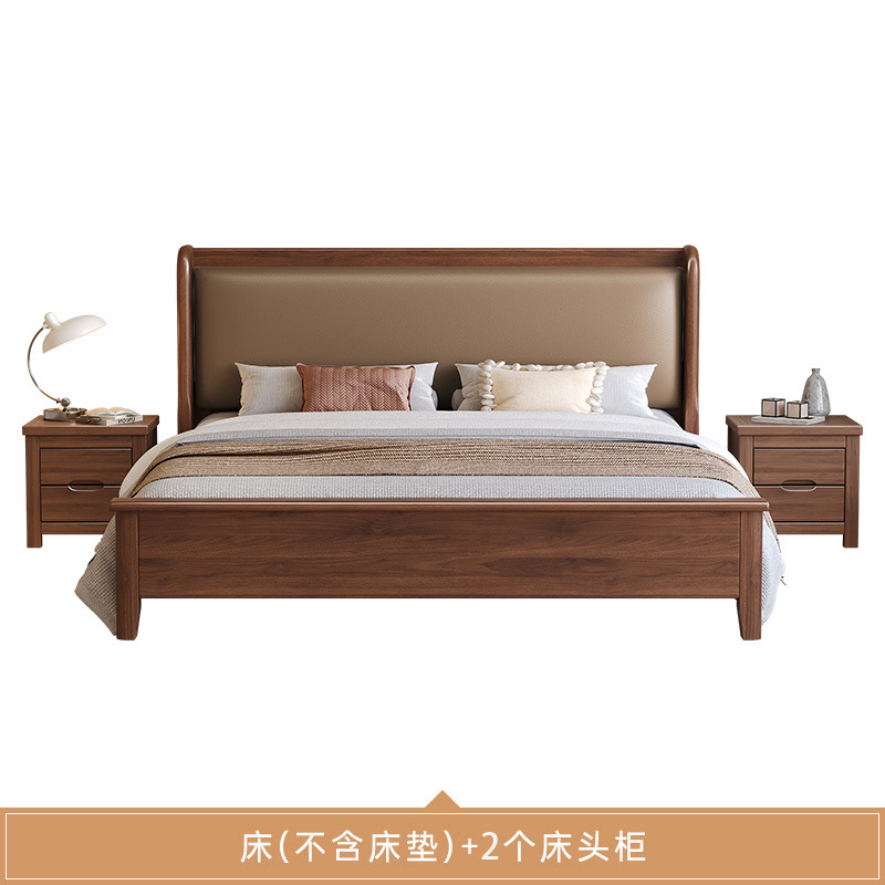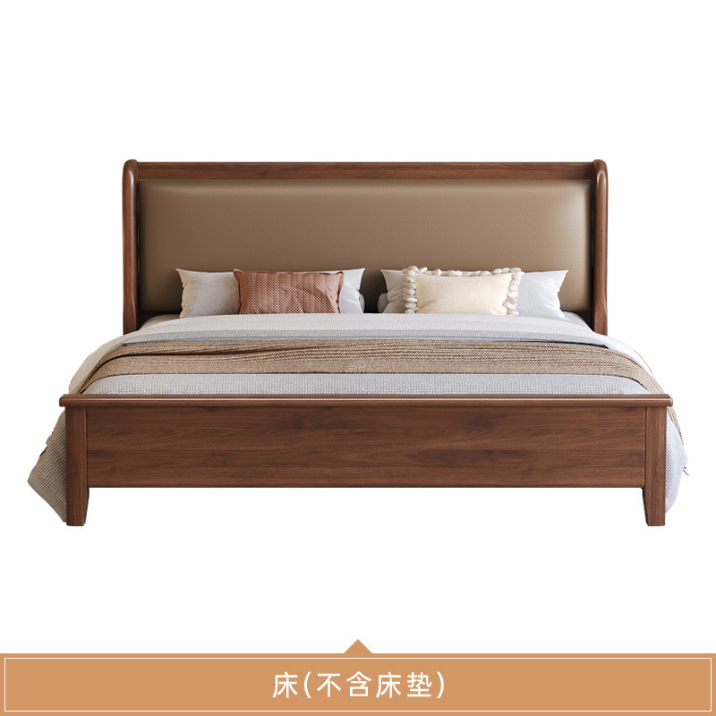 현대적인 미니멀리스트 1.5m 소프트 웨딩 침대 새로운 중국 스타일 골드 와이어 호두나무 원목 마스터 침실 킹 침대 더블 1.8x 2m스토어 가기